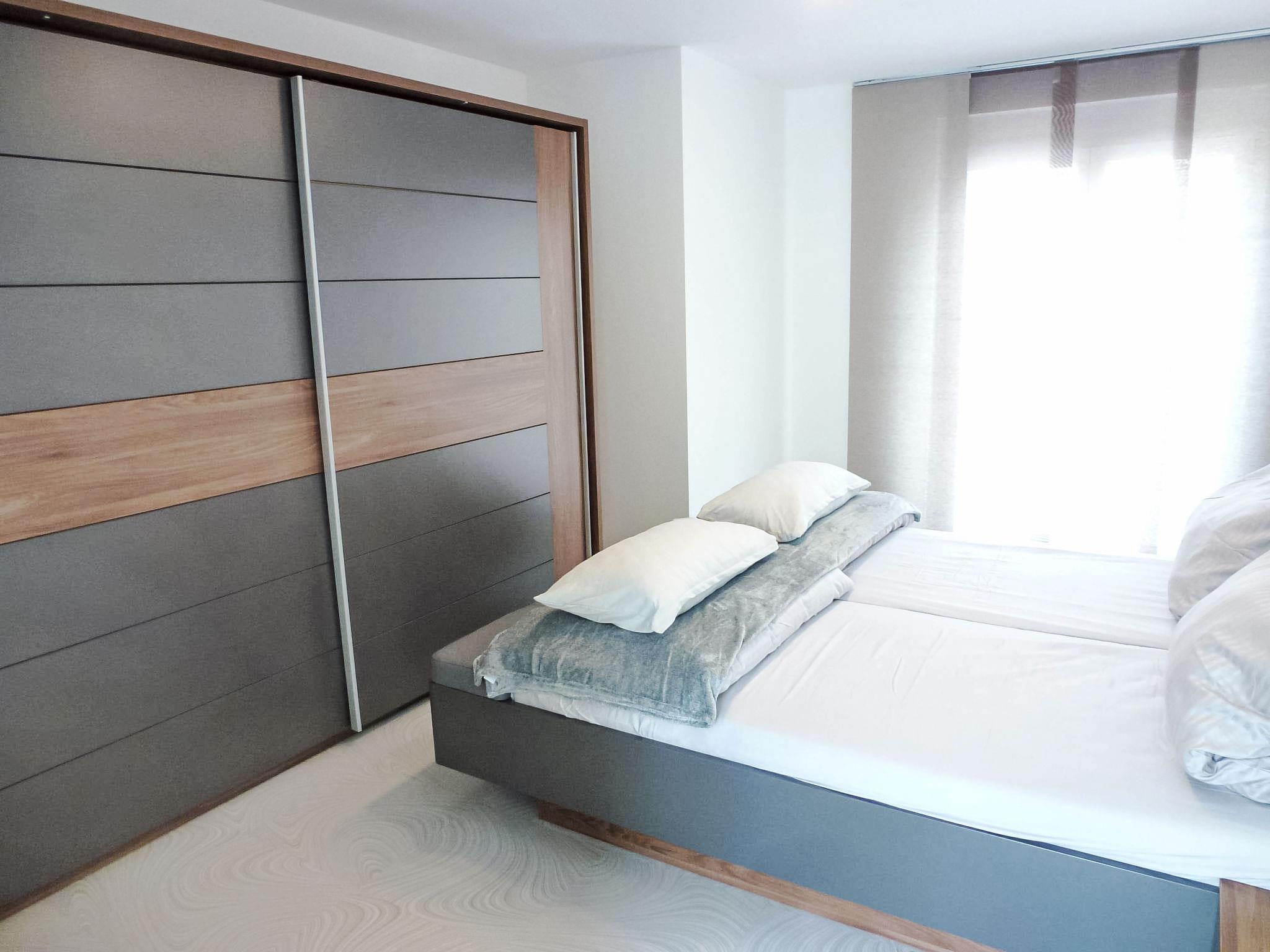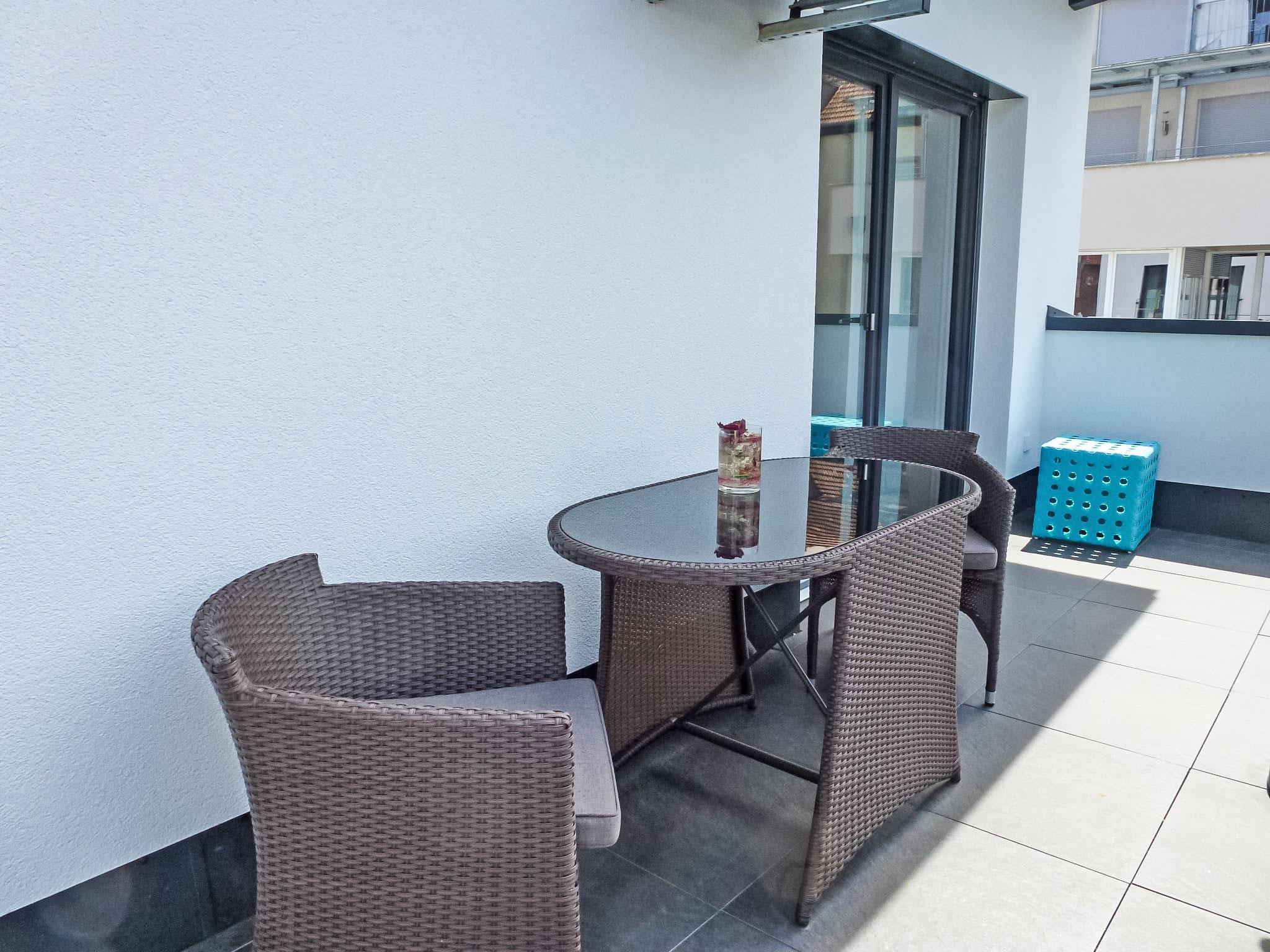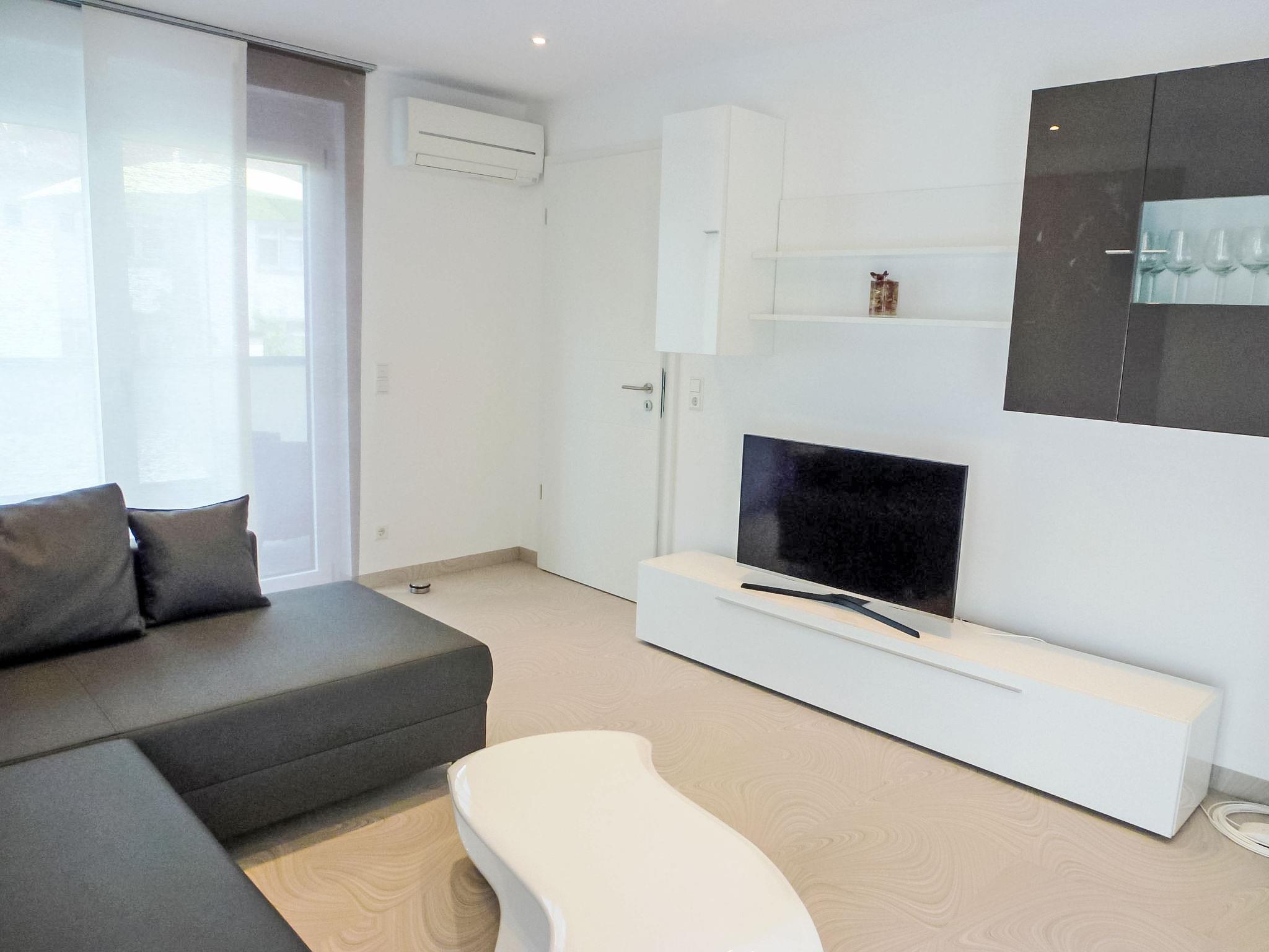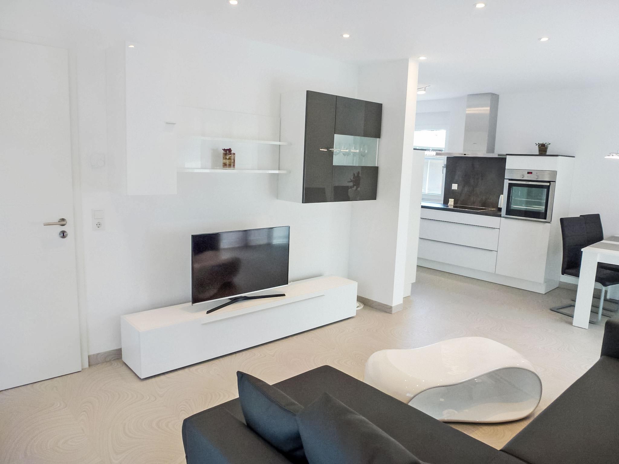 2-room apartment 58 m2 on 1st floor. Bright, comfortable and tasteful furnishings: living/dining room with 1 double sofabed and satellite TV (flat screen), air conditioning and electric shutters. Exit to the balcony. 1 double bedroom with air conditioning and electric shutters. Kitchenette (oven, dishwasher, 4 ceramic glass hob hotplates, microwave, electric coffee machine). Shower/WC. Underfloor heating. Balcony 22 m2. Balcony furniture, deck chairs (2), box-room. Facilities: washing machine, iron, hair dryer. Internet (WiFi, free). Please note: non-smokers only. Smoke alarm. DE308725270