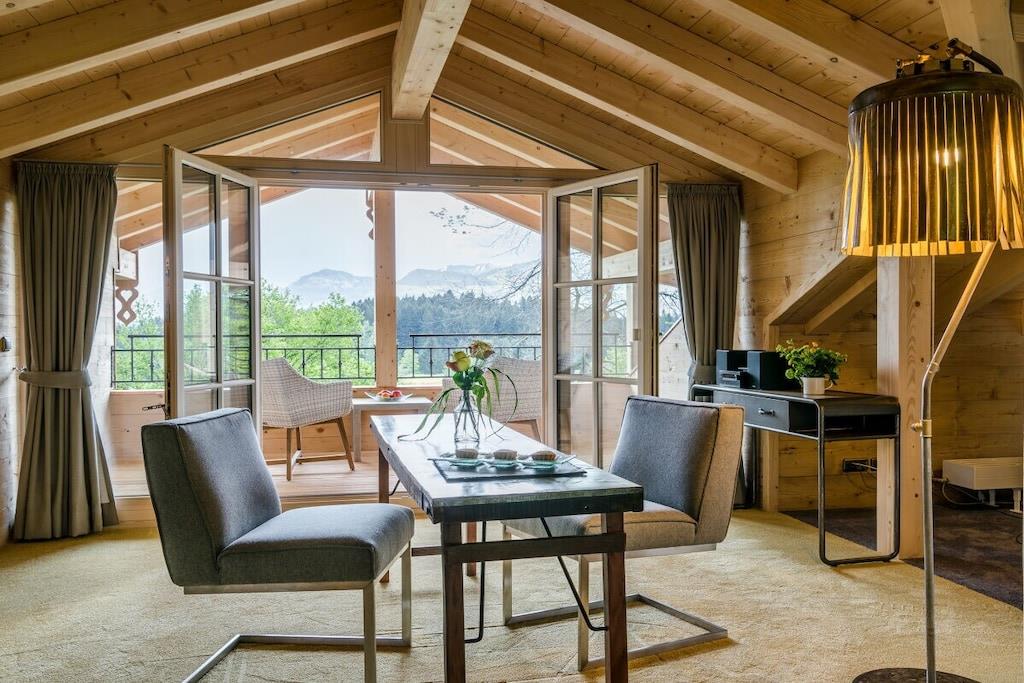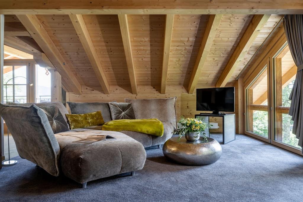Fineste materialer, rent design, udsøgt håndværk og panoramaudsigt Stue med designersofa og lænestol Spisestue med eksklusive siddepladser Fuldt udstyret køkken Soveområde med dobbeltseng (180 x 200 cm) Badeværelse med badekar, bruser og håndvask Separat toilet Privat sauna Satellit-tv, dvd-afspiller, gratis Wi-Fi, radio og cd-afspiller, netværk Sydøstvendt terrasse med komfortable siddepladser Vestvendt terrasse med liggestole Fast panoramavindue i hele sydfløjen