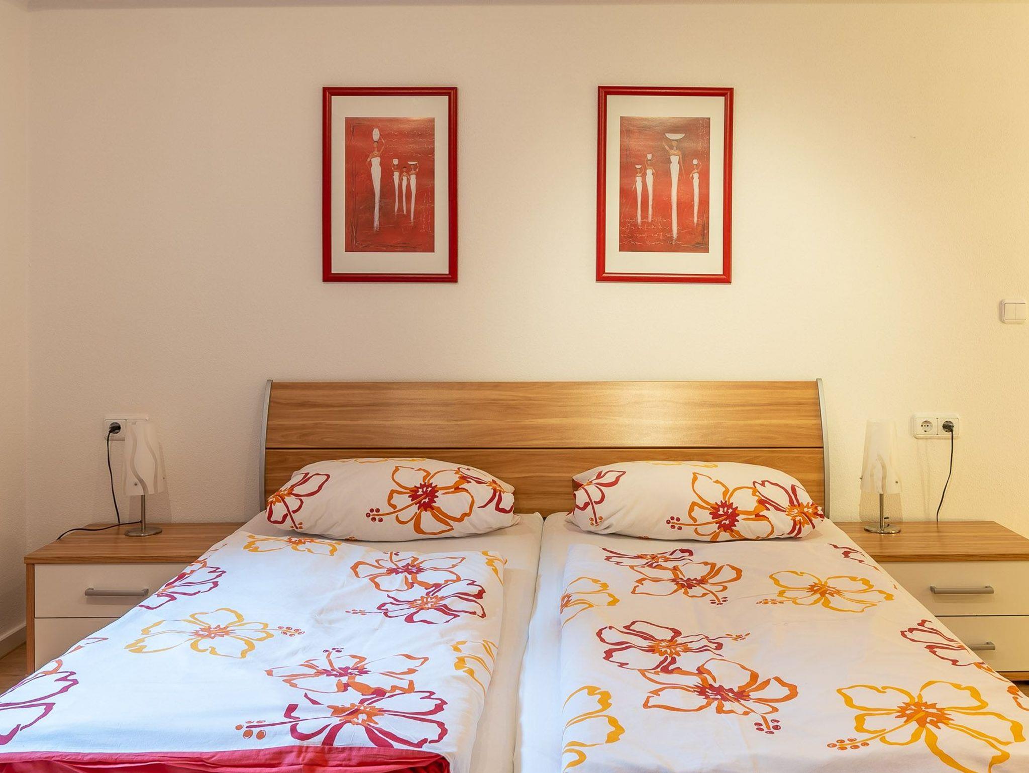 Im separaten Schlafzimmer befindet sich ein großes Boxspringbett, sowie mehr als genügend Stauraum im Schlafzimmerschrank.