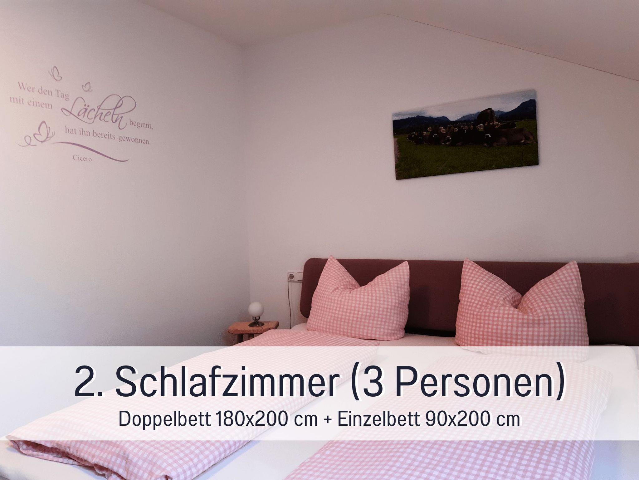 Diese komplett renovierte gemütliche Ferienwohnung im Bauernhof Finkel besteht aus einem Elternschlafzimmer mit Doppelbett und einem separaten Kinderschlafzimmer mit Doppel- und Einzelbett, einem Wohnzimmer mit Couch, Relaxsessel, Flachbild-TV und einer komplett ausgestatteten Küche inkl. Spülmaschine. Das neue geräumige Bad ist ausgestattet mit Waschbecken, Wohlfühldusche und WC. Genießen Sie die herrliche Aussicht auf die Allgäuer Berge von unserem Südbalkon. Babybett und Hochstuhl kostenlos auf Anfrage.