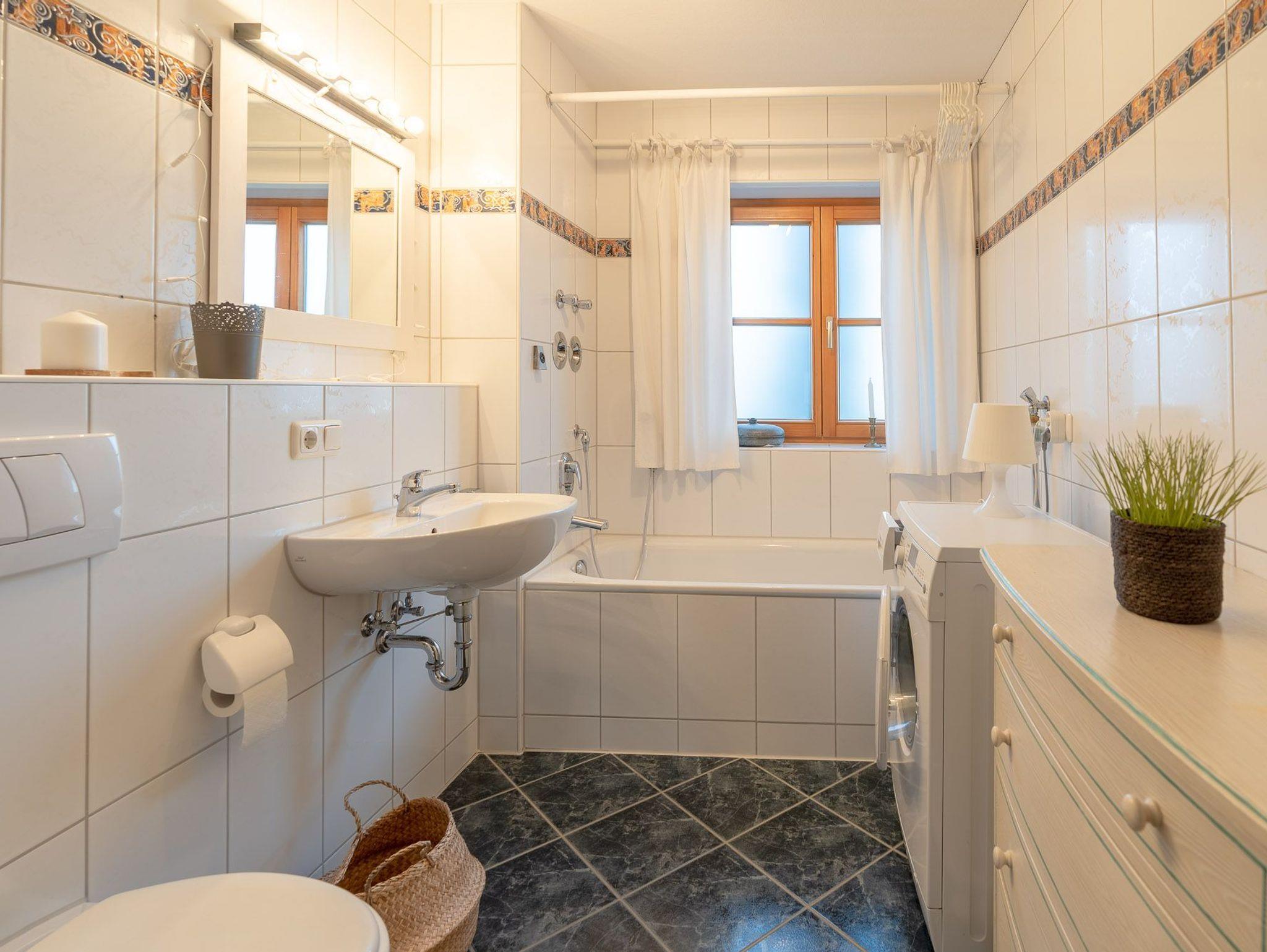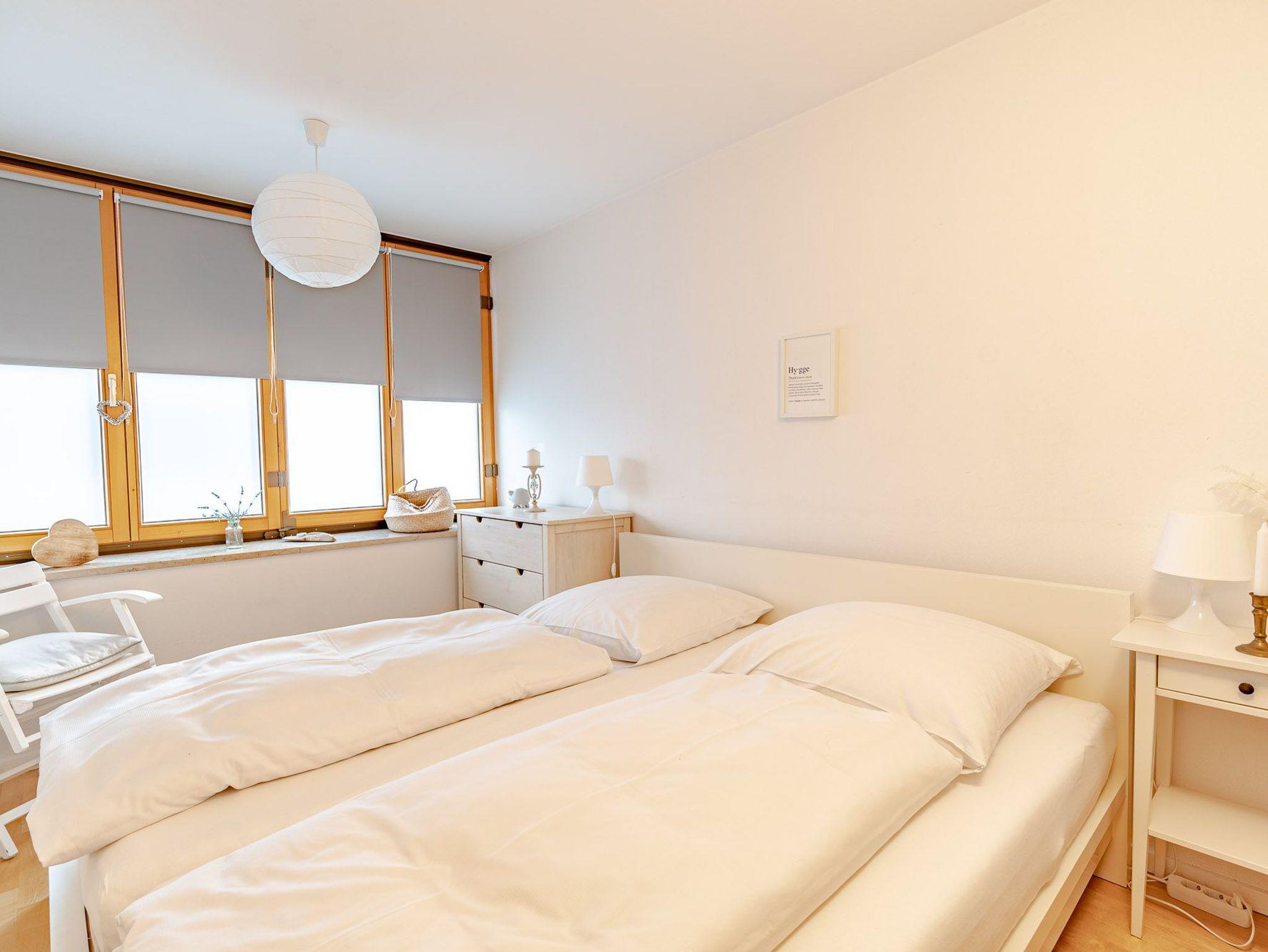 Das Badezimmer beinhaltet Dusche, Badewanne, Waschbecken und Handtuchheizkörper. Das 1. Schlafzimmer bietet Ihnen ein bequemes Doppelbett und einen geräumigen Kleiderschrank, das 2. Schlafzimmer ist mit 2 Einzelbetten ausgestattet.