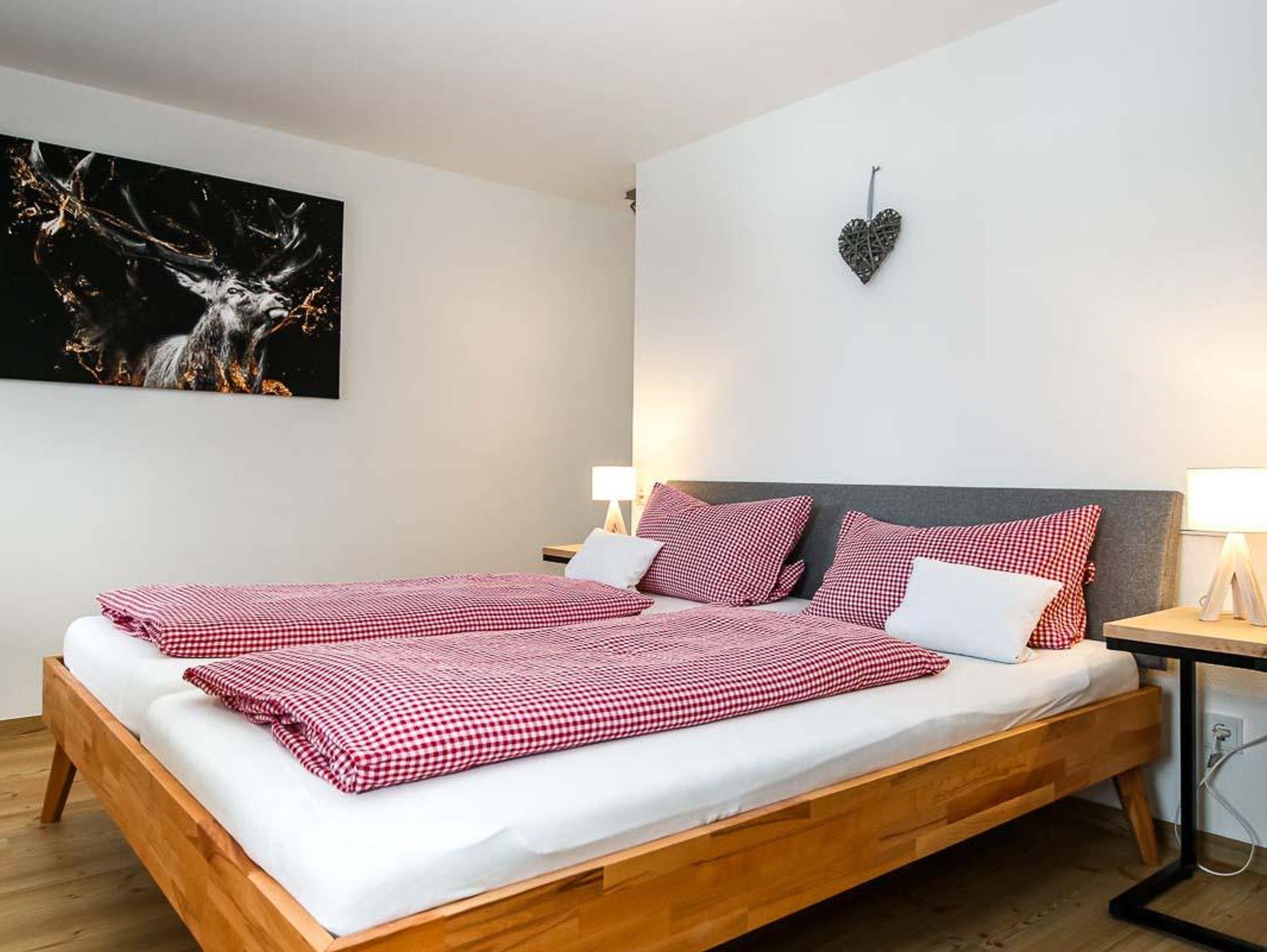 Das gemütliche Schlafzimmer mit Doppelbett ist sehr geräumig und hat wie auch im Wohnzimmer einen direkten Zugang zu Ihrem großen Südbalkon,