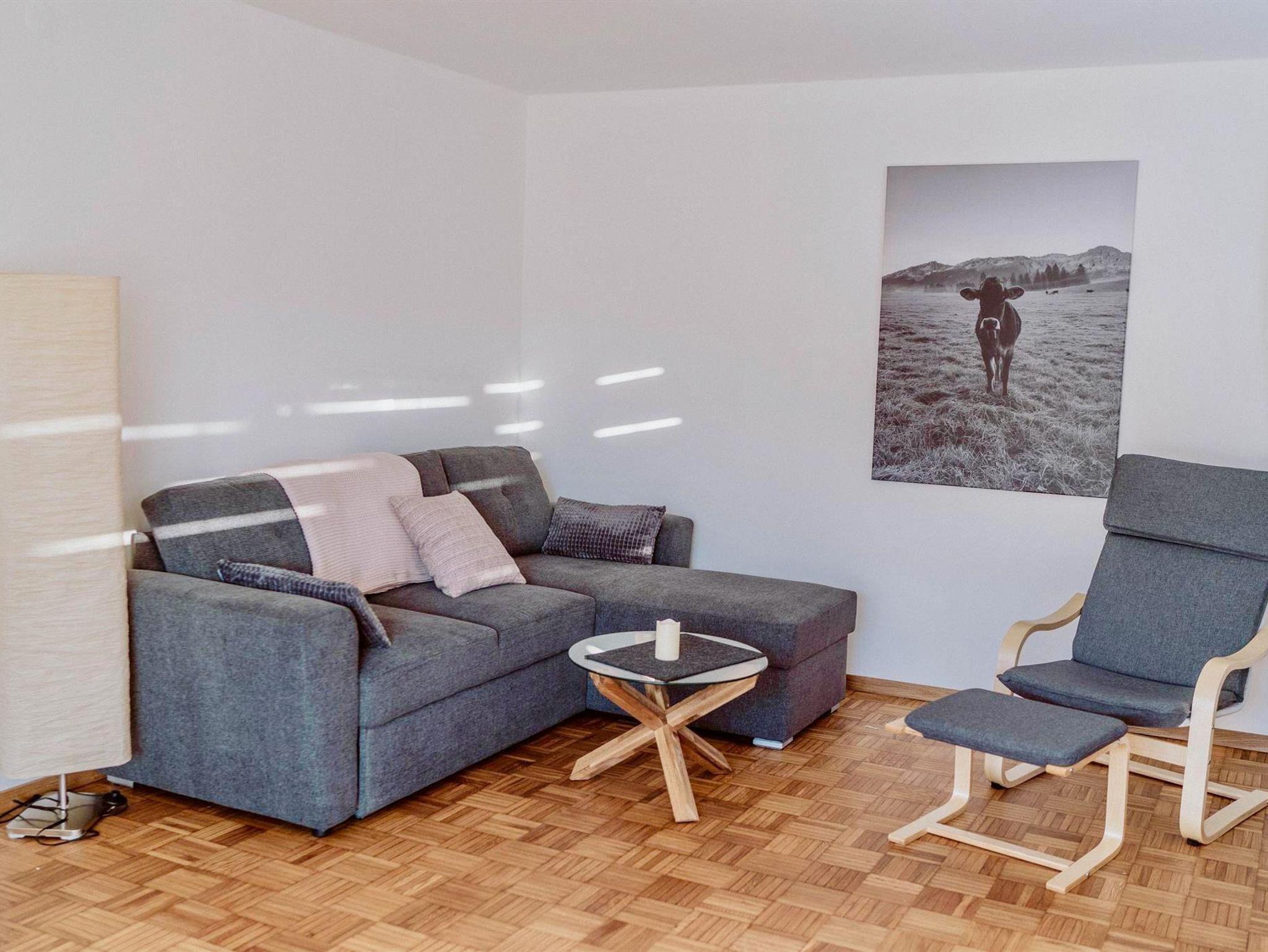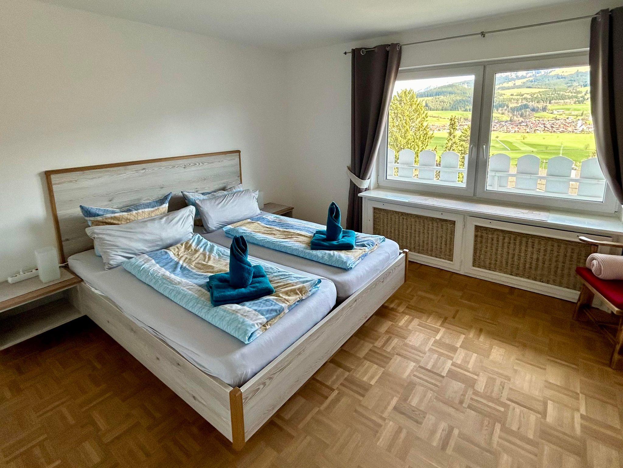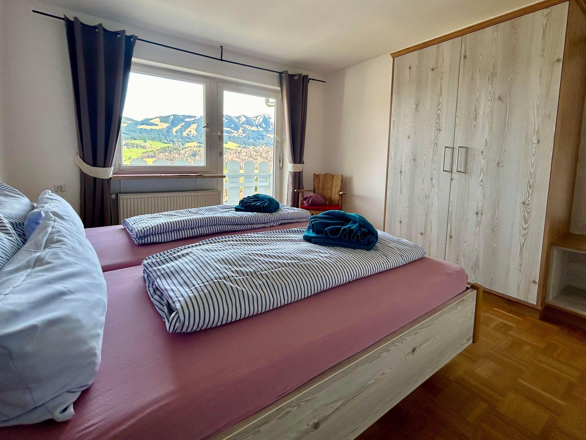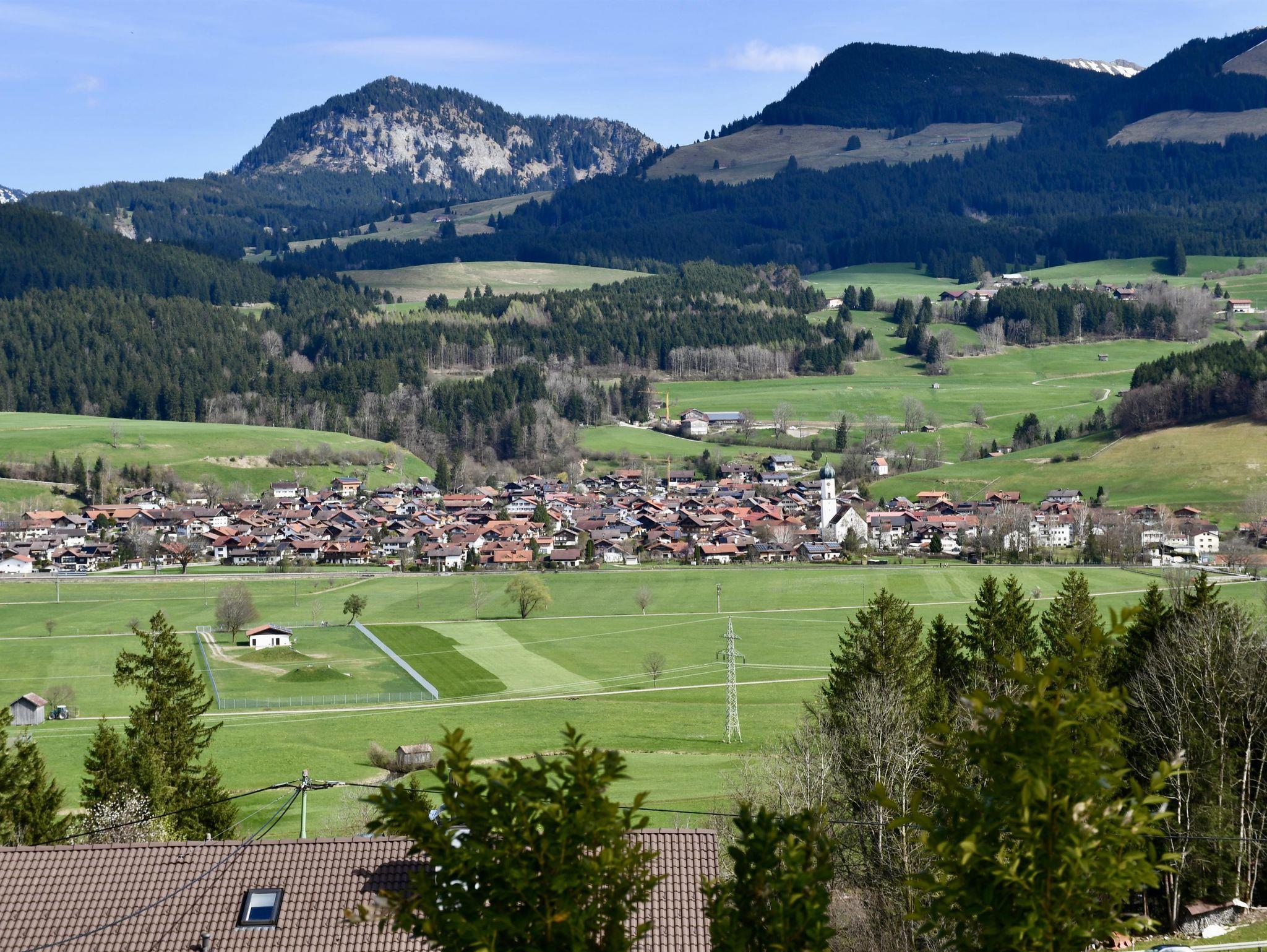 Durch die Hanglage besteht freie Sicht auf das Illertal und die Sonnenköpfe/Rubihorn.