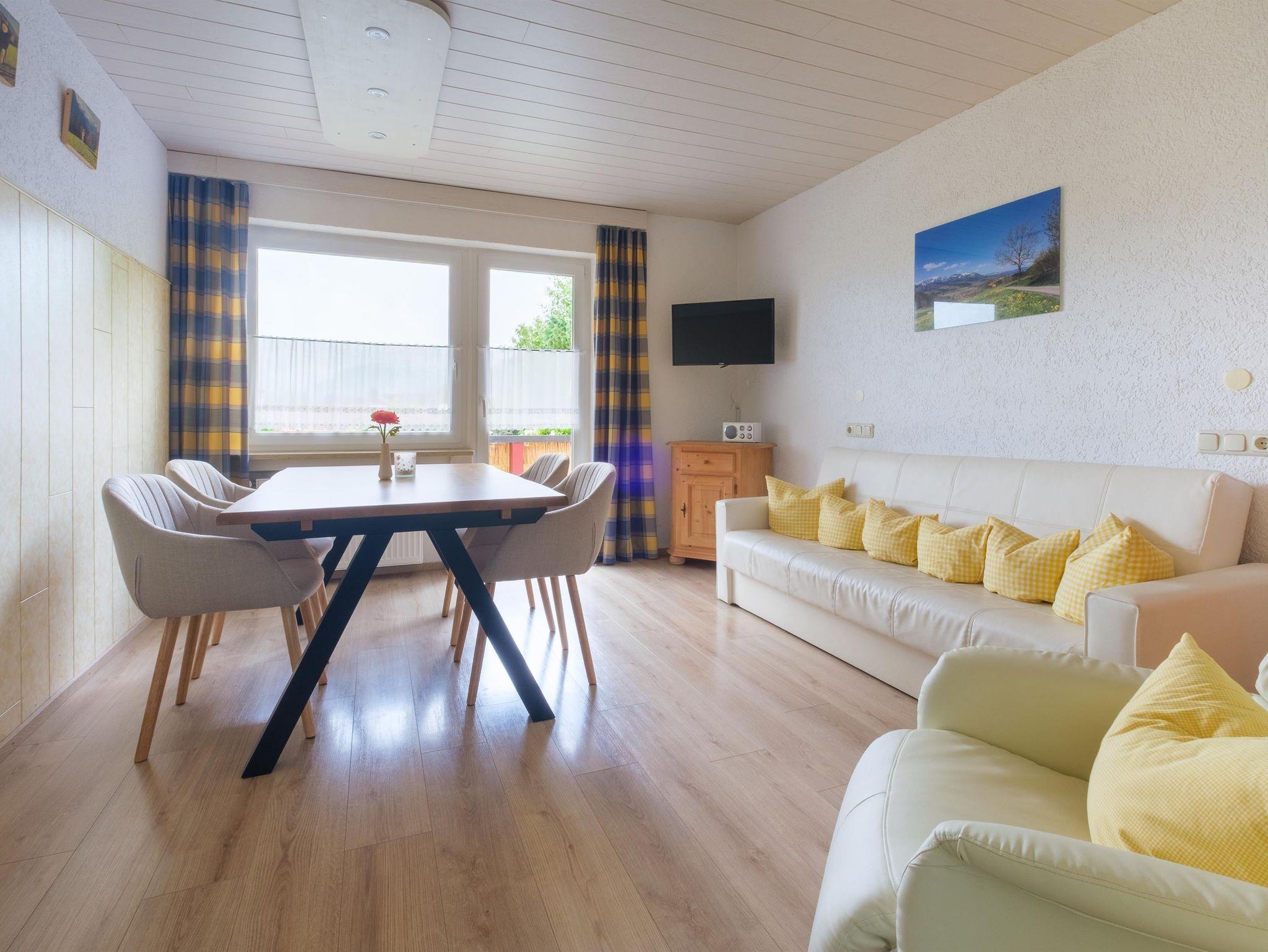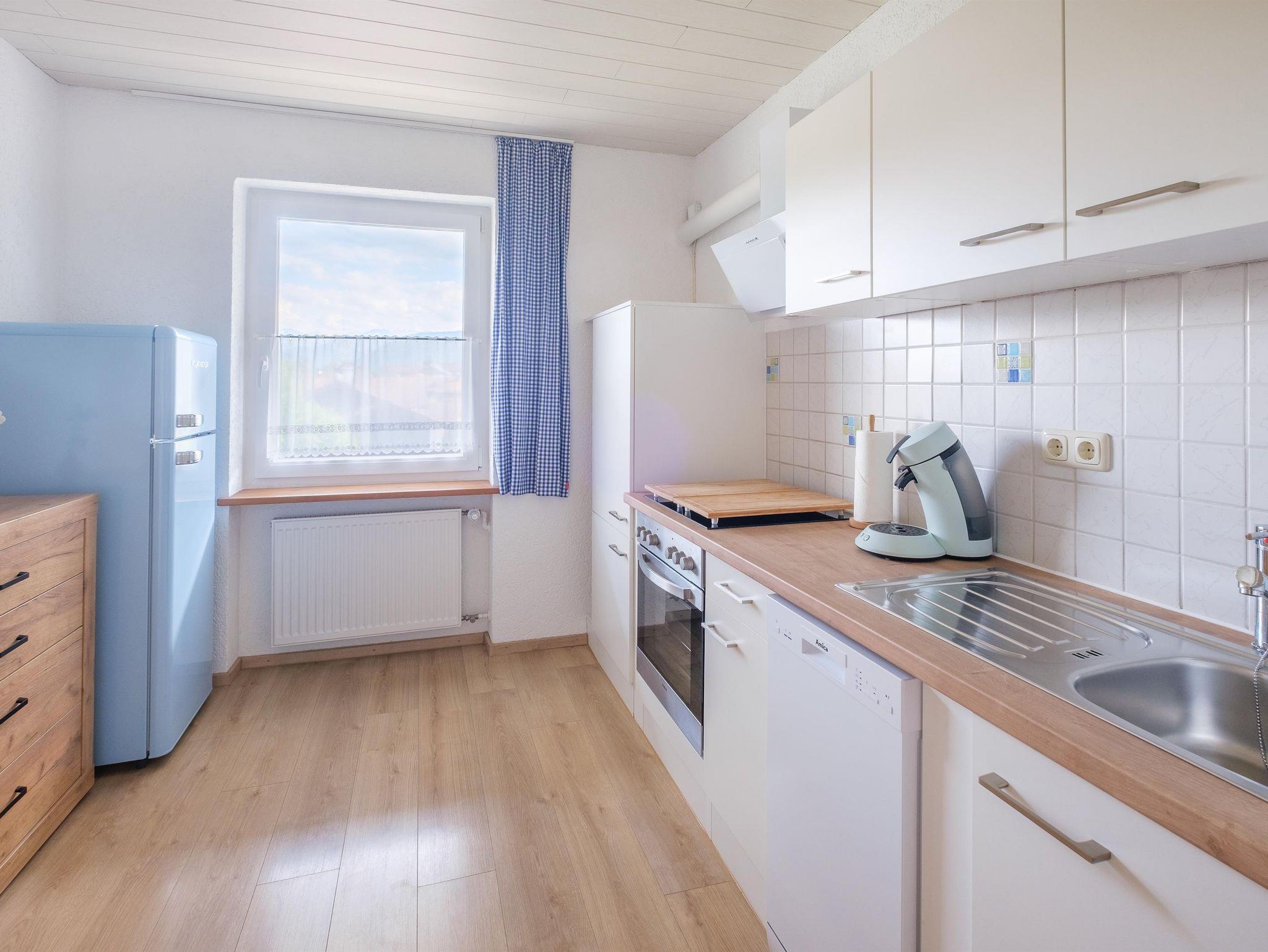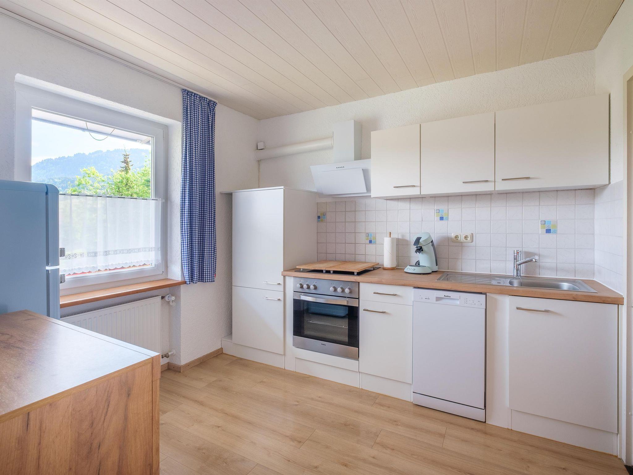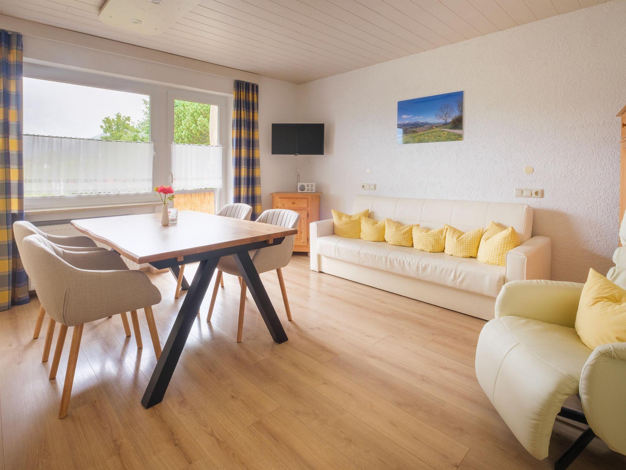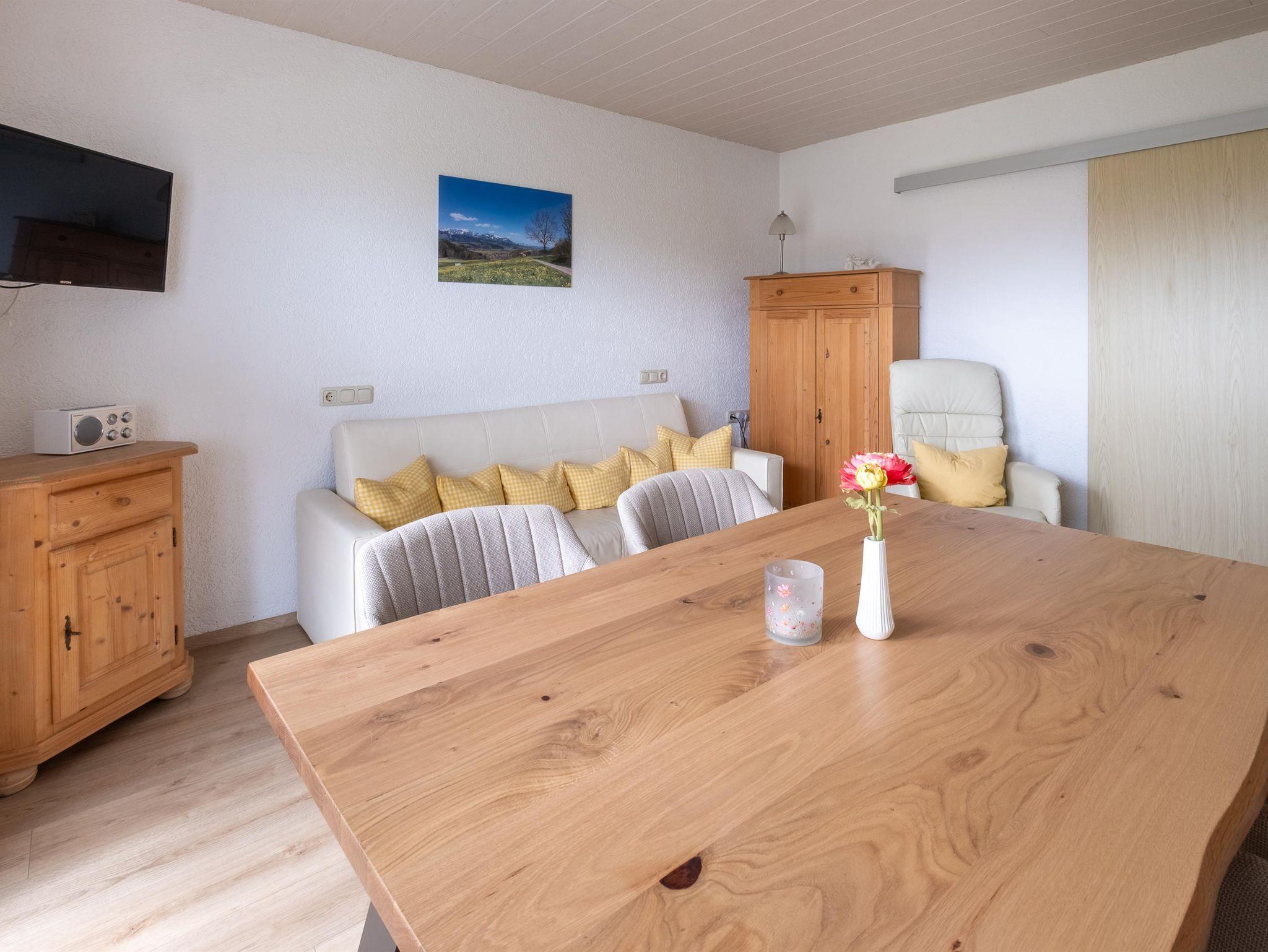 Sie bietet Platz für 4 Personen, auf dem großen Südbalkon mit Bergsicht können Sie von Morgens bis Nachmittags/Abends die Sonne Ofterschwangs genießen.
