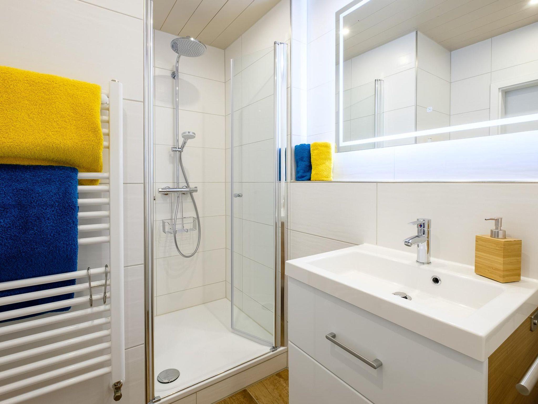 Das Appartement ist ausgestattet mit einer Küche, 2 Schlafzimmer (mit jeweils einem Doppelbett) und Kleiderschrank sowie 2 Badezimmer die an jedes Schlafzimmer grenzen (jeweils mit Dusche und WC).