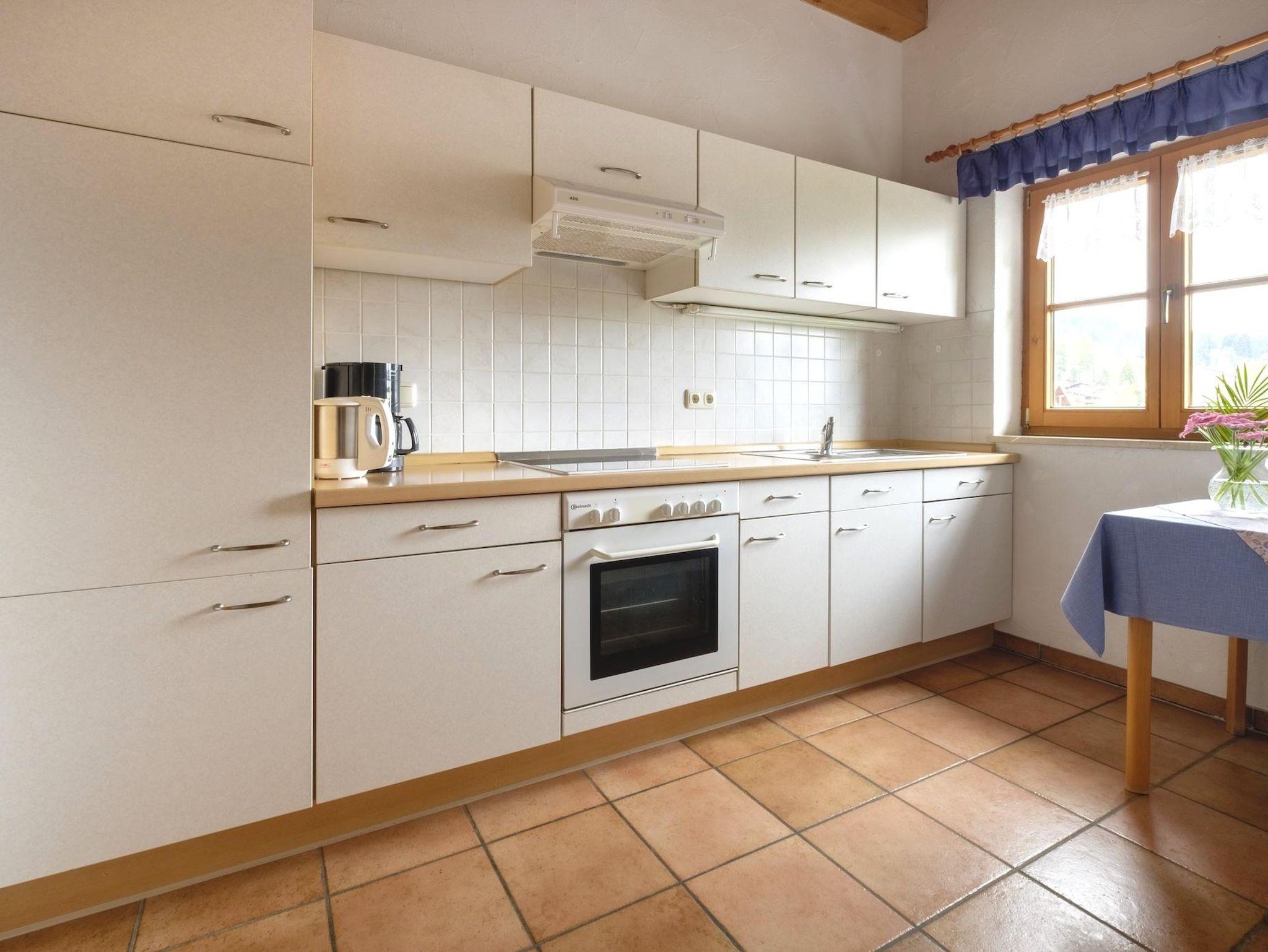 2 separate Schlafzimmer, Wohnraum mit ausziehbarer Couchgarnitur, separate Küche (Spülmaschine, BAckofen etc.), Dusche/WC, SAT-TV, Radio, kostenloses WLAN, herrlicher Blick in unsere Allgäuer Berge