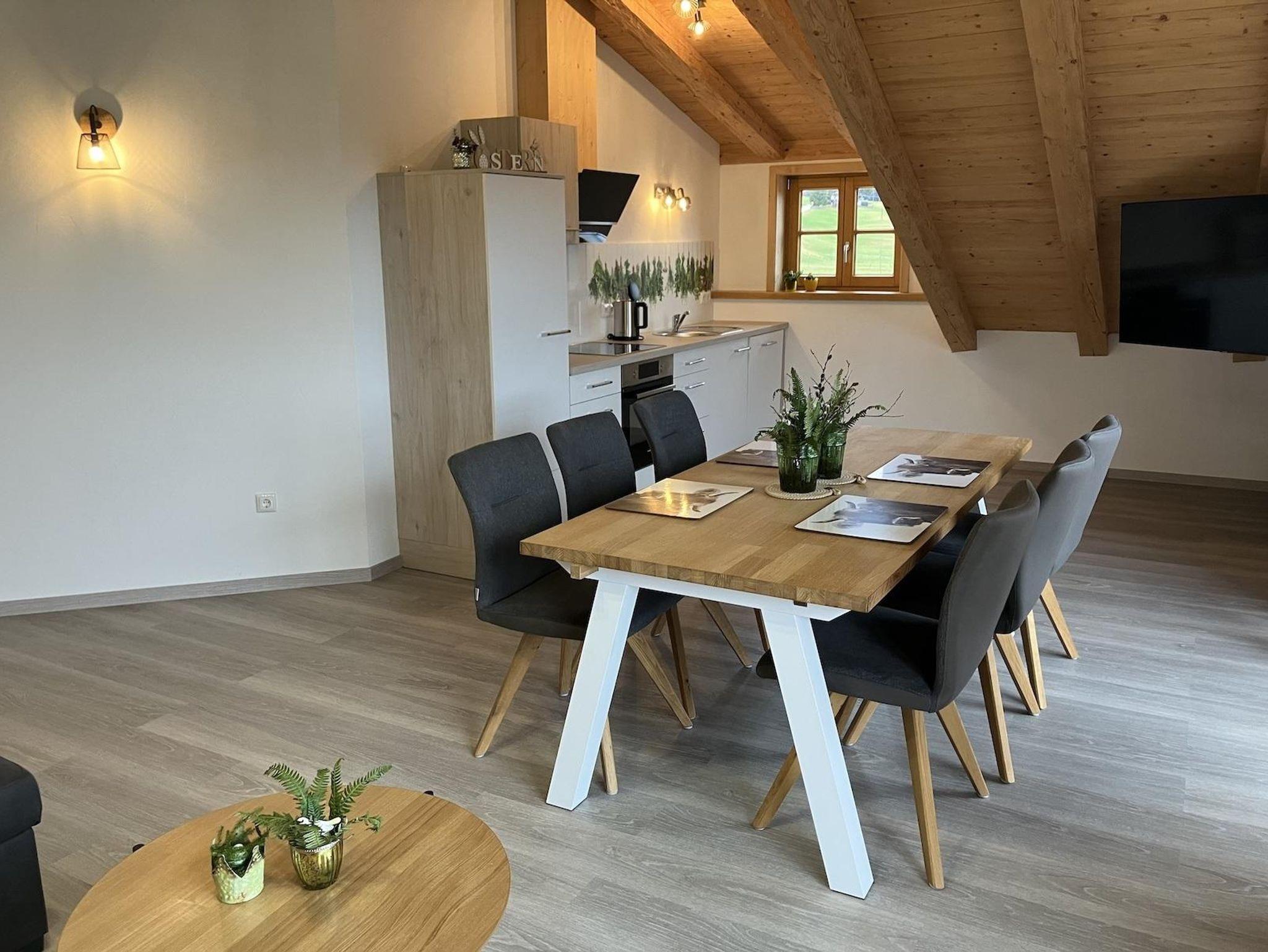 Willkommen in unserer mit viel Liebe eingerichteten Ferienwohnung „Sunnemändle“. Mit zwei separaten Schlafzimmern, einem Bad mit Regenwalddusche und einem zusätzlichen WC bietet sie Platz für bis zu vier Personen. Durch die alpenländische Gestaltung erhält die helle Wohnküche ihren besonderen Charme, der zum gemütlichen Beisammensein einlädt. Vom sonnigen Südbalkon aus können Sie den ganzen Tag das Bergpanorama der Allgäuer Alpen genießen.