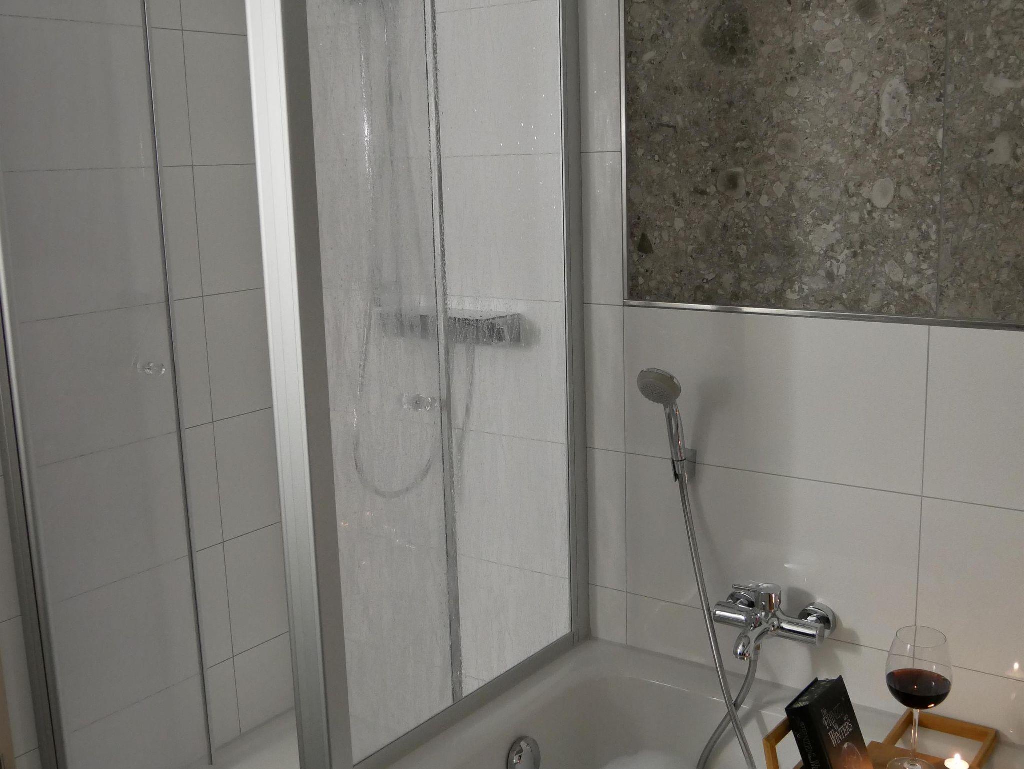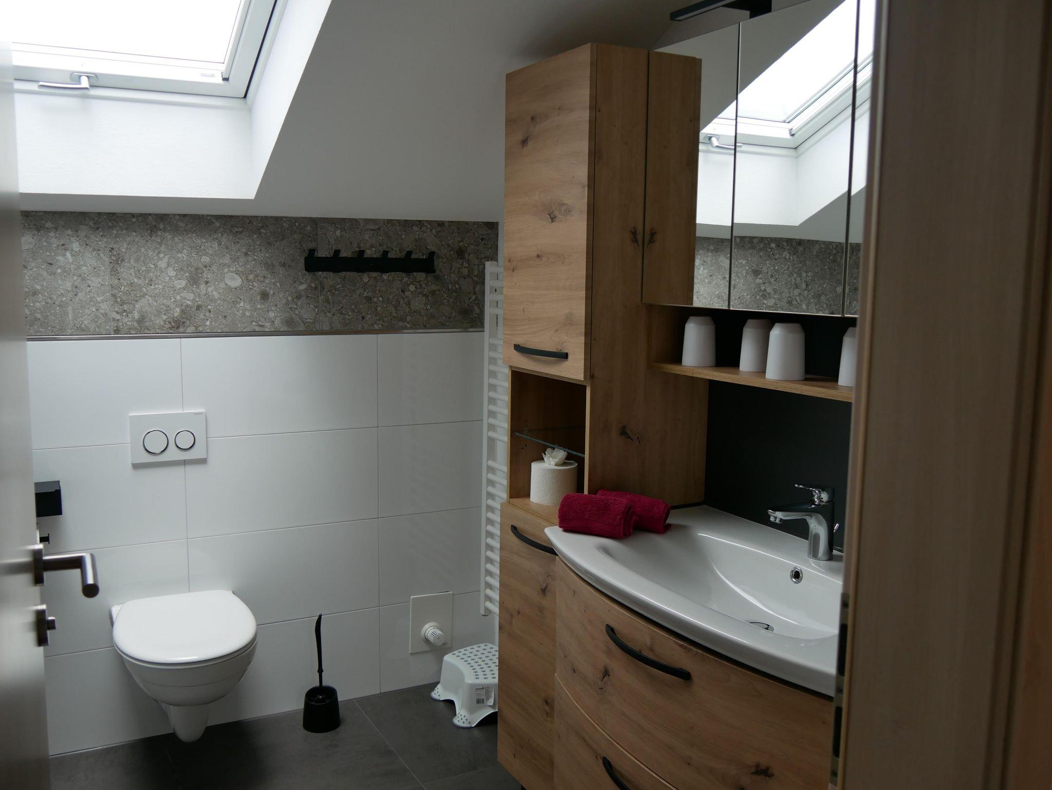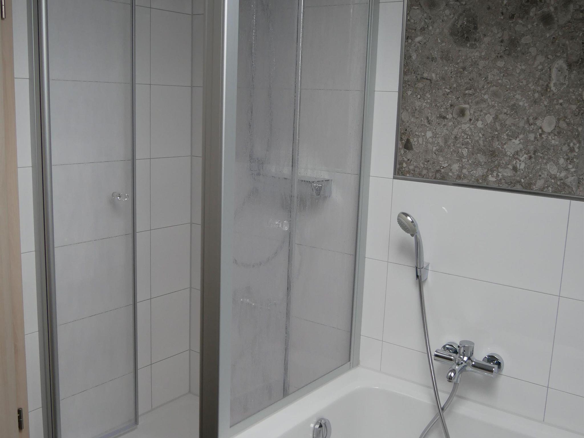 • ein Badezimmer mit Bad, Dusche und WC und ein separates WC