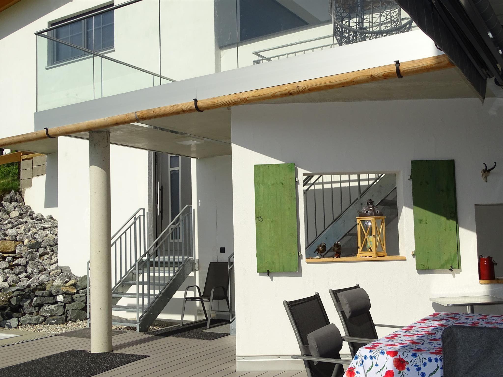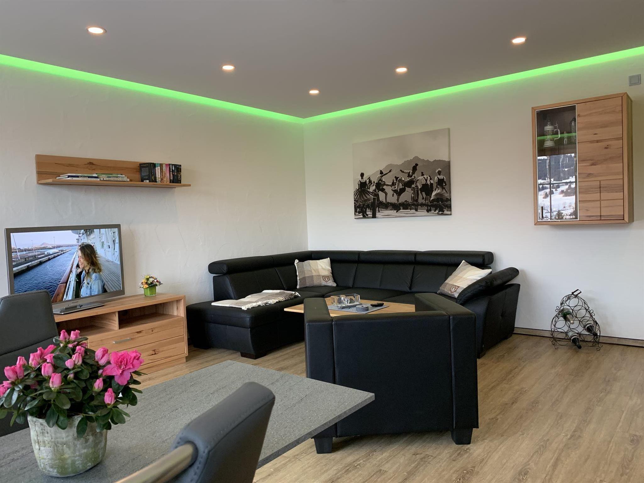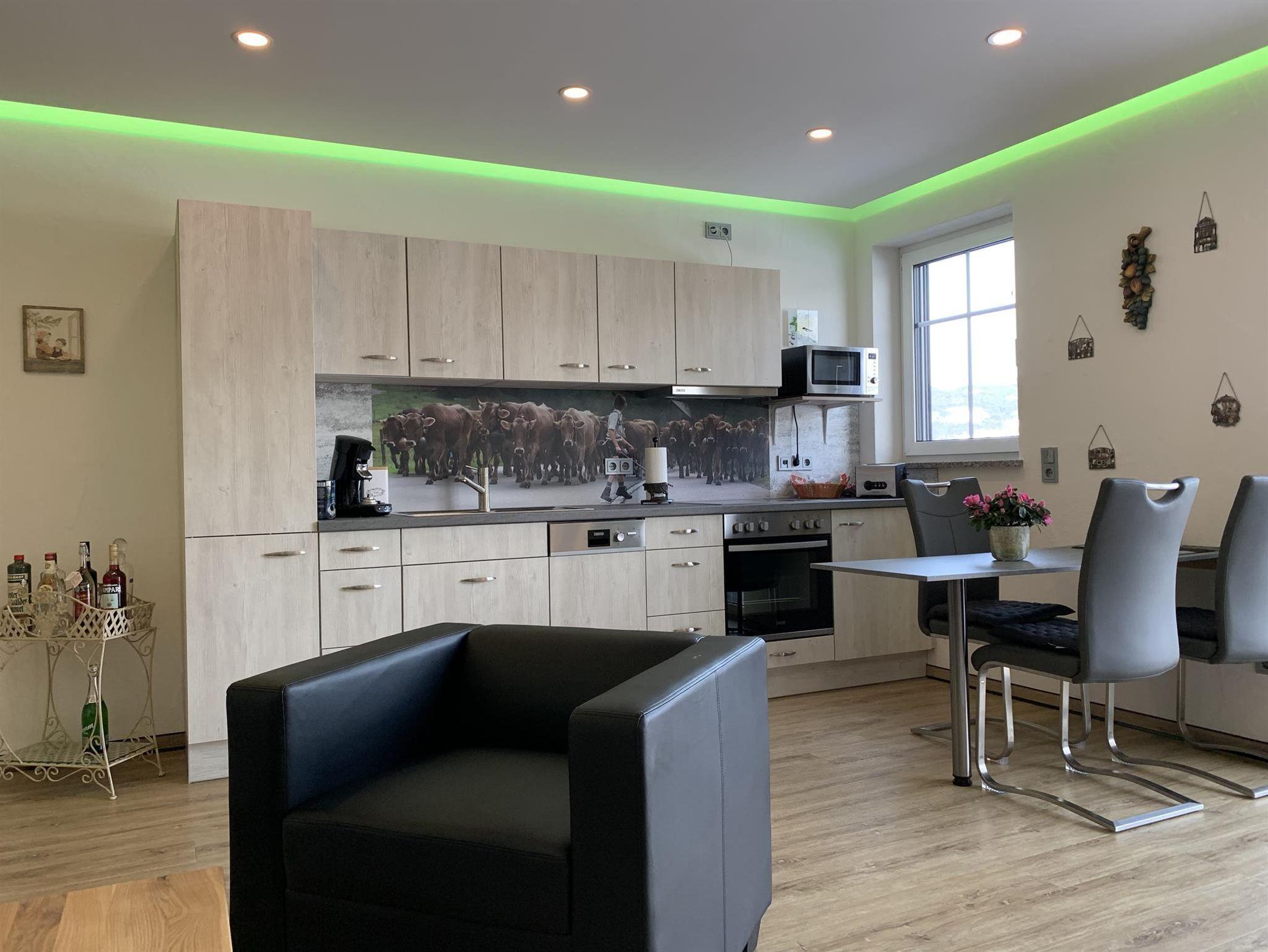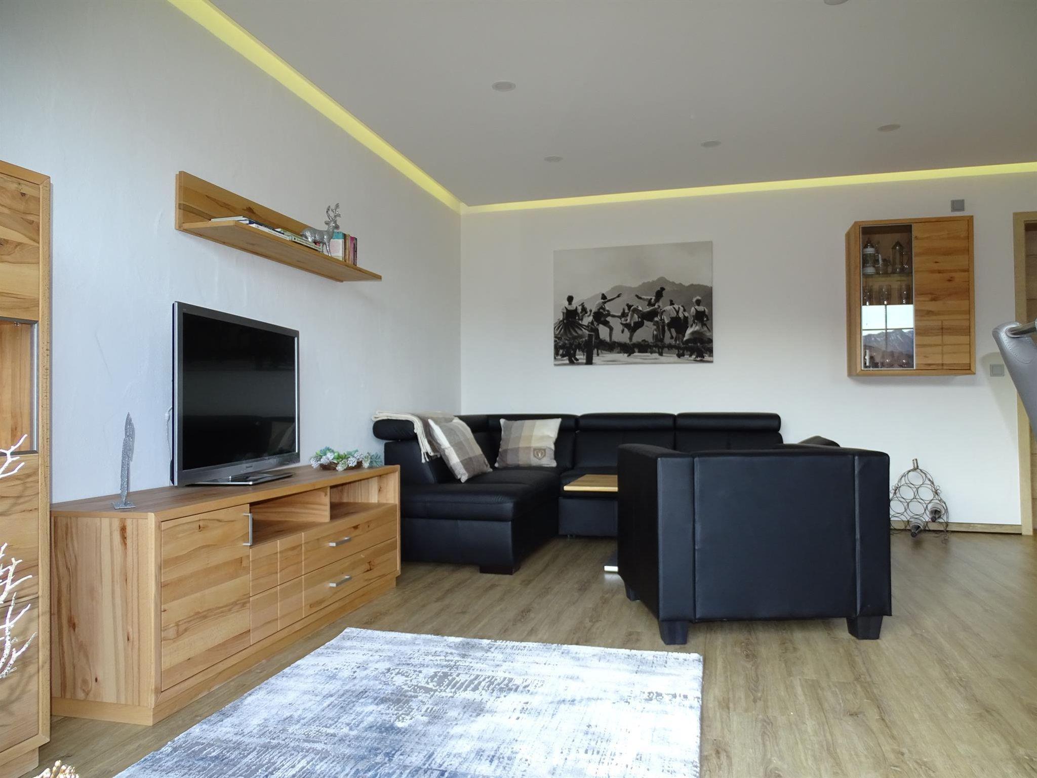 Unsere liebevoll, hochwertig ausgestattete Ferienwohnung verfügt über ein gemütliches Schlafzimmer, eine umfassend ausgestattete Wohnküche mit Esstisch und Ledercouch-Garnitur und ein geräumiges Tageslicht-Wellness-Bad mit Eckbadewanne und Regendusche. Genießen Sie die Aussicht auf unserer riesigen, möblierten Süd-/Ostterrasse. Unsere Panoramasauna mit Ruheraum und Dusche steht Ihnen ebenso zur Verfügung wie (während der Sommermonate) ein 4x8 m beheizter Außenpool.