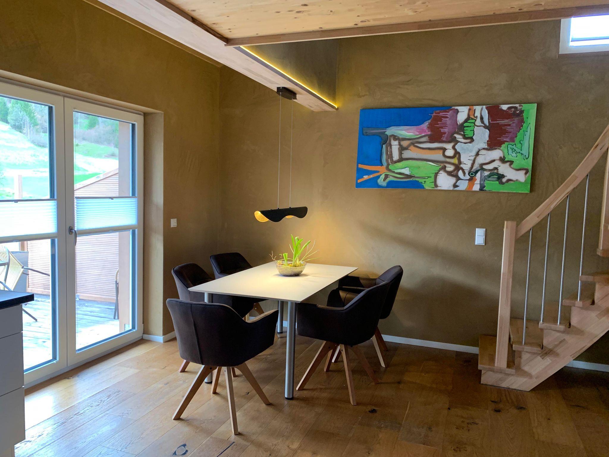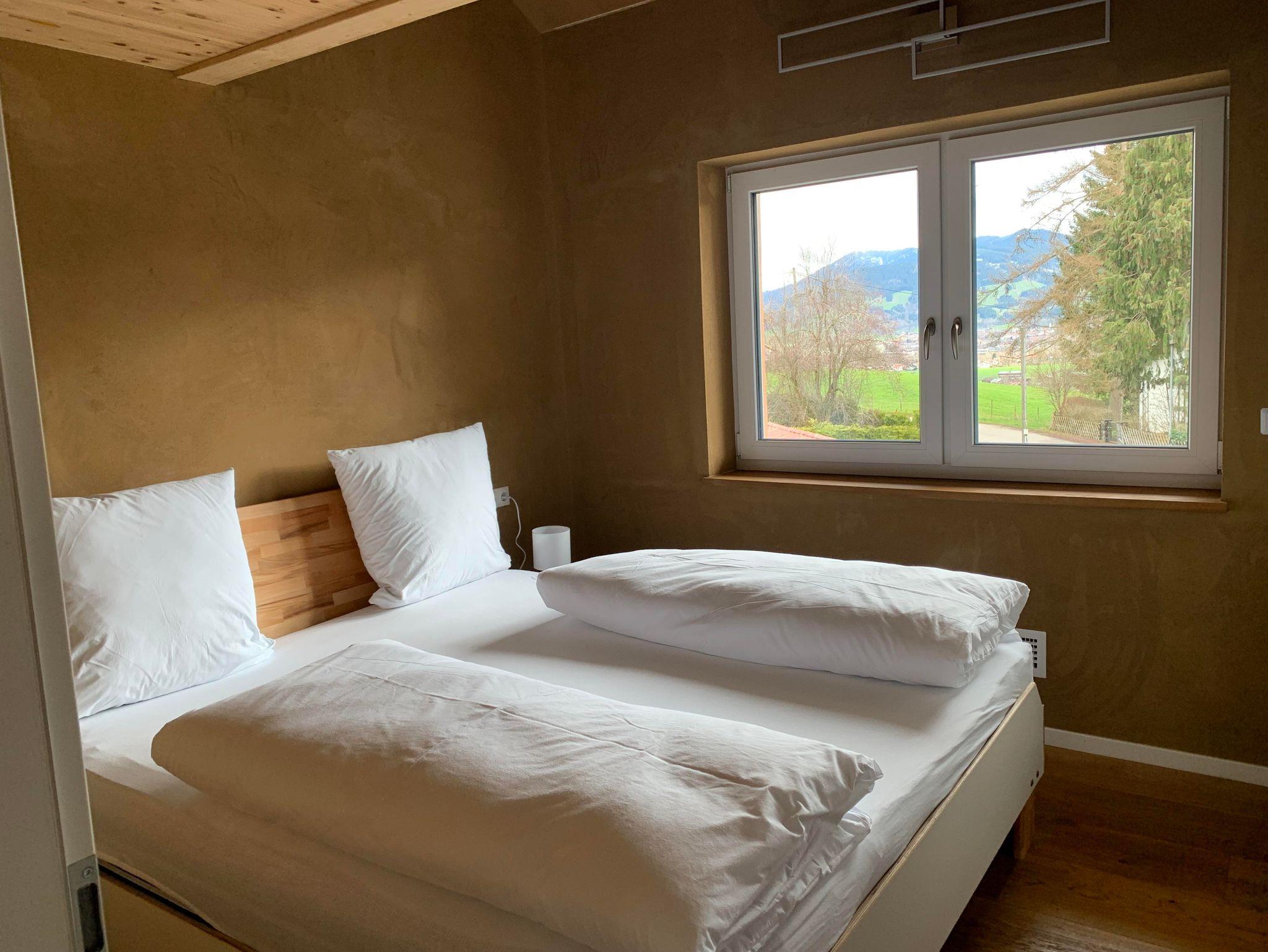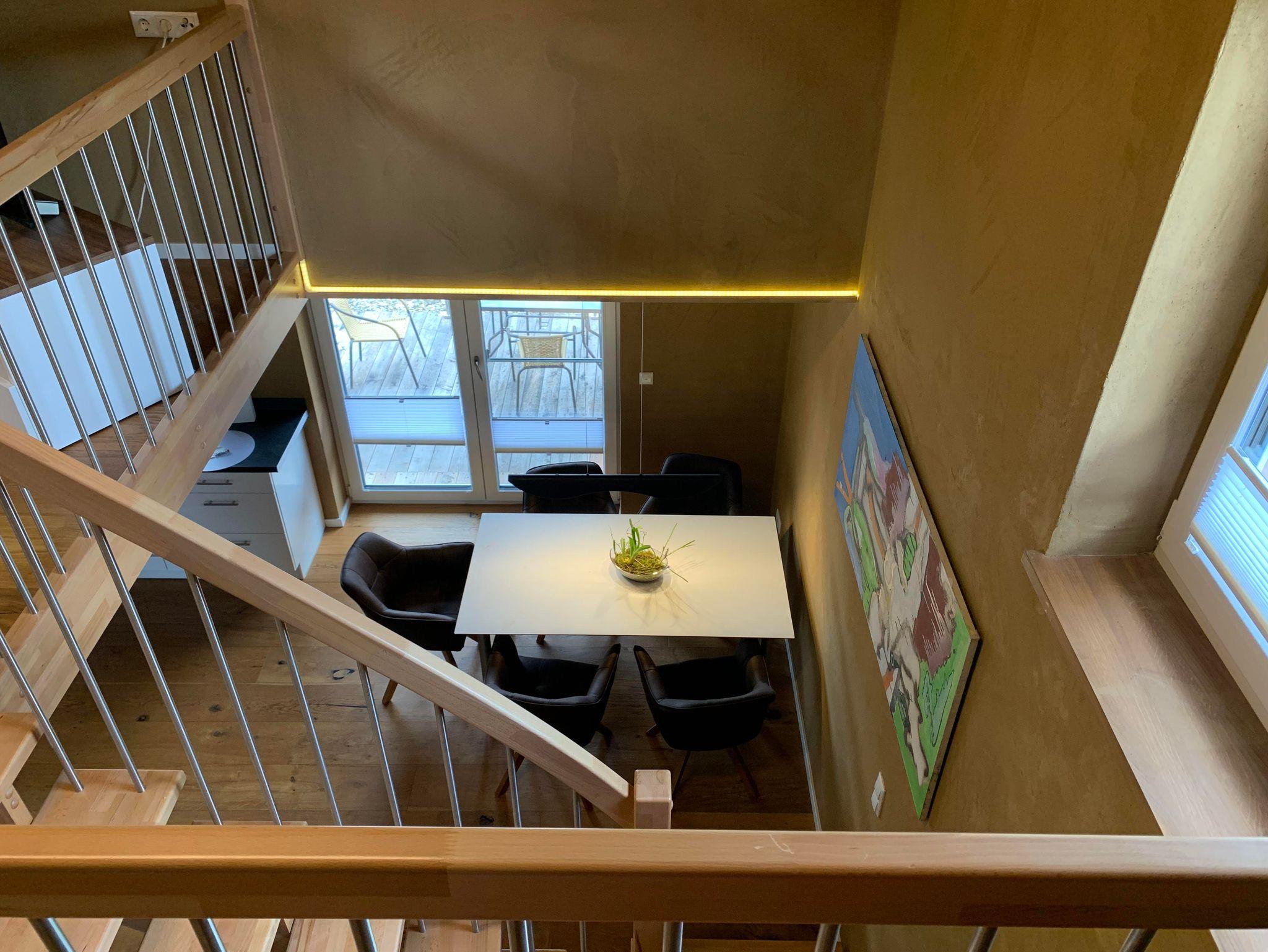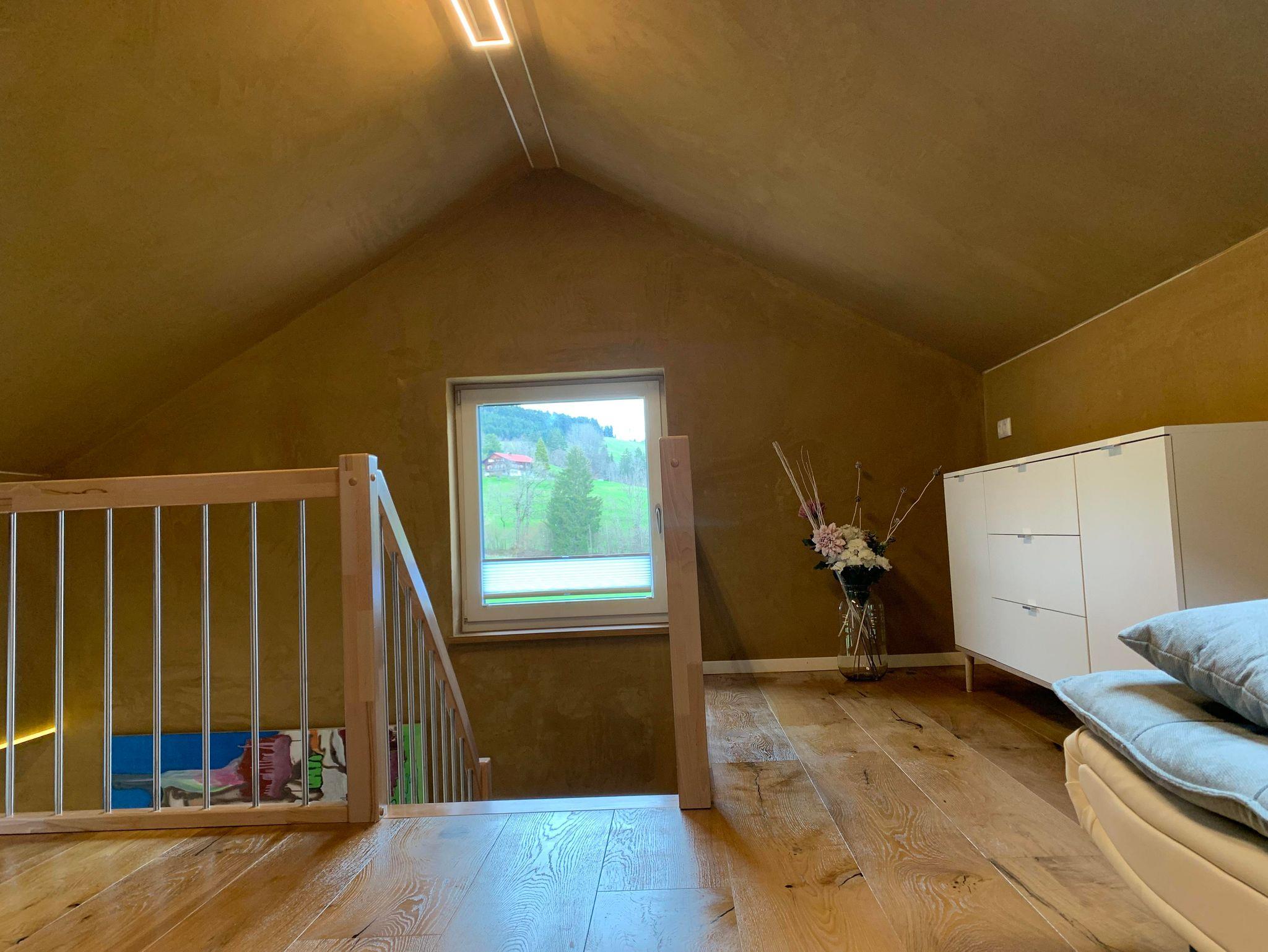 Die Ferienwohnung Rosskopf eine Maisonette Wohnung mit ca. 65 m² im 1. und 2. Stock eines neuerbauten Familienhauses, verfügt über eine Dachterrasse mit ca. 15 m² und eine Infrarotsauna. Für bestes Raumklima sorgt eine zentrale Lüftungsanlage, atmungsaktiver Lehmputz und Fußbodenheizung.