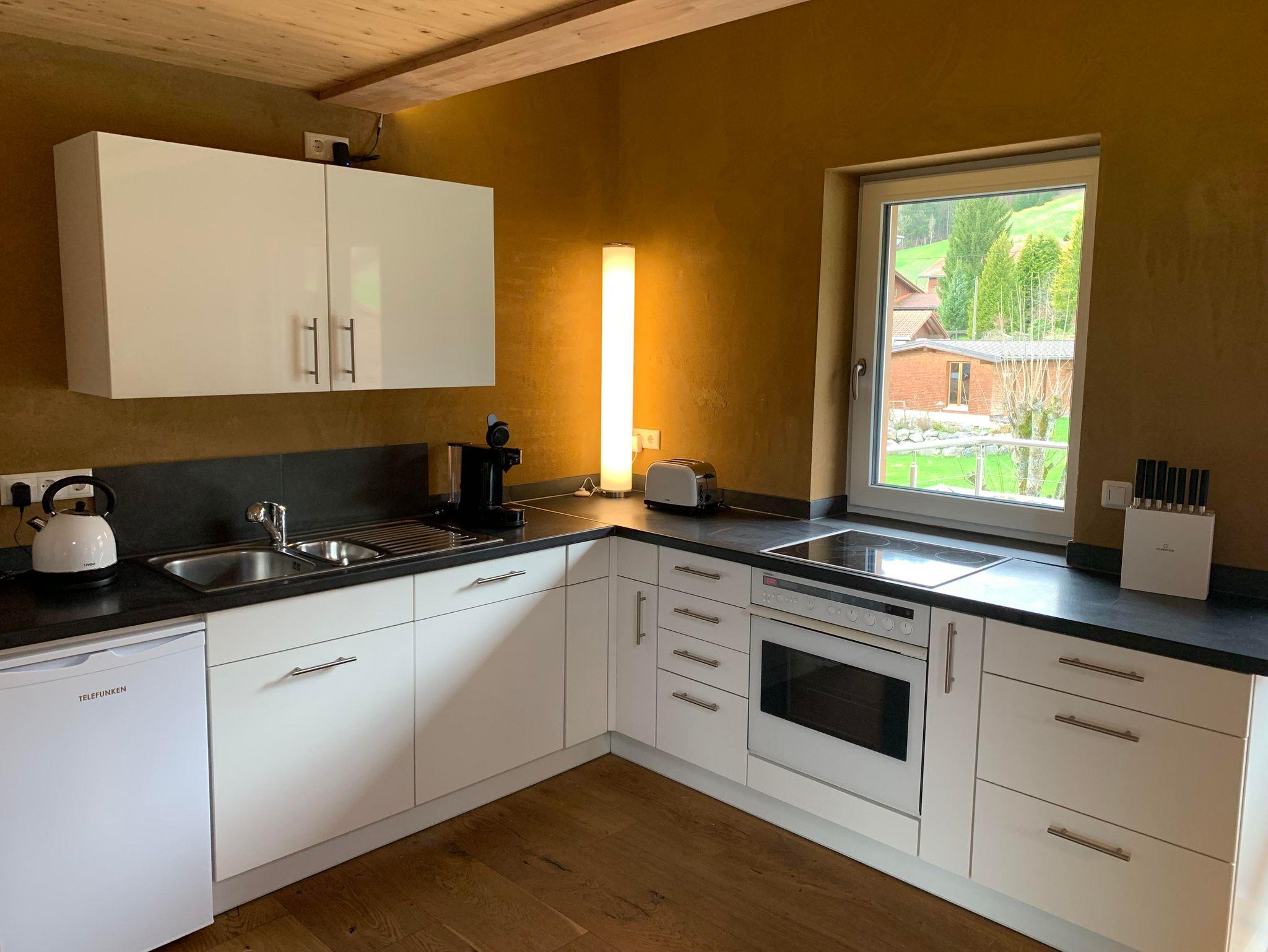 Die Küche ist voll ausgestattet (inkl. Geschirrspüler). Die Couch im Wohnzimmer ist ausziehbar und für 2 weitere Personen geeignet. Sat-TV und W-LAN vorhanden.