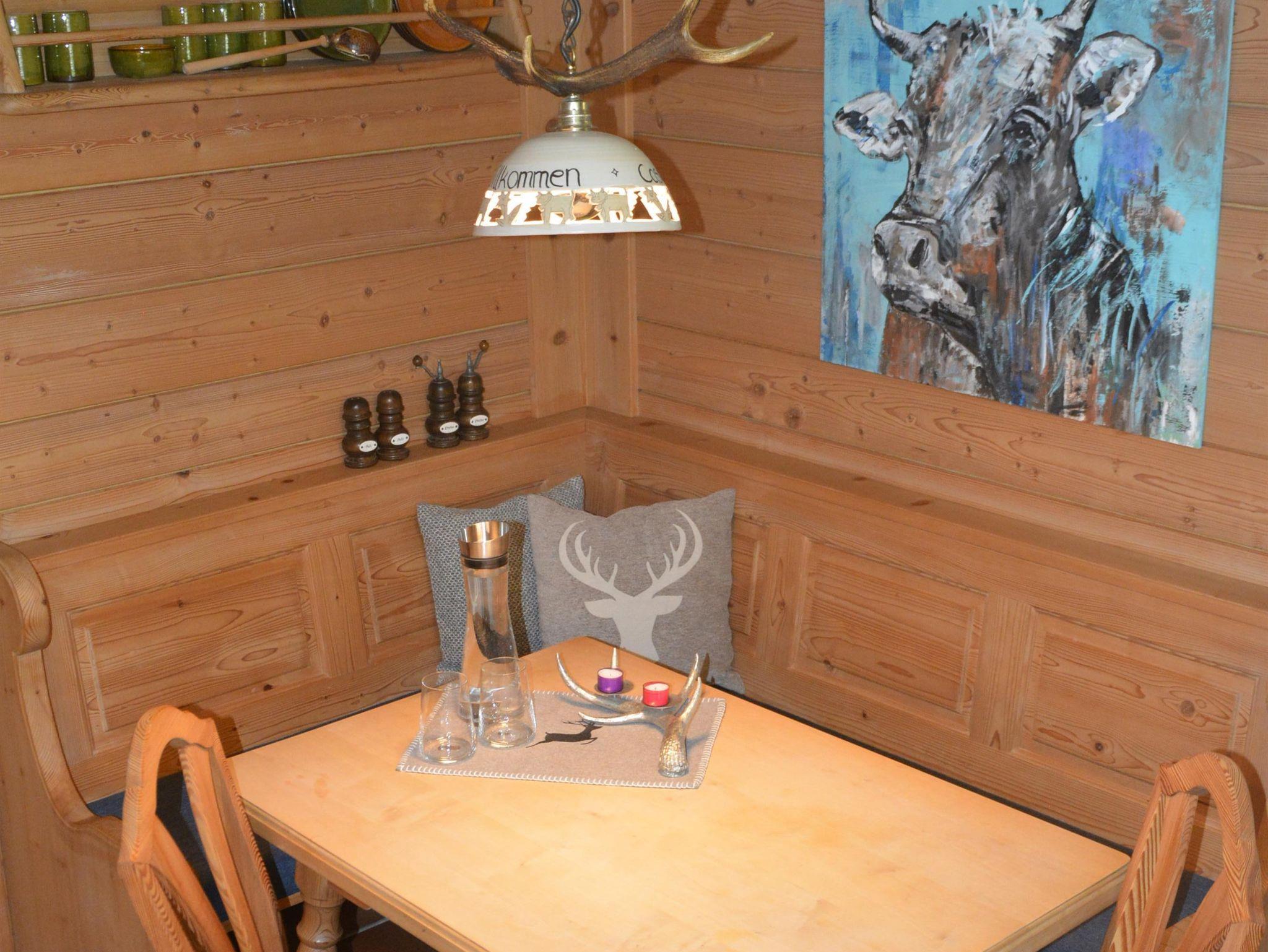 Schlafzimmer mit eigenem Bad, zusätzliches Gäste WC mit Dusche, voll ausgestattete Küche, Sonnenterrasse mit Liegestühlen und Sitzbank, offener Kamin im Wohnzimmer für romantische Stunden und einem Saunabereich im Keller. 300m zur Bergbahn sowie zum Dorfladen und mehrere Restaurants/Hütten zu Fuß erreichbar.