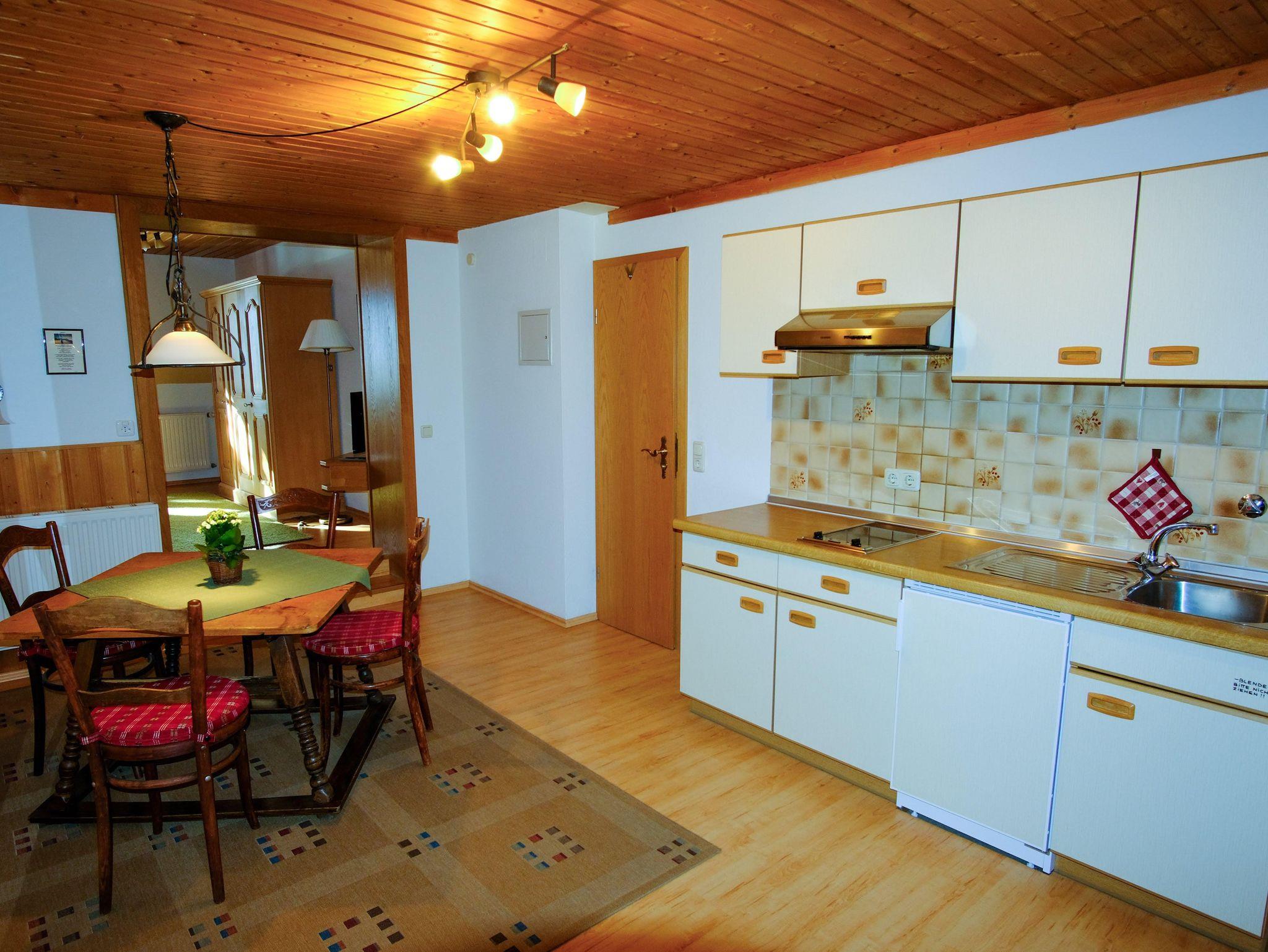 Unsere Rotspitz Ferienwohnung ist ein absoluter Place to be. Direkt vor ihr ragt unsere große Kiefer und spendet an heißen Tagen schatten. Sie strahlt Ruhe aus und versperrt trotzdem nicht den Blick in die schöne Bergwelt. Näher als in dieser Wohnung kann man der Natur nicht sein. Durch Vollholzmöbel und einer kleinen Sitzgruppe wird der Raum gemütlich und lädt zum erhohlen ein.