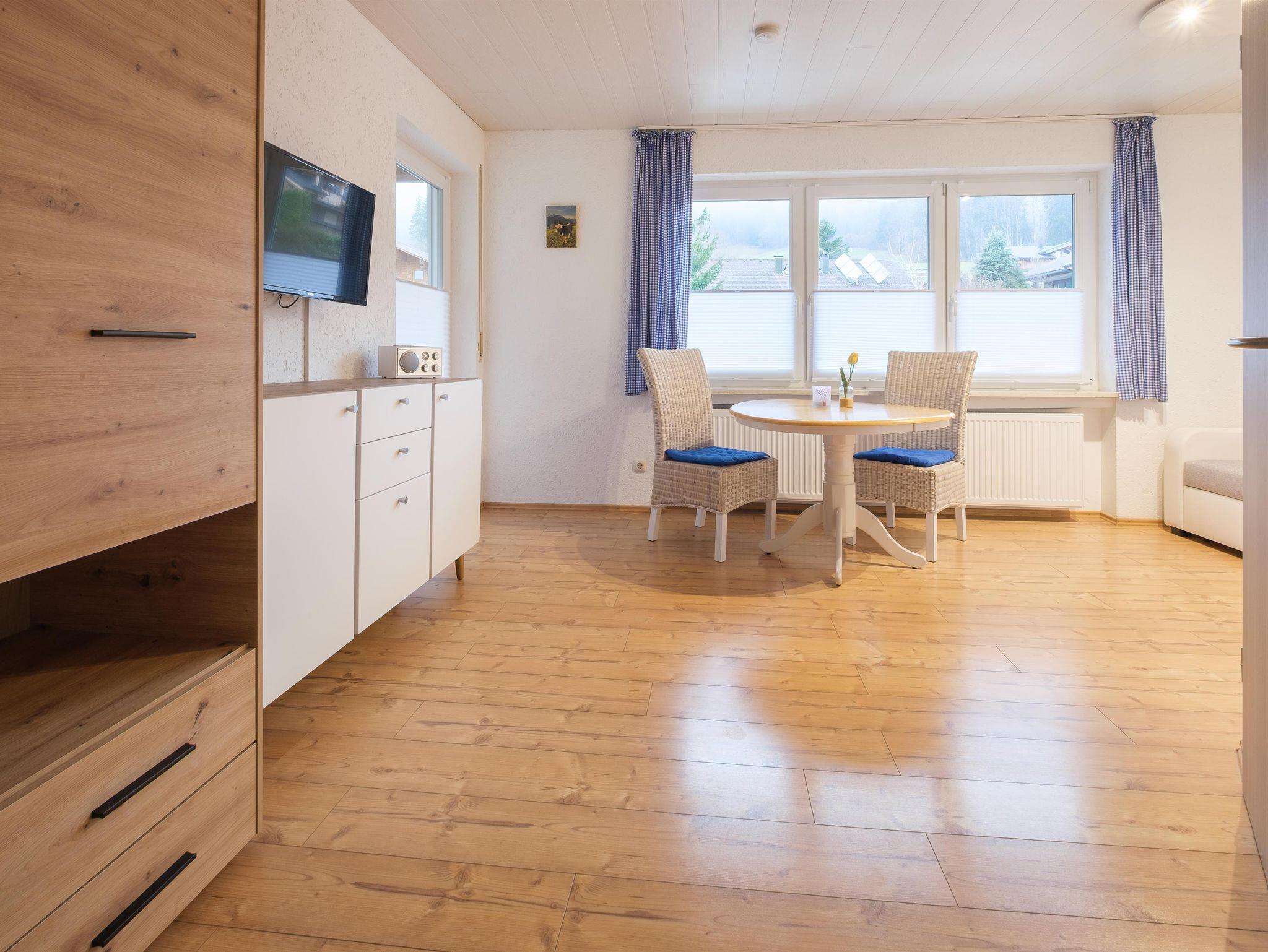 Sie bietet Platz für 2 Personen, auf dem Balkon mit Bergsicht können Sie die abendliche Sonne Ofterschwangs genießen.