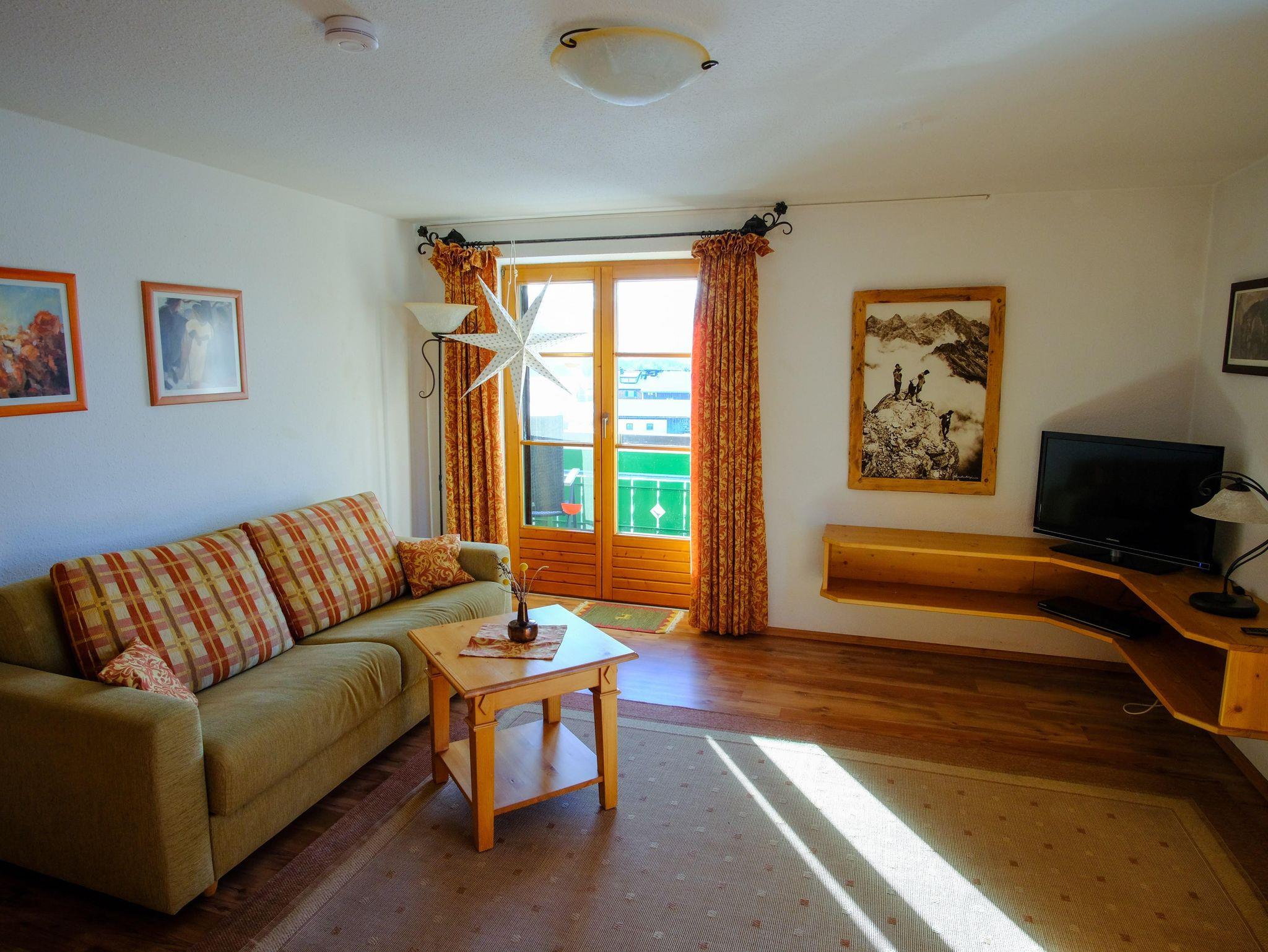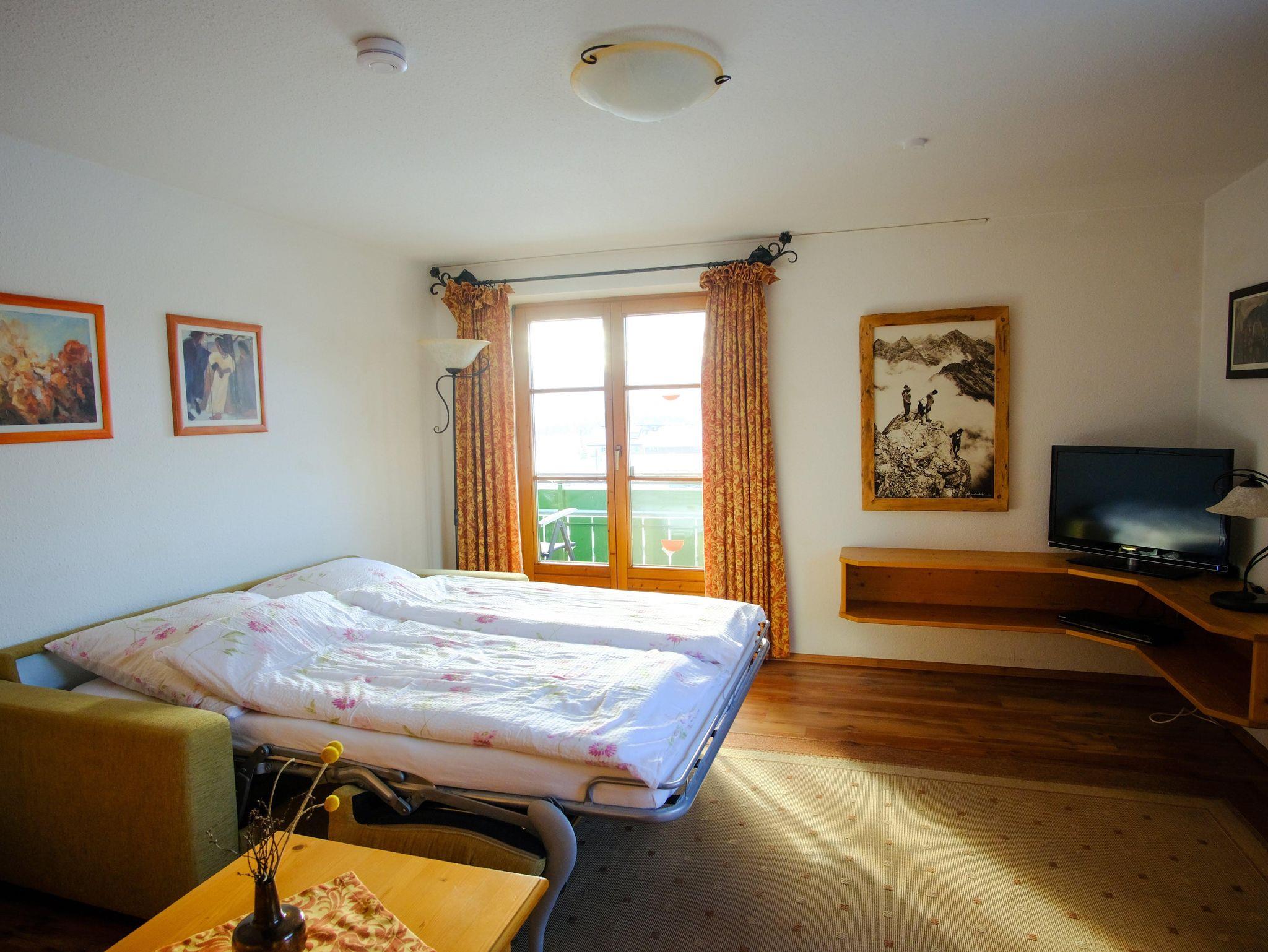 • Ferienwohnung Zipfelsalp Apartment mit separatem Schlafzimmer und Schlafsofa im abgetrennten Wohnbereich.