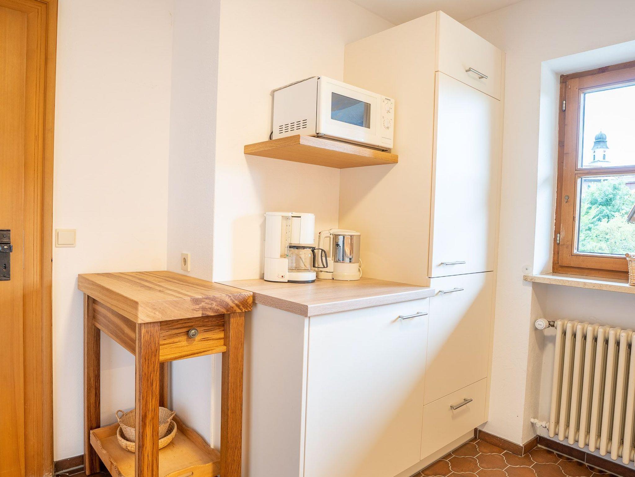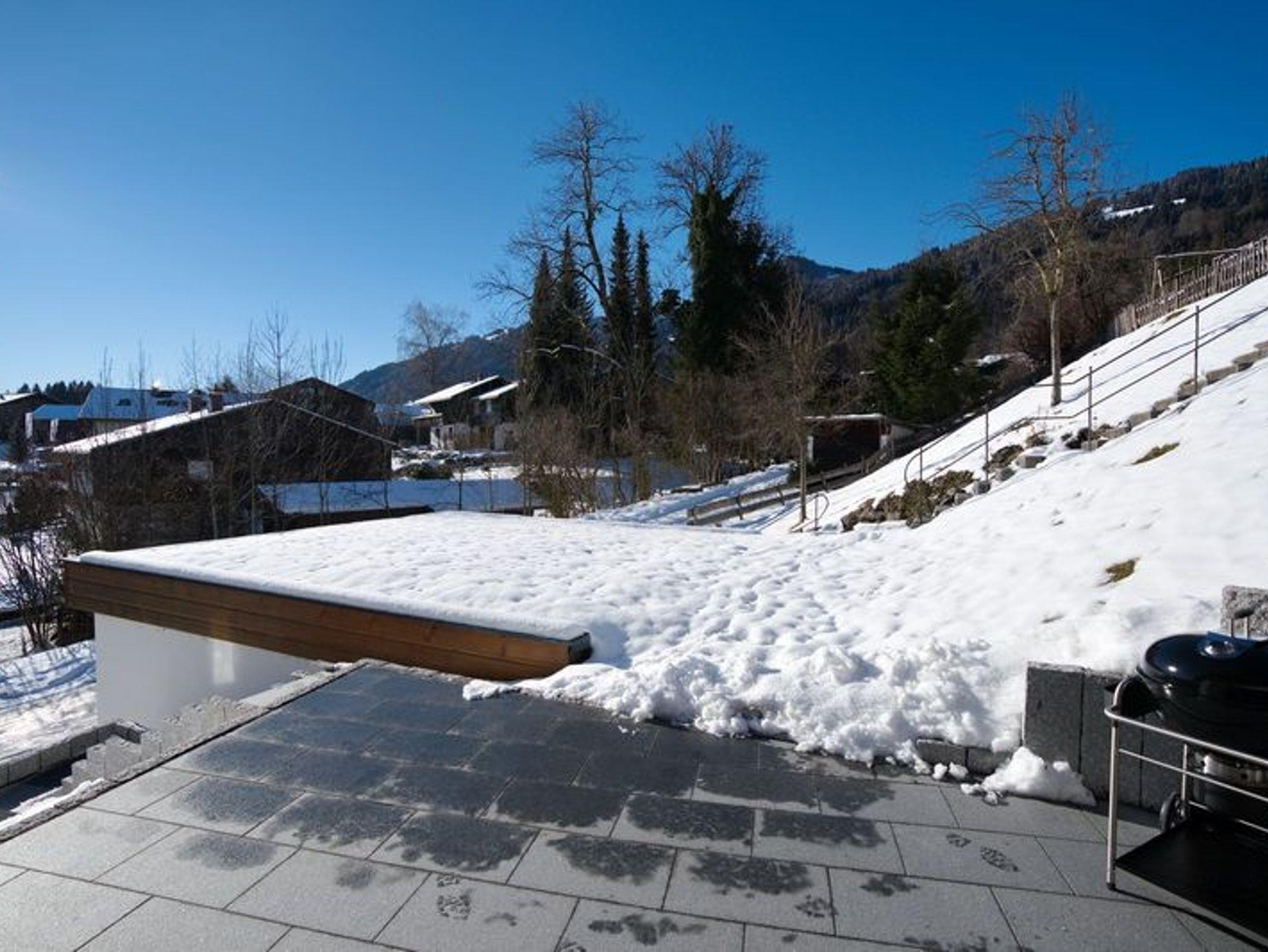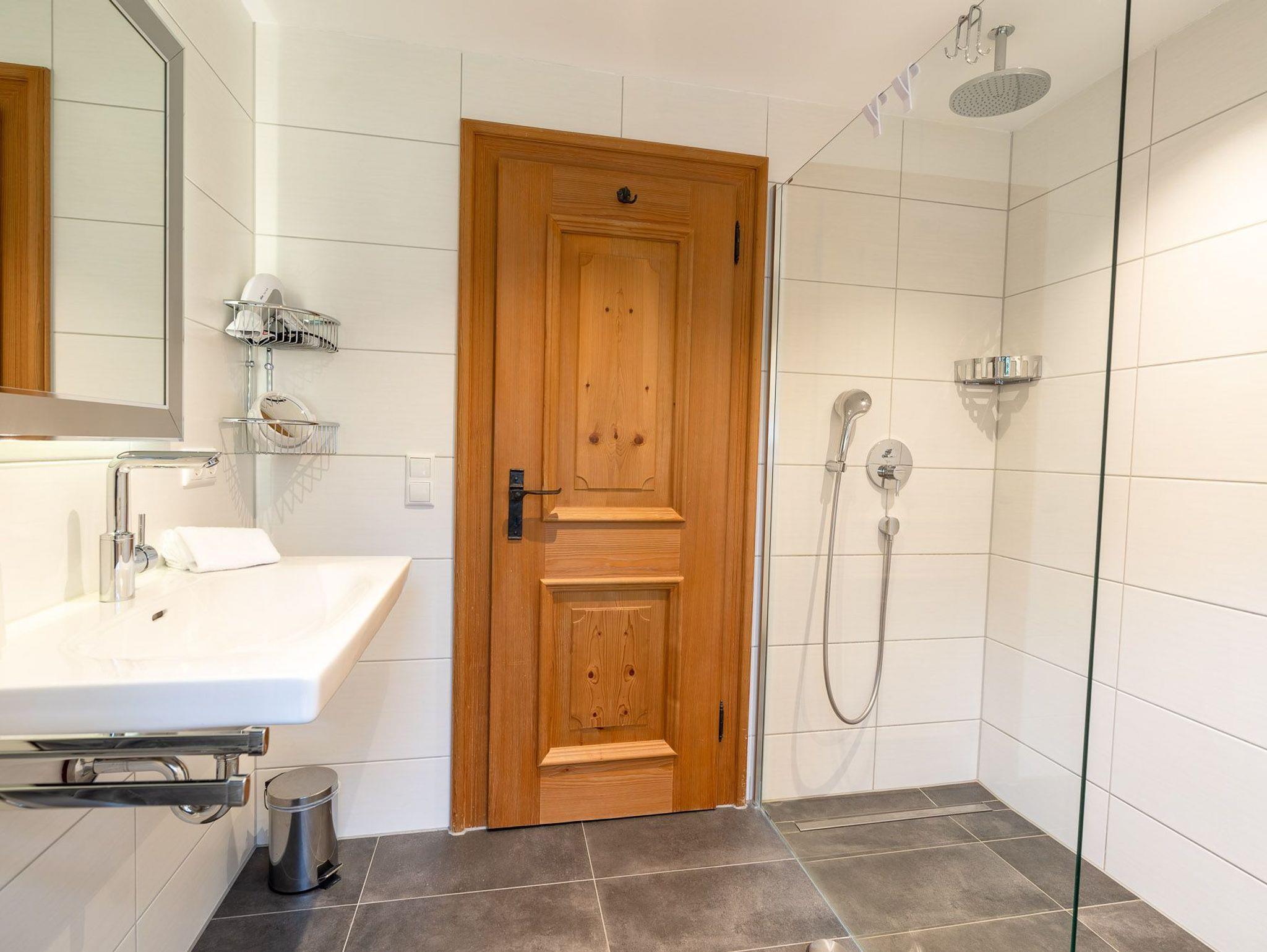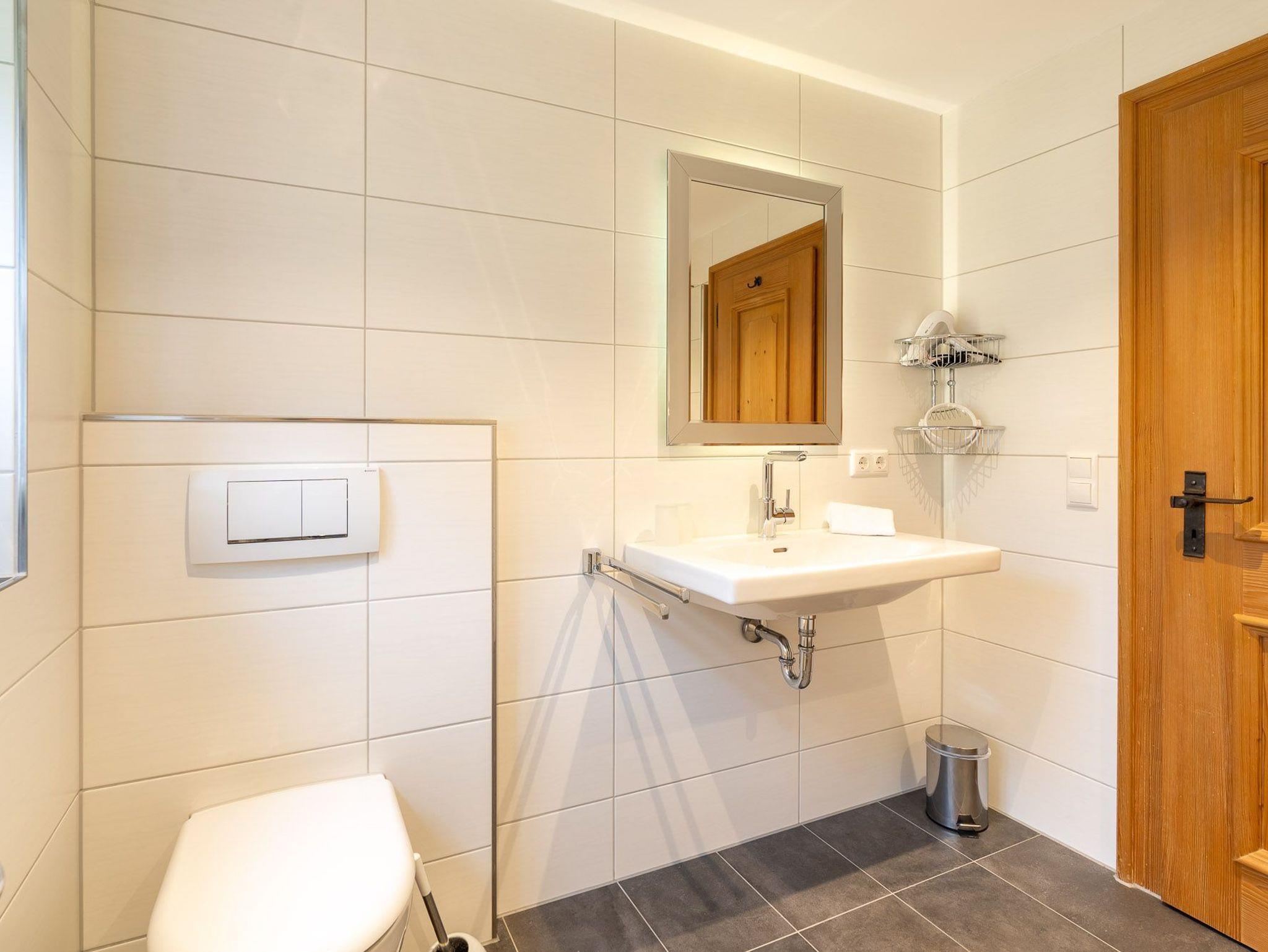 Im Erdgeschoss erwartet Sie eine kleine Küche von welcher Sie in den geräumigen Wohn-Essbereich gelangen. Hier können Sie sich an einem der beiden Essplätze, einer gemütlich am warmen Kachelofen der andere in einem Erker mit Ausblick bei einem ausgiebigen Frühstück oder einem Gläschen Wein entspannen oder Sie machen es sich auf der großen Sofalandschaft im geräumigen Wohnzimmer bequem. Von hier aus gelangen Sie auf die große Terrasse die im Sommer und im Winter ein herrlicher Ort ist um die warmen Sonnenstrahlen und die schneebedeckte, glitzernde Bergwelt zu genießen. In dieser Etage befinden sich zwei Schlafzimmer jeweils mit Doppelbett ausgestattet, ein separates WC und ein Badezimmer mit Dusche, Badewanne, Bidet und WC.