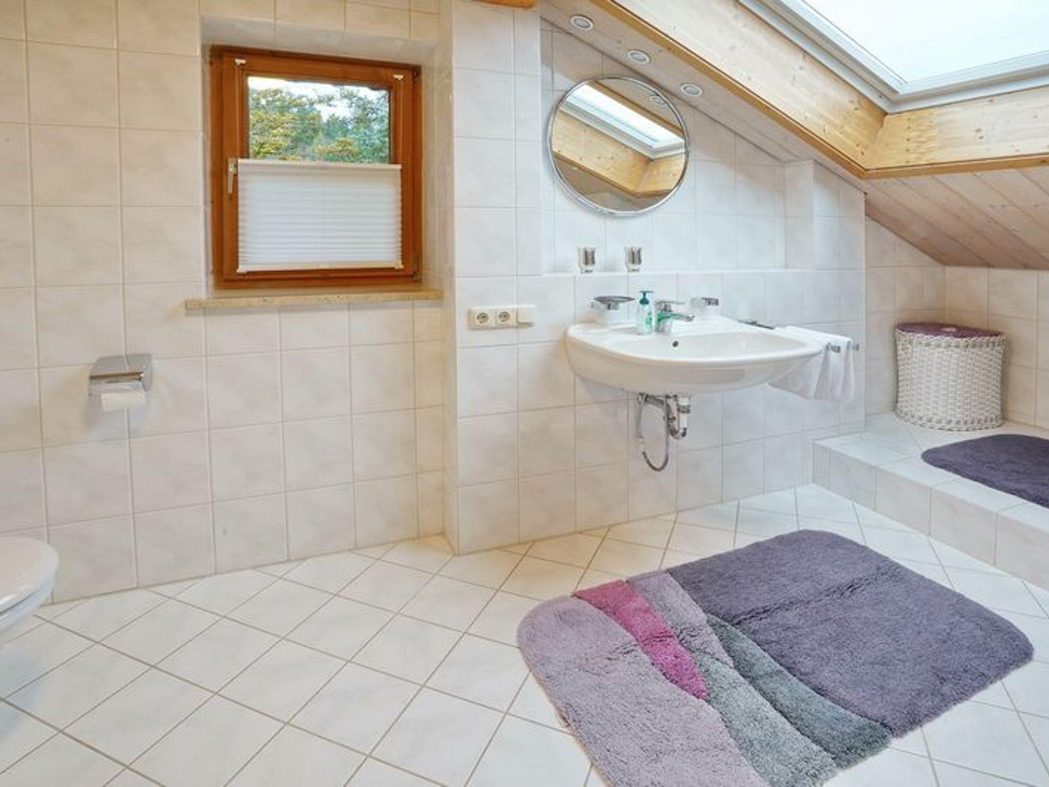 Im Dachgeschoss befinden sich ebenfalls zwei Schlafzimmer mit Doppelbetten, wobei eines der Zimmer zusätzlich über eine gemütliche Sitzecke verfügt. Des weiteren gibt es ein großes Badezimmer mit Badewanne. Diese Etage kann nur bei einer Buchung ab 5 Personen genutzt werden.