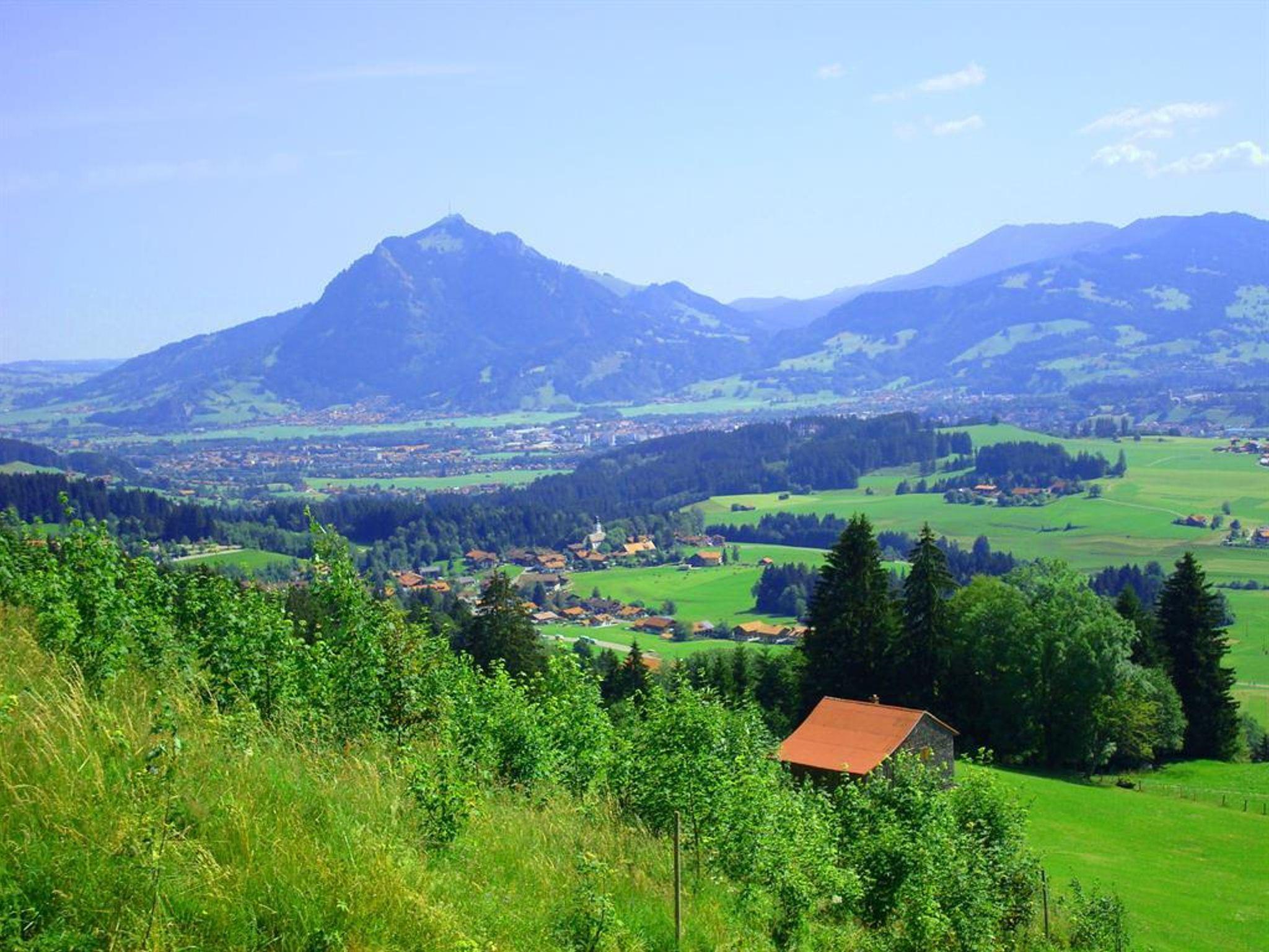 Sehr schöne komfortable Südwohnung im Landhaus Edelweiß mit Panoramaaussicht in die Allgäuer Alpen für 2-5 Personen. Schlafraum, Kinderschlafzimmer, Wohnraum mit seperater und kompletter Küche, Spülmaschine, Backofen, DU/WC, Sat-TV, DVD, Radio,Cass.,CD, freies WiFi und Südterrasse mit anschließendem Garten.