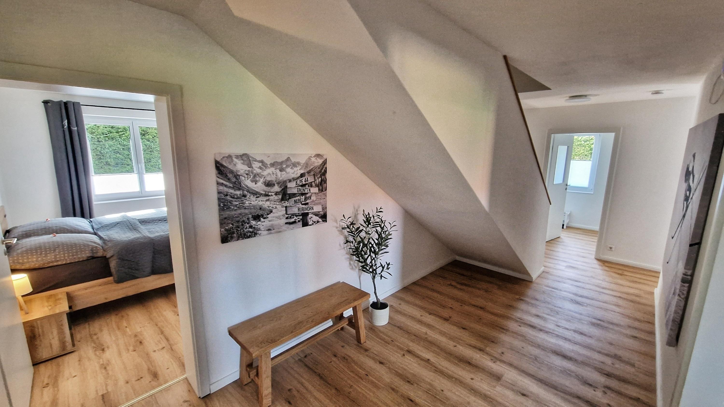 Das Haus verfügt über fünf Parkplätze, die Ihnen und Ihren Mitreisenden bequeme Anreise und Abreise ermöglichen. Für all Ihre Outdoor-Ausrüstung, sei es Skier oder Fahrräder, steht Ihnen eine geräumige Garage zur Verfügung. So können Sie Ihre sportliche Ausrüstung sicher aufbewahren und haben gleichzeitig mehr Platz im Haus. Auf 168 Quadratmetern Wohnfläche bietet die "Alpe 44" ausreichend Raum für alle Gäste. Die vier geschmackvoll eingerichteten Schlafzimmer beherbergen insgesamt acht komfortable Betten, die Ihnen erholsame Nächte garantieren. Egal, ob Sie mit Familie oder Freunden anreisen, es gibt genug Platz für alle. Der großzügige Wohn- und Essbereich ist der perfekte Ort, um gemeinsame Momente zu genießen. Hier können Sie gemütliche Abende vor wunderbarer Bergkulisse verbringen, Ihre Lieblingsspeisen in der gut ausgestatteten Küche zubereiten oder sich zu köstlichen Mahlzeiten im Essbereich niederlassen. Für die jüngsten Gäste gibt es ein separates Spielzimmer, in dem sie sich austoben können. Die Ankleide bietet zusätzlich Platz für Ihre Kleidung und Gepäck. Das Haus verfügt über zwei Badezimmer mit Toiletten, was besonders morgens und abends einen reibungslosen Ablauf ermöglicht. Eine zusätzliche separate Toilette sorgt für noch mehr Bequemlichkeit.