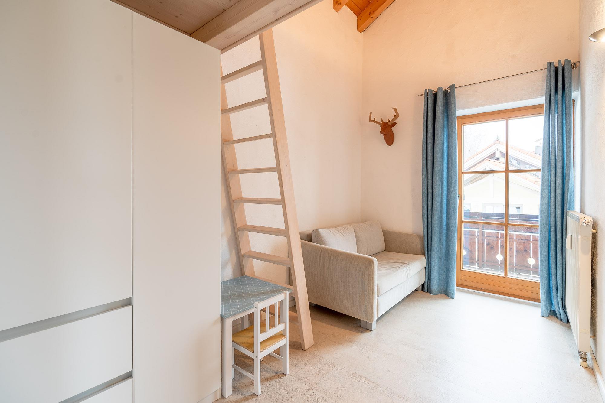 Die offene Küche mit gemütlicher Essecke integriert sich wunderbar in den Raum und lädt zum gemeinsamen Essen und genießen ein. Das 1. Schlafzimmer bietet Ihnen ein bequemes Doppelbett und einen geräumigen Kleiderschrank, das 2. Schlafzimmer dient wunderbar als Kinderzimmer und ist mit einem Hochbett mit Rausfallnetz, einem Schlafsofa, einem Kindertisch mit Stuhl sowie einem Kleiderschrank ausgestattet. Diese Zimmer sind mit einem weiteren Balkon miteinander verbunden.