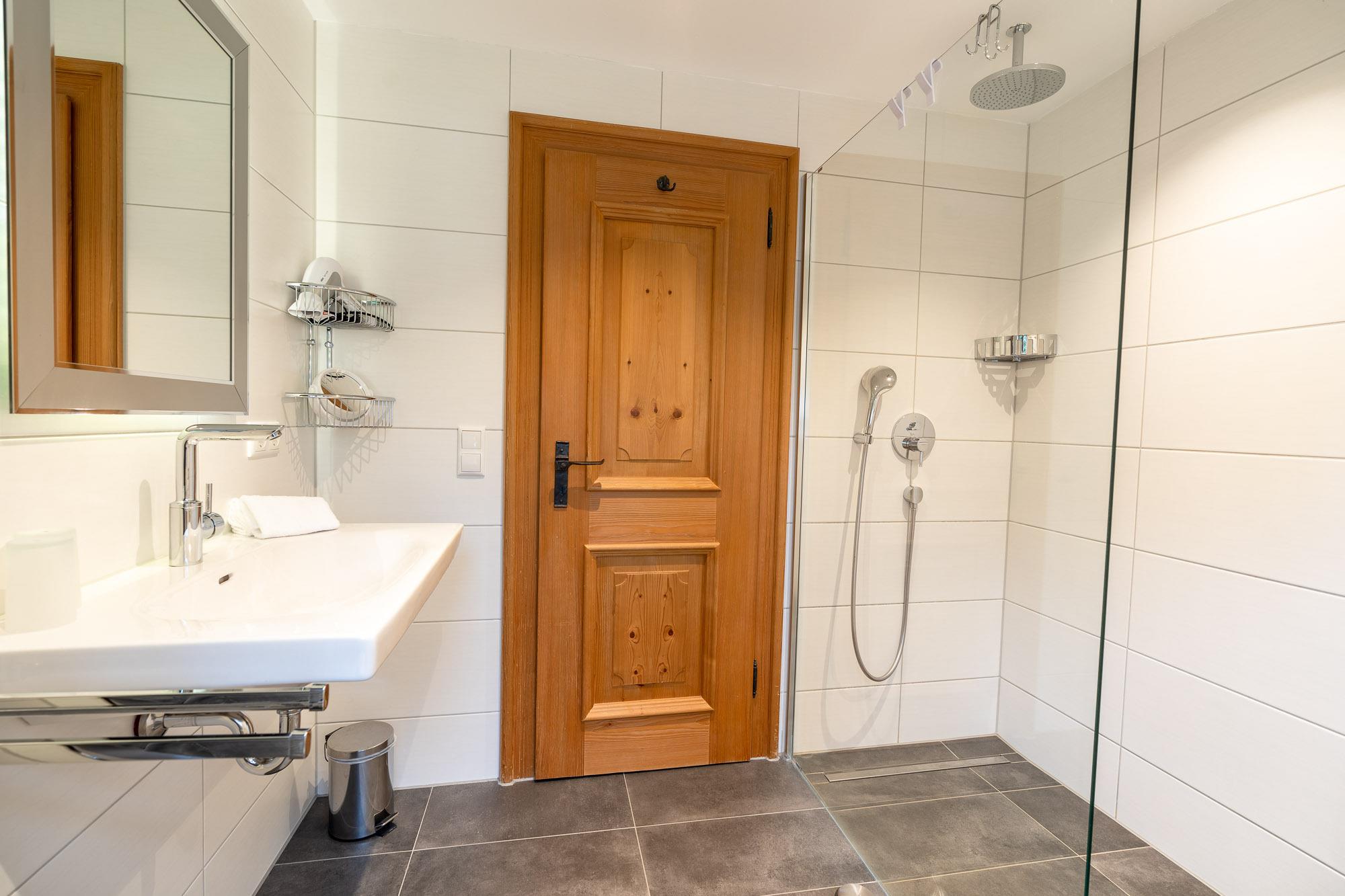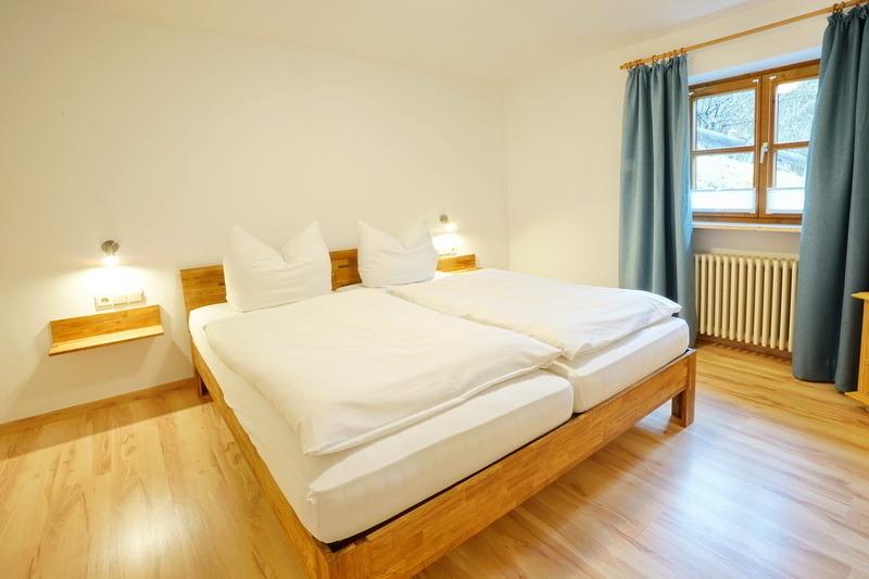 Im Dachgeschoss befinden sich ebenfalls zwei Schlafzimmer mit Doppelbetten, wobei eines der Zimmer zusätzlich über eine gemütliche Sitzecke verfügt. Des weiteren gibt es ein großes Badezimmer mit Badewanne. Diese Etage kann nur bei einer Buchung ab 5 Personen genutzt werden.