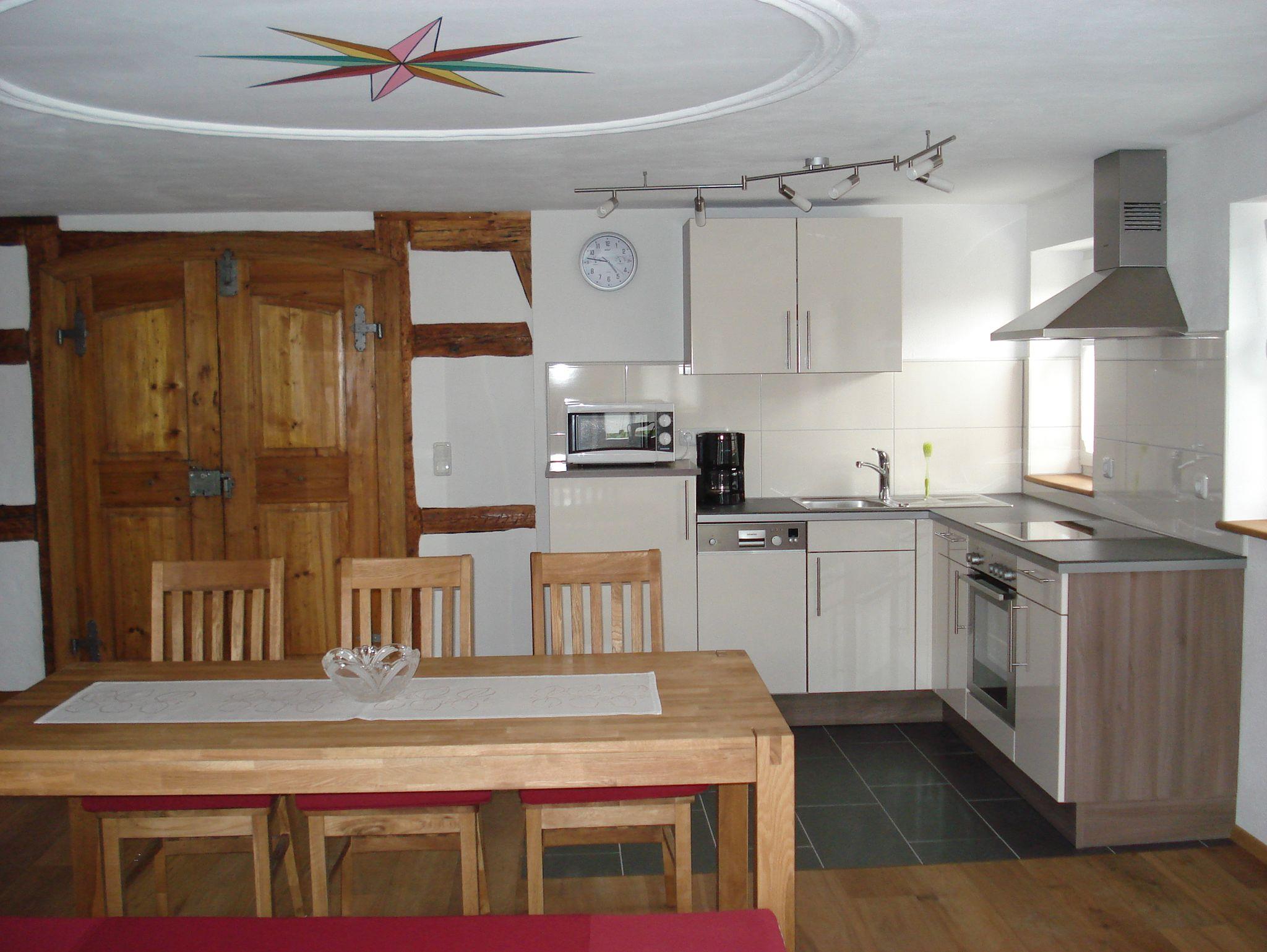 Unsere ca. 72qm große Ferienwohnung Saal wurde zu Zeiten des Gasthofes als Tanzsaal genutzt - daher der Name. Sie verfügt über zwei separate Schlafimmer für je zwei Personen und befindet sich im ersten Stock des Hauses.