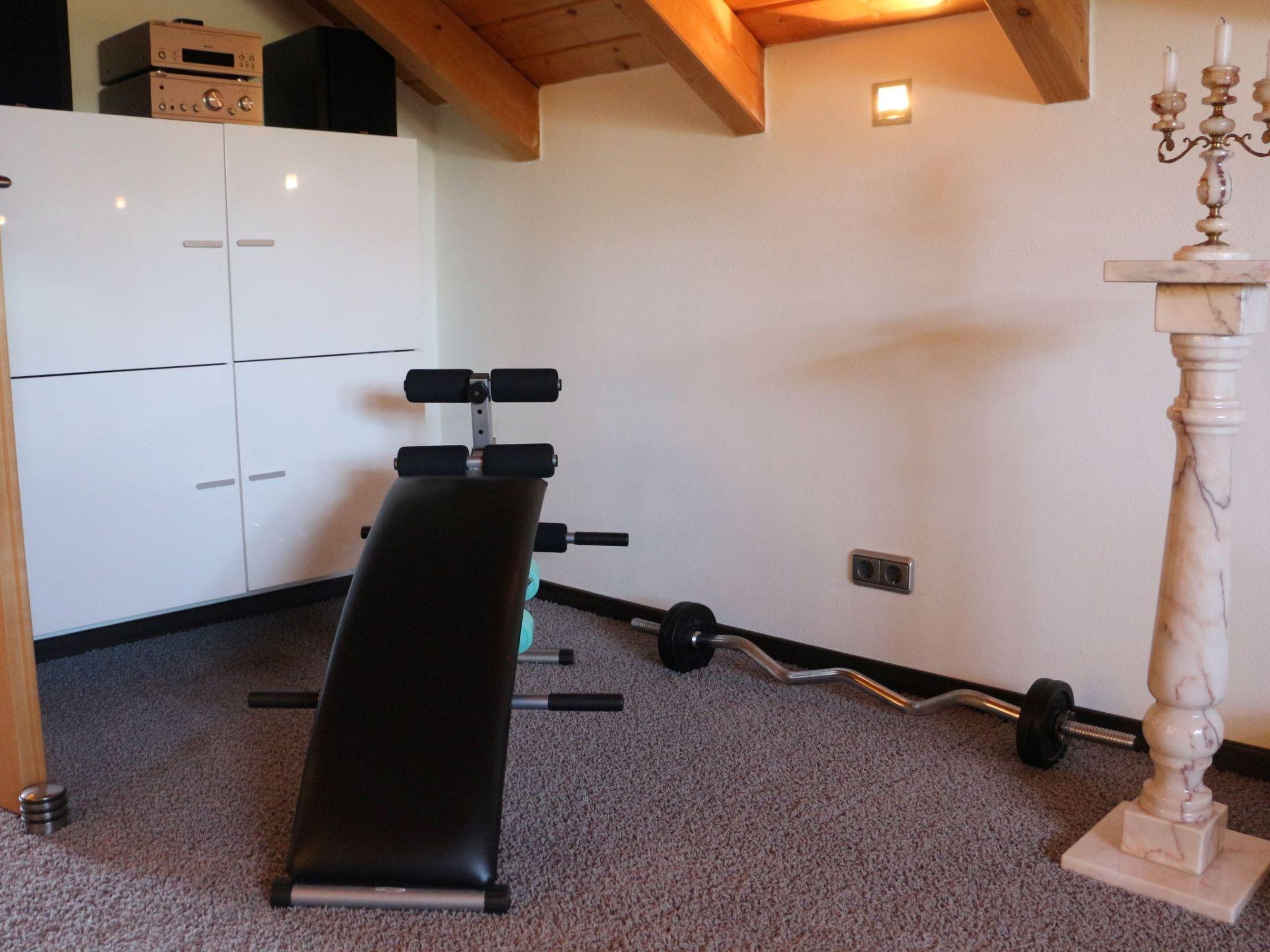 The bedroom offers 30 square metres with a walk-in wardrobe, cable TV, fitness corner and an electrically height-adjustable double bed.