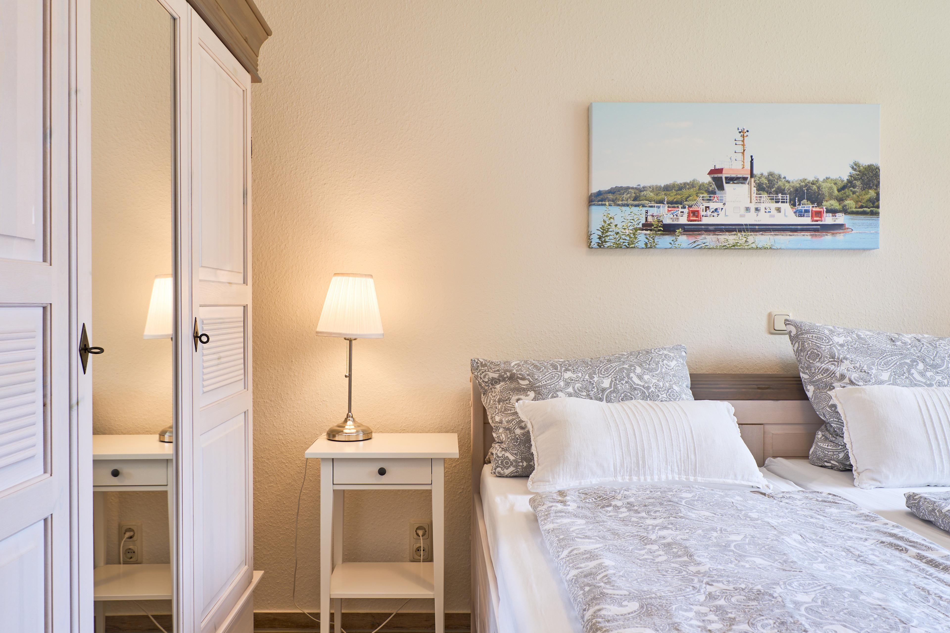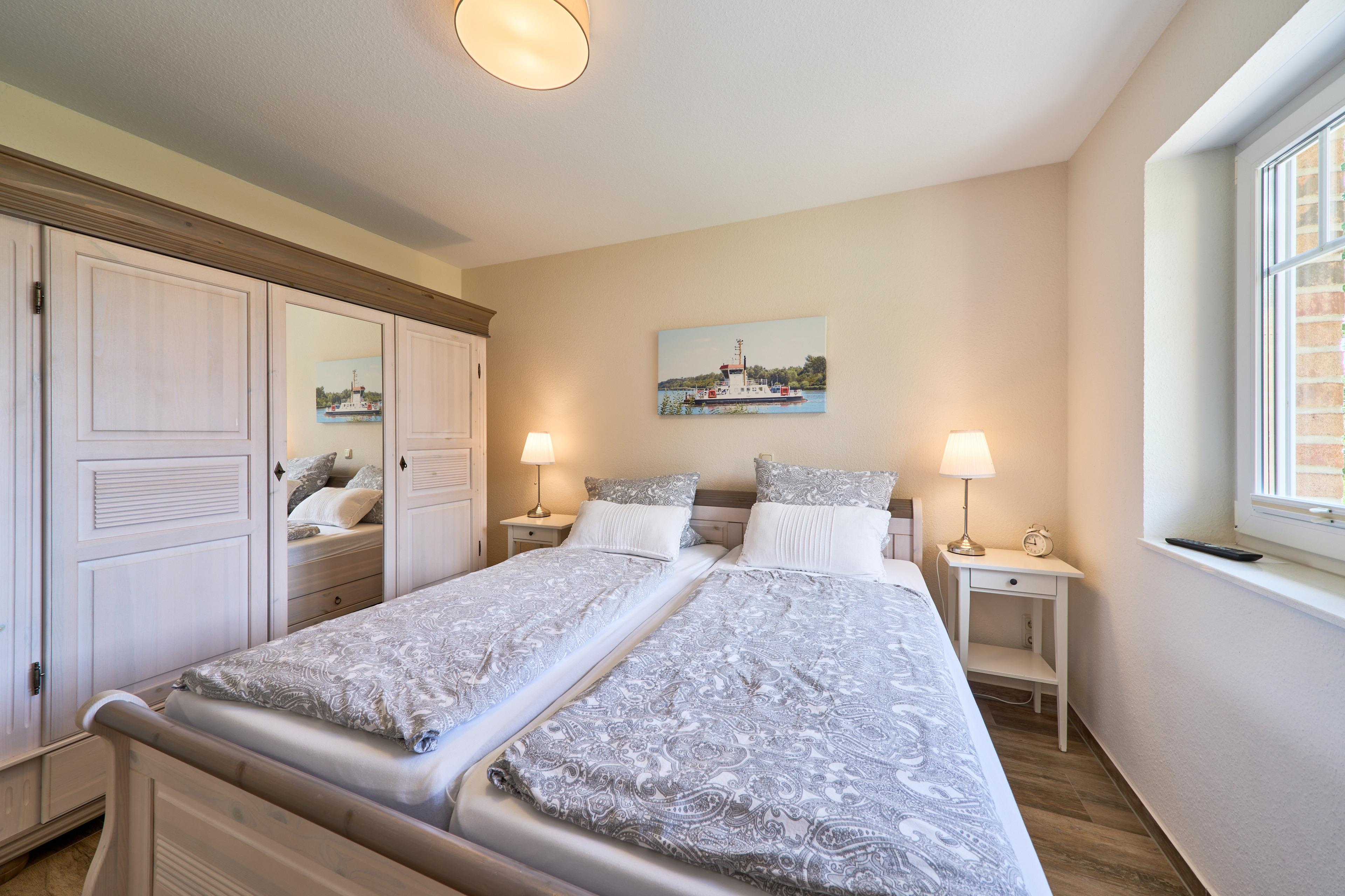 - Die Ferienwohnung befidet sich im ersten Stock, verzaubert mit großem Balkon mit hochwertigen Gartenmöbeln, Weber E- Grill und Sonnenschirm, von dem Sie die Sicht auf den NOK ungestört genießen können. Staunen Sie über die vorbeiziehenden Schiffe oder beobachten Sie das rege Treiben der NOK- Fähre. Zwei geräumige Schlafzimmer laden hier nach einem tollen Urlaubstag zum Träumen ein. Die Schlafzimmer (Doppelbett 180x200) mit TV haben zusätzlich zu den Plissees elektrische Rollläden, damit Sie auch im Sommer nicht auf einen erholsamen Schlaf verzichten müssen. Der Wohn- und Essbereich bietet mit seinen bodentiefen Fenstern einen herrlichen Blick auf den NOK, träumen Sie beim Kochen in der hochwertig ausgestatteten Küche von großen Pötten und der weiten Welt oder genießen Sie von der großen Wohnlandschaft das ständige pendeln der Fähre. Die Wohnung ist komplett hochwertig ausgestattet, neben dem 55 Zoll TV mit DVD Player und Sonoro Sound System finden Sie eine feine Auswahl an Lektüren und Spielen. Unsere kleinen Gäste liegen uns sehr am Herzen, für sie stellen wir Ihnen gerne unsere Kleinkindausstattung zur Verfügung.