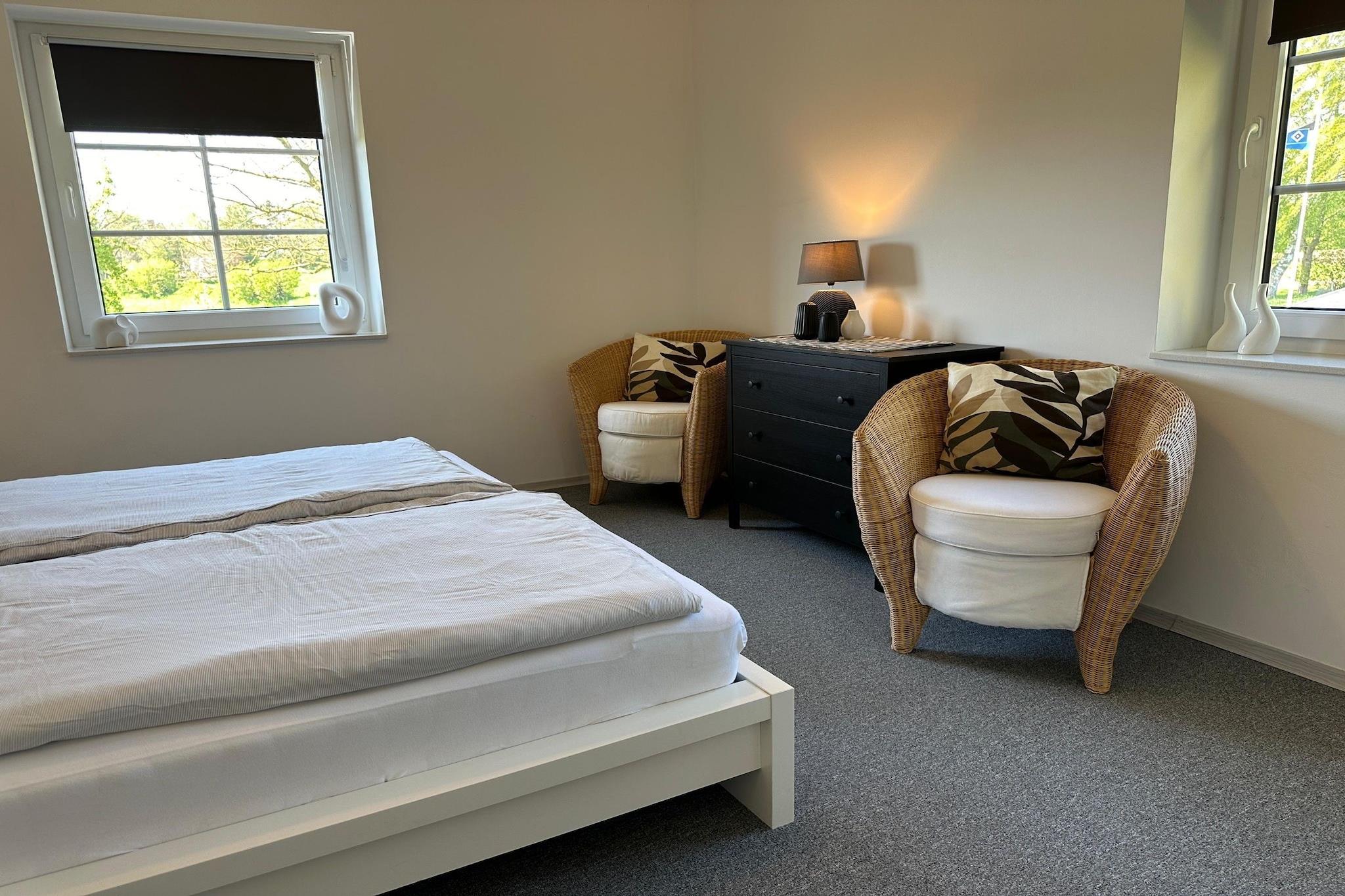 Kun 3 km fra havet og sandstranden tilbyder dette generøst store pensionat to fuldt udstyrede etager, der er ideelle til store familier eller grupper. Stueetagen byder på en hyggelig stue med fladskærms-tv, spisebord, radio og selskabsspil samt et separat køkken med keramisk kogeplade, ovn, mikroovn, opvaskemaskine og køleskab med fryser. To soveværelser - et med en king-size seng og et med to enkeltsenge - deler et moderne badeværelse med bruser og hårtørrer. Ovenpå kan gæsterne nyde et andet åbent køkken og en stor stue/spisestue med plads til ti, stereoanlæg og adgang til balkonen. Sovearrangementer omfatter et king-size soveværelse, et dobbeltværelse og et køjeværelse til børn. Et andet badeværelse sikrer komfort og privatliv, mens centralvarme holder tingene hyggelige året rundt. Udendørs kan du slappe af på terrassen eller i haven med liggestole, grill og liggestole. Ekstraudstyr som betalt cykeludlejning, vaskemaskine, barneseng, barneseng og høj stol gør den perfekt til længerevarende ophold. Med restauranter kun 1 km væk og forsyninger inden for 3 km, blander dette fredelige oase landlig charme med kystnære bekvemmeligheder.