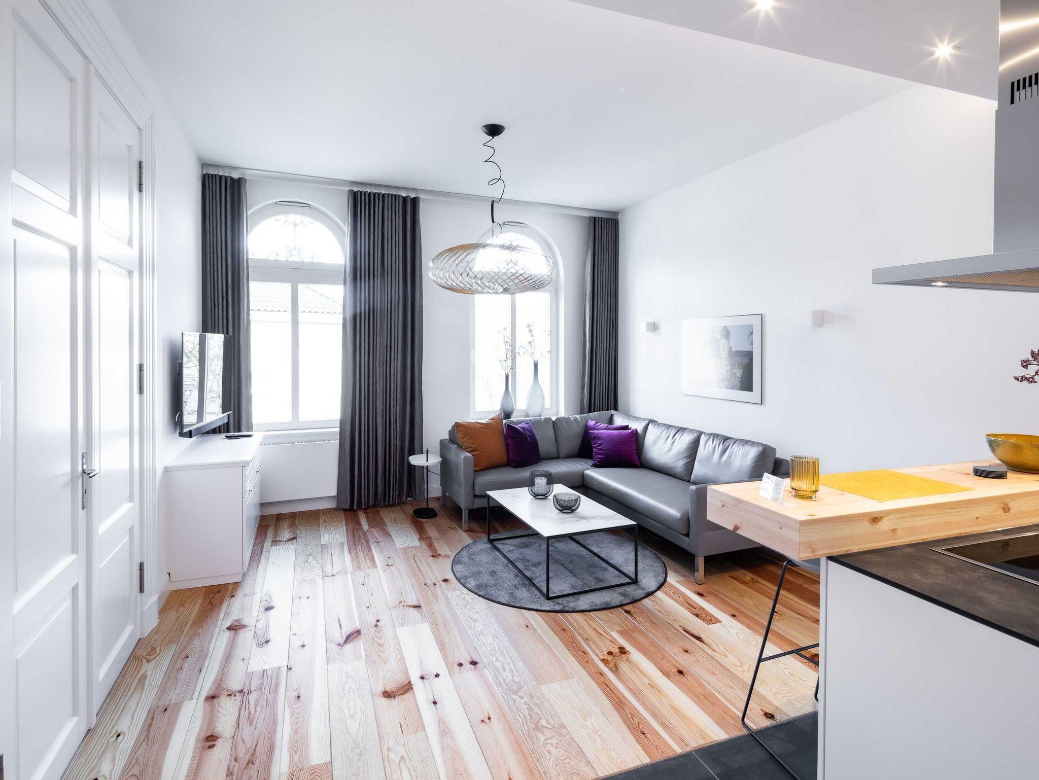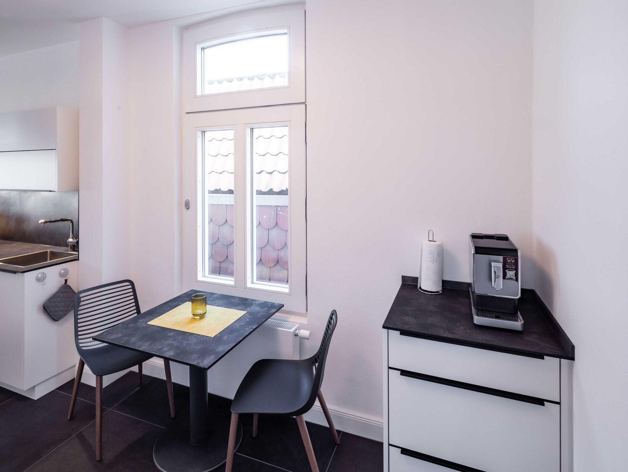 Das stilvoll eingerichtete Apartment 4 Wohnen am Schloss liegt im 2. OG des Objektes mit Stadtblick. Die Wohnung ist über die Treppe und einen Aufzug erreichbar. Sie verfügt über ein Schlafzimmer, ein Badezimmer und eine offene Küche mit Wohnzimmerbereich. Das Einzelbett kann im Wohnzimmer aufgestellt werden.