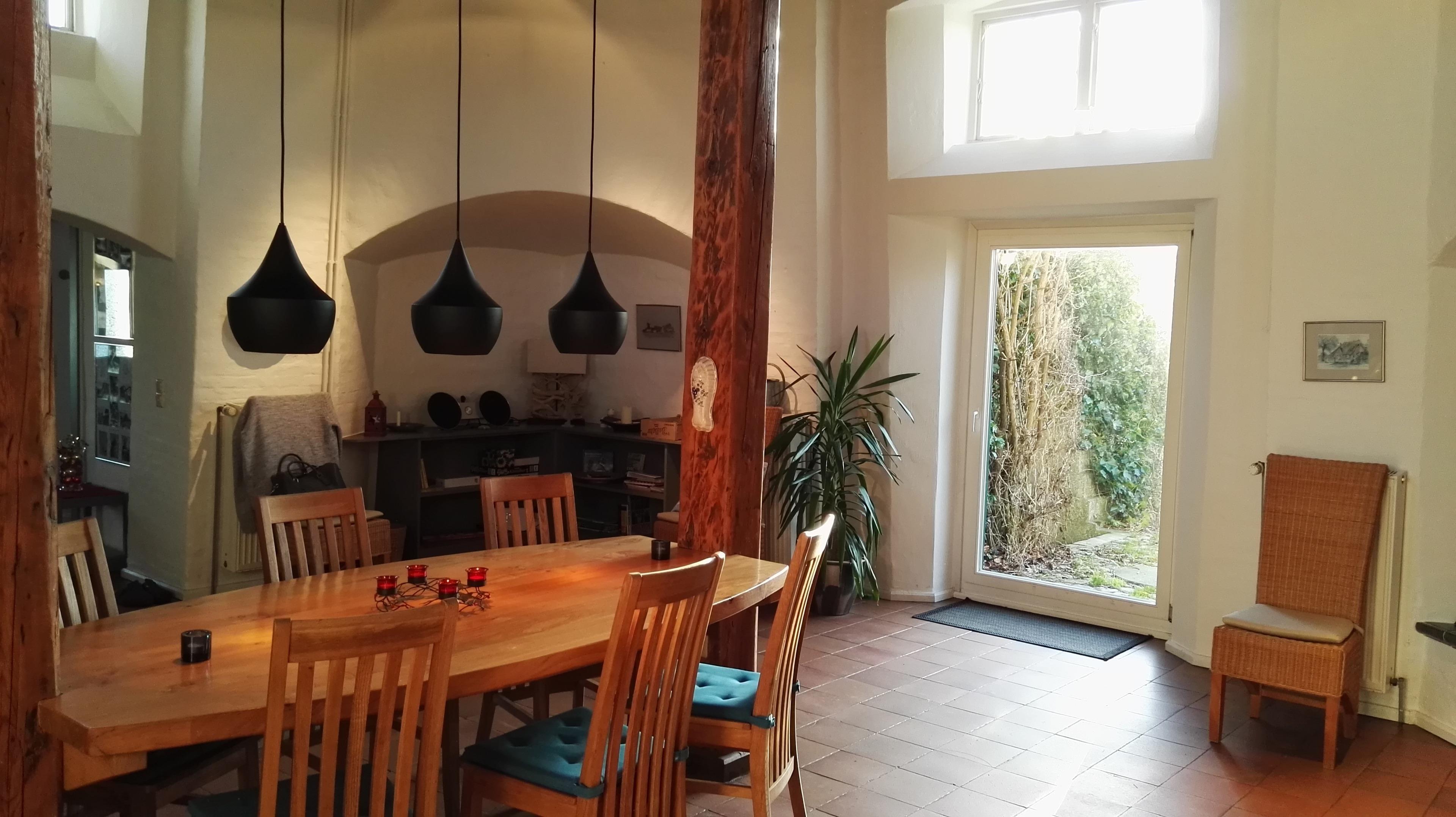 Oberhalb der Wohnküche erwartet Sie ein Wohngenuss der besonderen Art: Mächtige Holzbalken geben dem großen Raum Behaglichkeit und Stuktur. Fenster in allen Himmelsrichtungen lassen ihn zu jeder Tageszeit in einem anderen Licht erscheinen.
