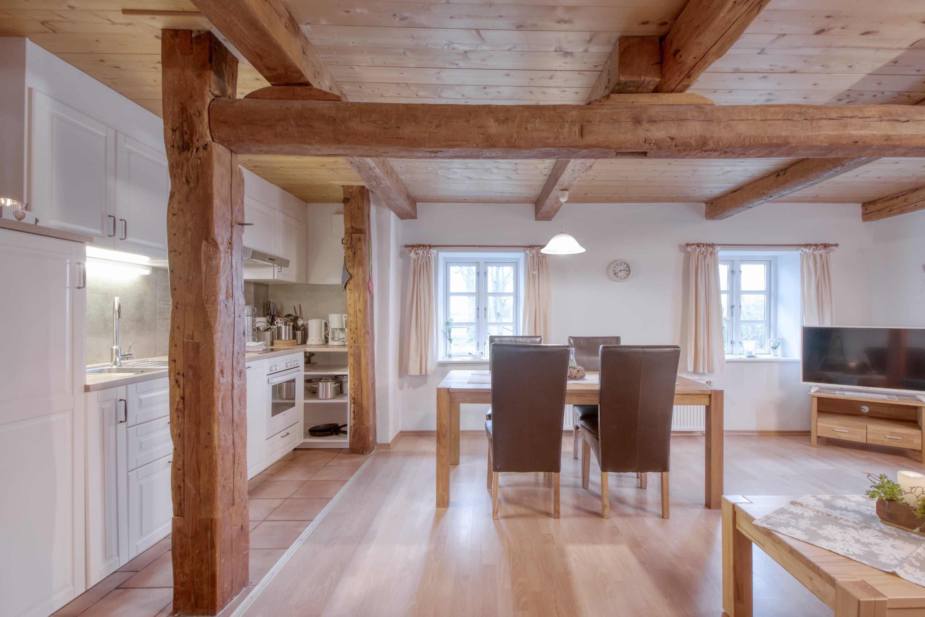 Wohnbereich mit offener Küche, in dem man gemeinsam kocht, lacht und den Tag ausklingen lässt.