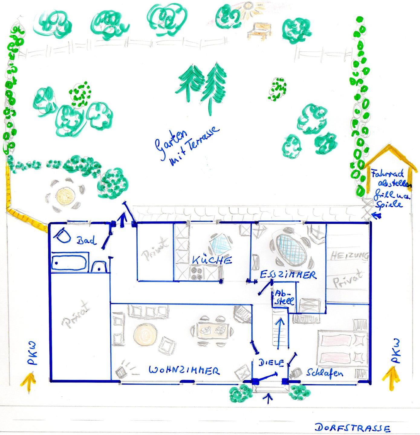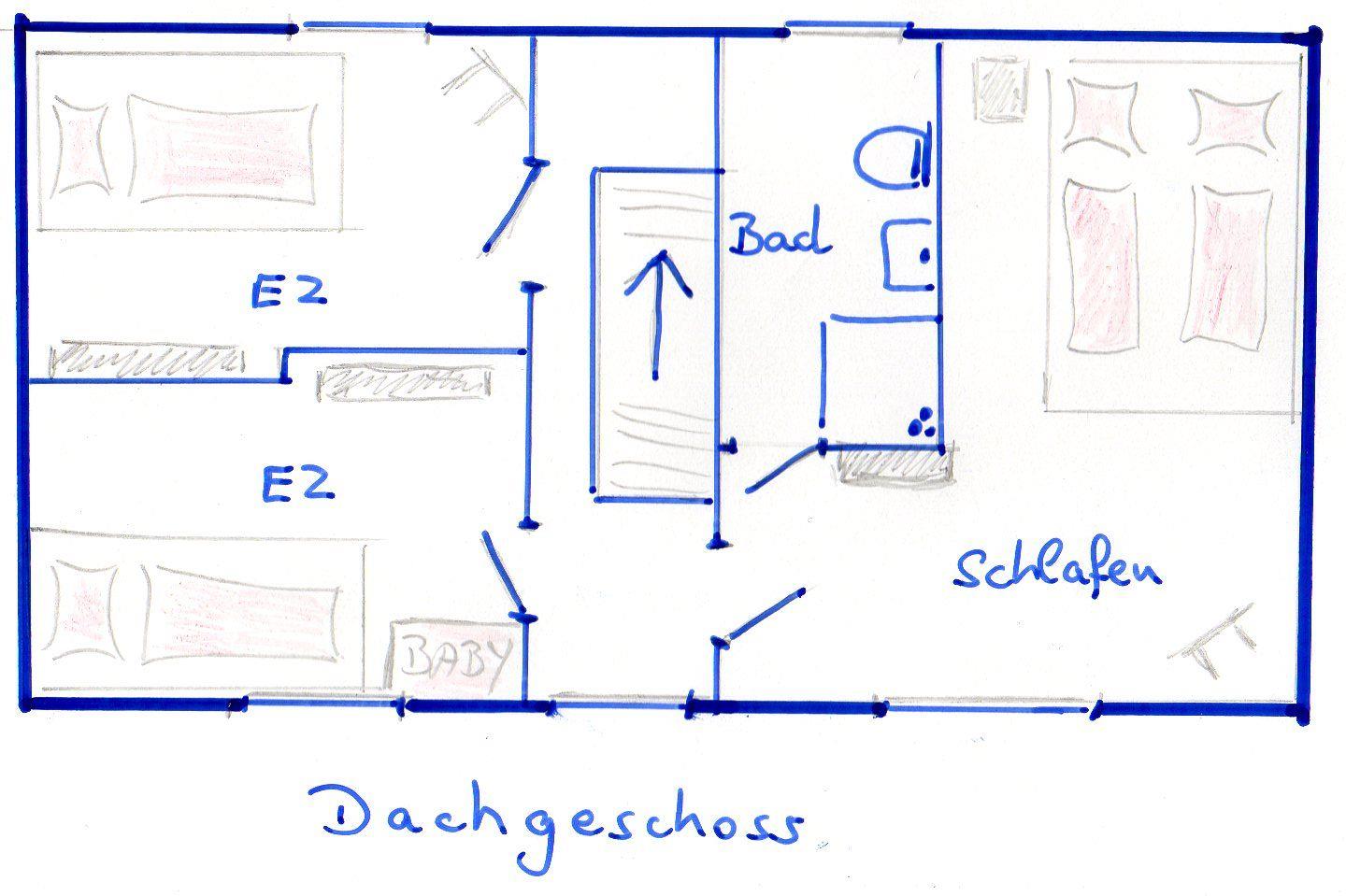 Das Haus erstreckt sich über zwei Etagen und ist besonders familienfreundlich gestaltet. In insgesamt vier Schlafzimmern ( 1 x Doppelbett, 1 x franz. Bett 140 cm, 2 x Einzelbett) finden Sie erholsamen Schlaf, während zwei Badezimmer – eines mit Dusche mit Duschtasse, das andere mit Badewanne – für zusätzlichen Komfort sorgen.