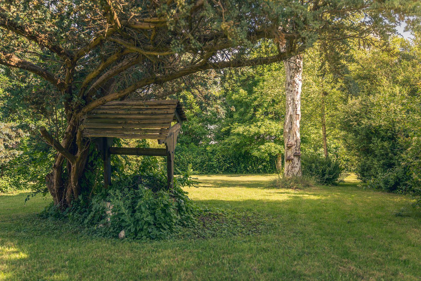 Der Außenbereich des Hauses ist ein wahres Paradies für Naturliebhaber. Auf der Terrasse können Sie die frische Landluft genießen, während der Garten mit Sonnenliegen, Gartenmöbeln und einem Grillplatz zu entspannten Stunden im Freien einlädt. Ein Gartenschuppen bietet zudem Stauraum für Ihre Fahrräder oder Strandutensilien. Der weitläufige Garten mit Liegewiese ist ideal zum Spielen für Kinder und verspricht entspannte Sonnenstunden.
