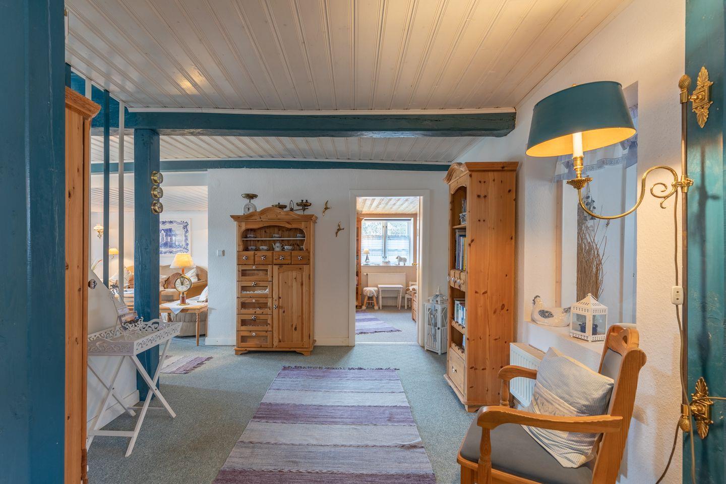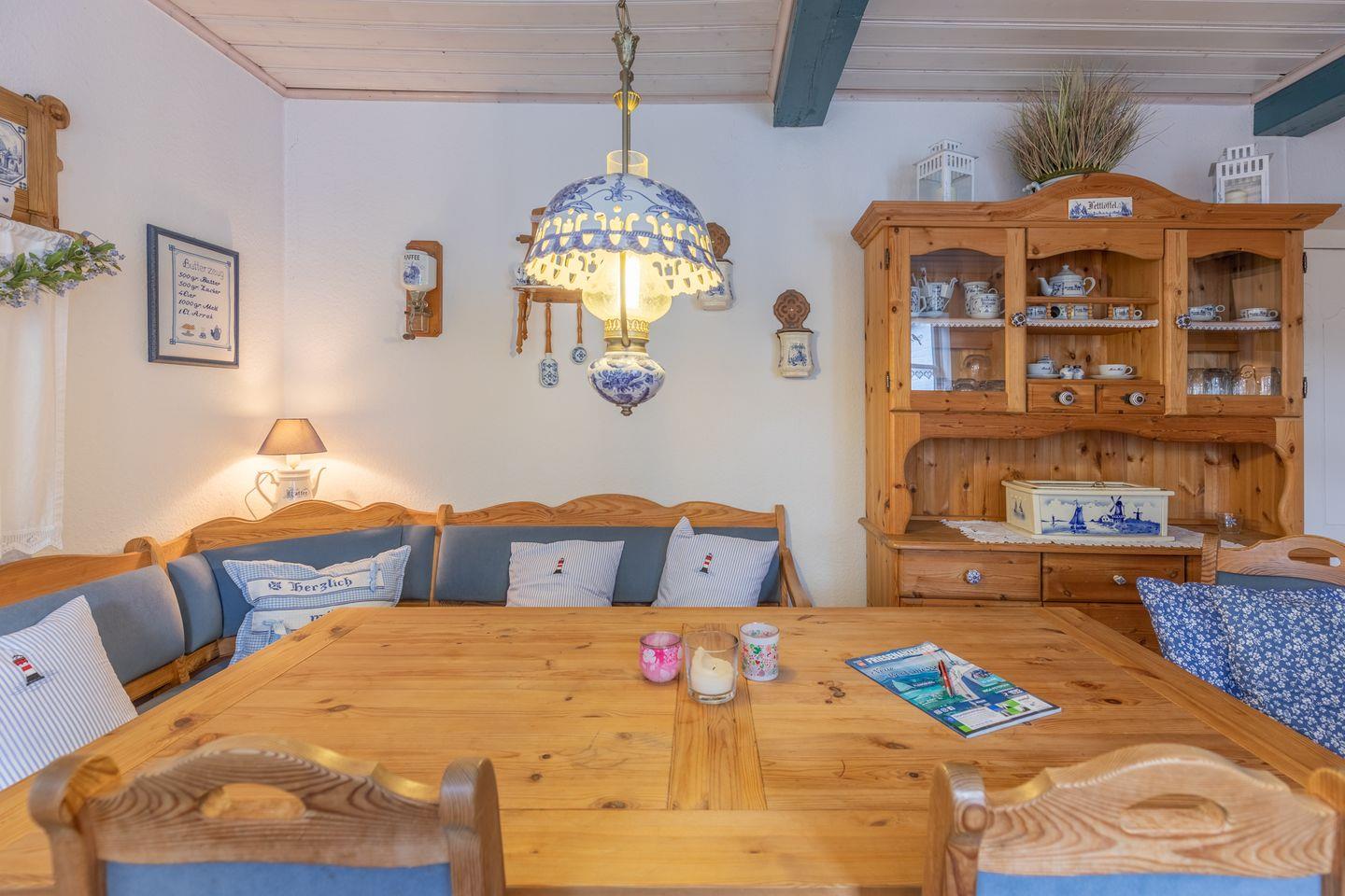 Das ca. 140 qm große Ferienhaus ist liebevoll mit dem Charme eines historischen Reetdachhauses eingerichtet.