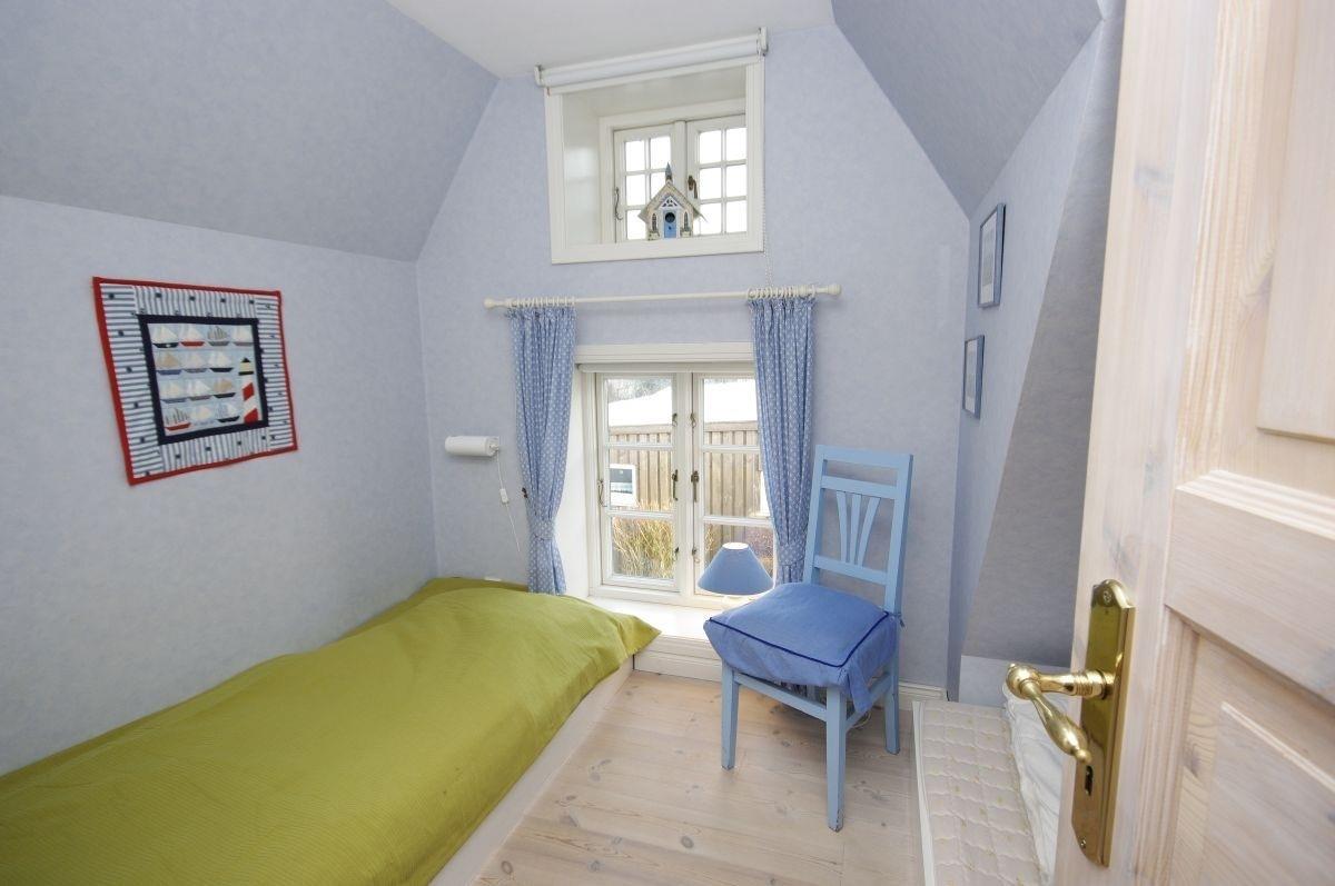 Im oberen Geschoss befinden sich - neben dem hellen Badezimmer mit Dusche und Fenster - zwei gemütliche Schlafzimmer, eines ausgestattet mit einem komfortablen Doppelbett, das andere mit einem bequemen Einzelbett.