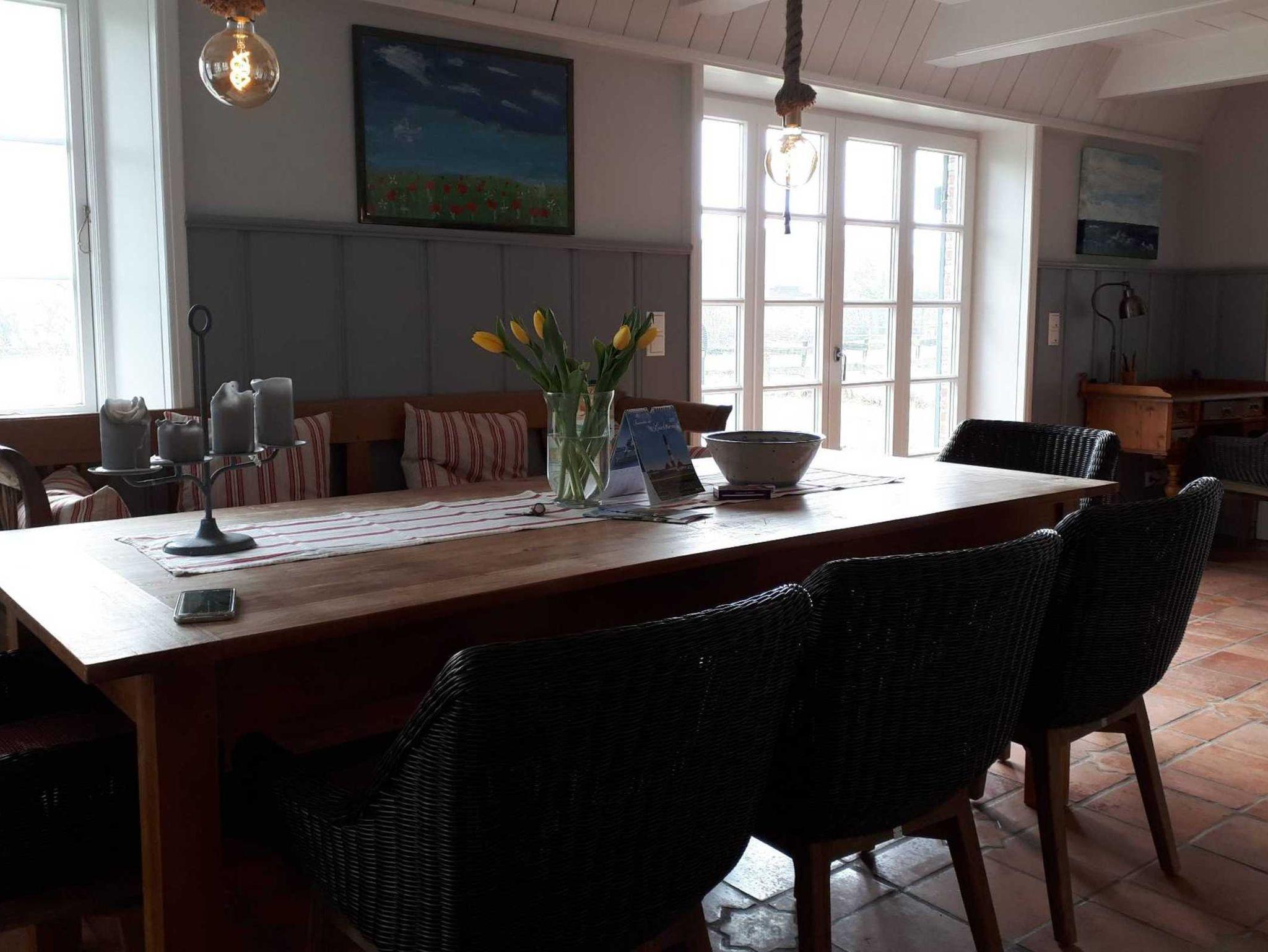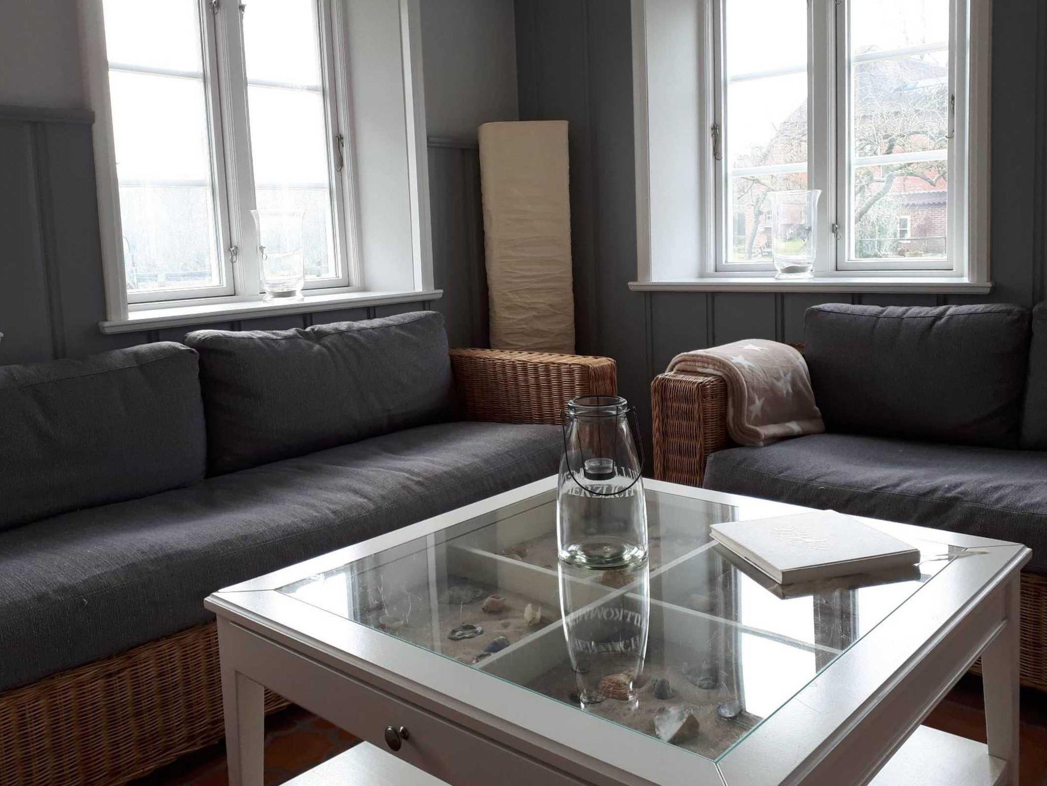 Unser Haus befindet sich in Oldsum, ein ruhiges, z.T. landwirtschaftlichgeprägtes Künstlerdorf mit vielen traditionellen Friesenhäusern.Traditionelle Friesenbauart, Reetdach, Holzdecke, Holzsprossenfenster, Kachelofen. Cottofliesen im Erdgeschoss, heller Eichenboden im ersten Stock.