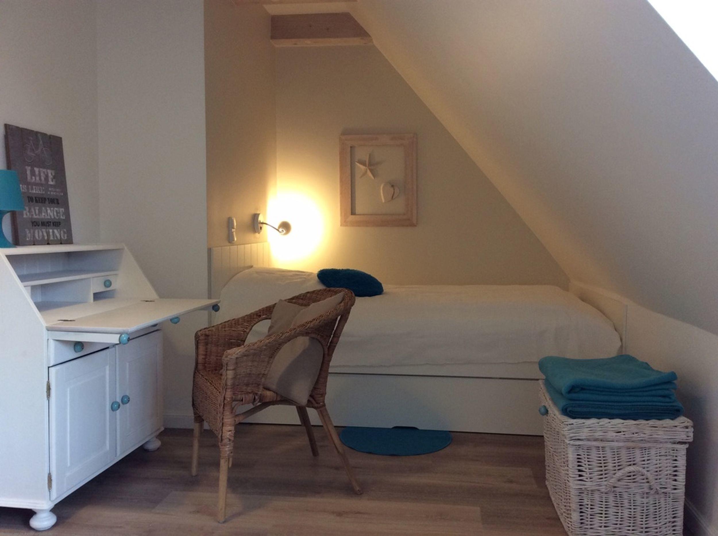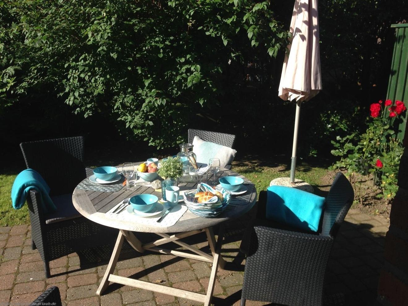 Die windgeschützte Südterrasse ist mit schönen Gartenmöbeln ausgestattet, außerdem stehen den Gästen zwei bequeme Gartenliegen zur Verfügung. Es gibt zwei moderne Duschbäder mit WC, im oberen Bad befindet sich eine Waschmaschine. Die beiden Schlafzimmer sind mit viel Liebe zum Detail eingerichtet, ein Zimmer mit Doppelbett und TV-Gerät, das andere hat zwei gemütliche Einzelbetten , eins davon mit einem zusätzlichen Ausziehbett. Somit ergeben sich 5 reelle Schlafplätze. Zur weiteren Ausstattung gehören Fön, Bügeleisen/Brett Wäscheständer, Hundenäpfe, Reinigungsgeräte inklusive eine Auswahl an Grundreinigungsmitteln, sowie Hochstuhl und Kinderbett bei Bedarf. Parkplätze befinden sich vor dem Haus.