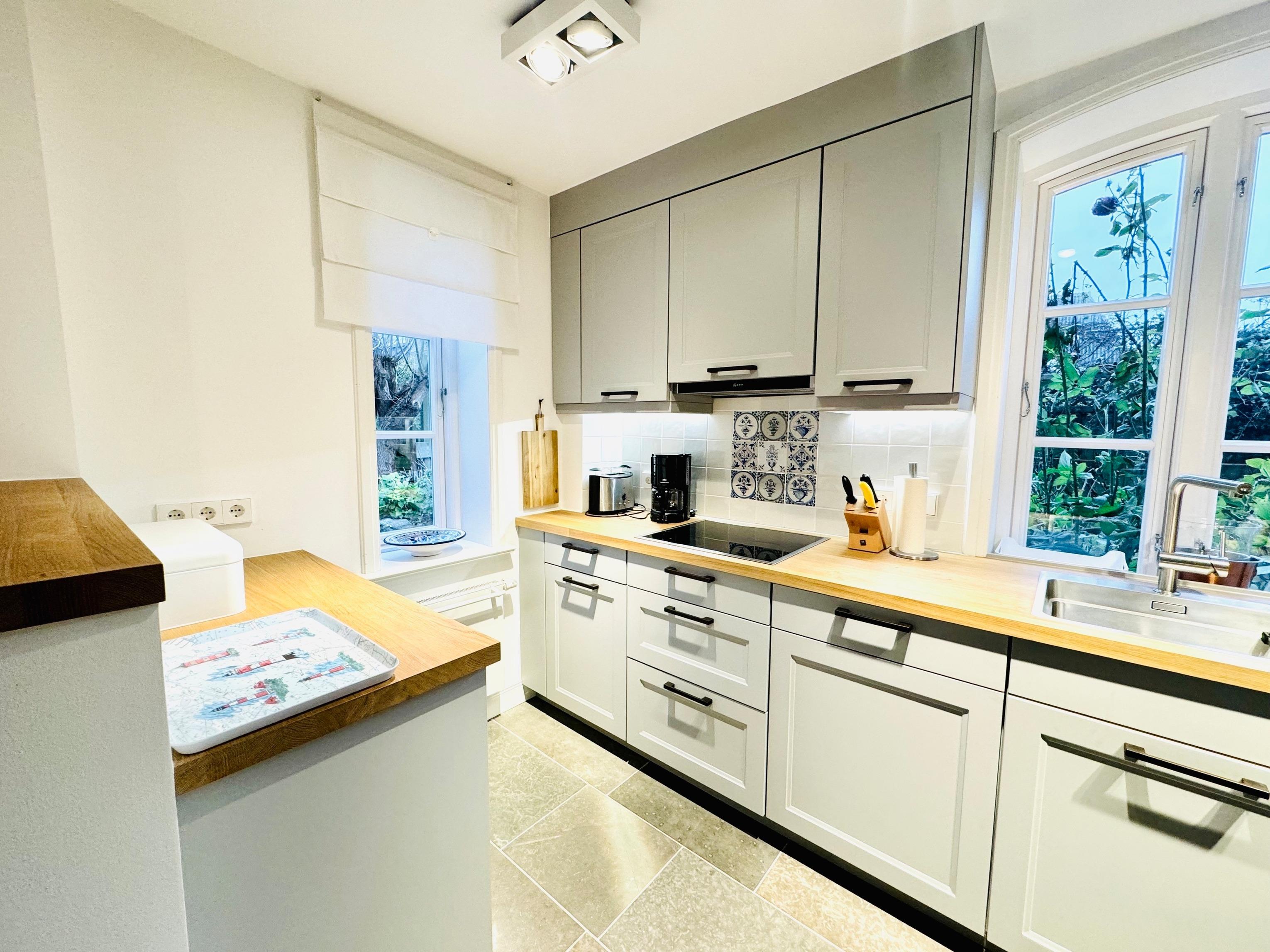 Die modern eingerichtete Wohnküche bietet Kochvergnügen und Essbereich in einem. Zusätzliche Abstellmöglichkeiten und ein Vorratslager schließen sich an. Es steht Ihnen ein kostenfreier W-LAN Anschluss und Festnetztelefon (ins deutsche Festnetz) zur Verfügung.