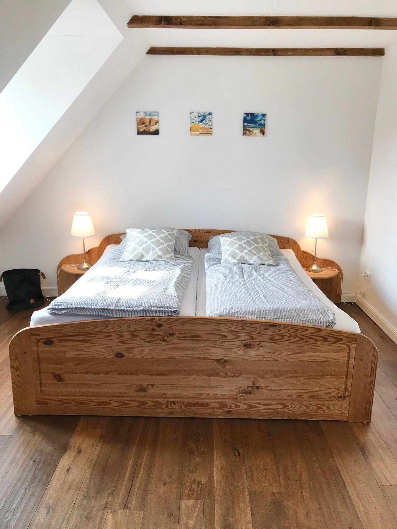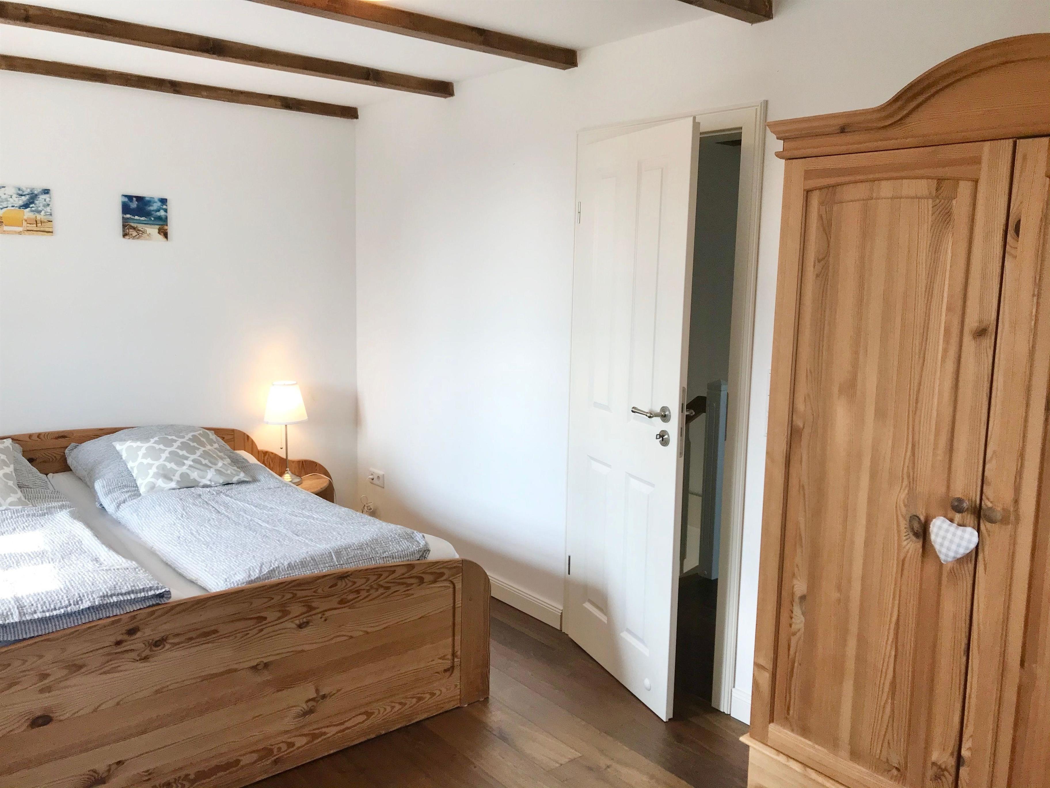 Im Obergeschoss befinden sich zwei Schlafzimmer (1 Schlafzimmer mit Doppelbett und Babybett, 1 Schlafzimmer mit ausziehbarem Bett) und das Badezimmer mit Regendusche.