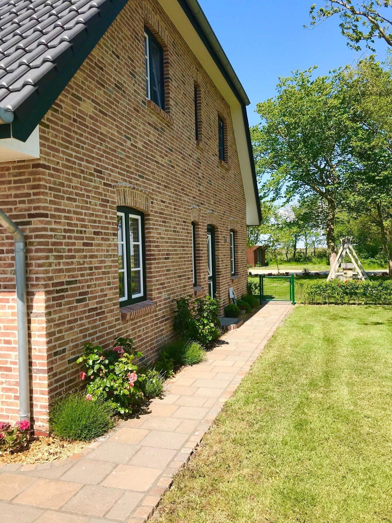 Das Haus wurde 2018/19 auf unserem Hof in der Oldsumer Marsch erbaut. Von der Wohnung aus, blicken Sie auf den Deich und auf die freien Felder.