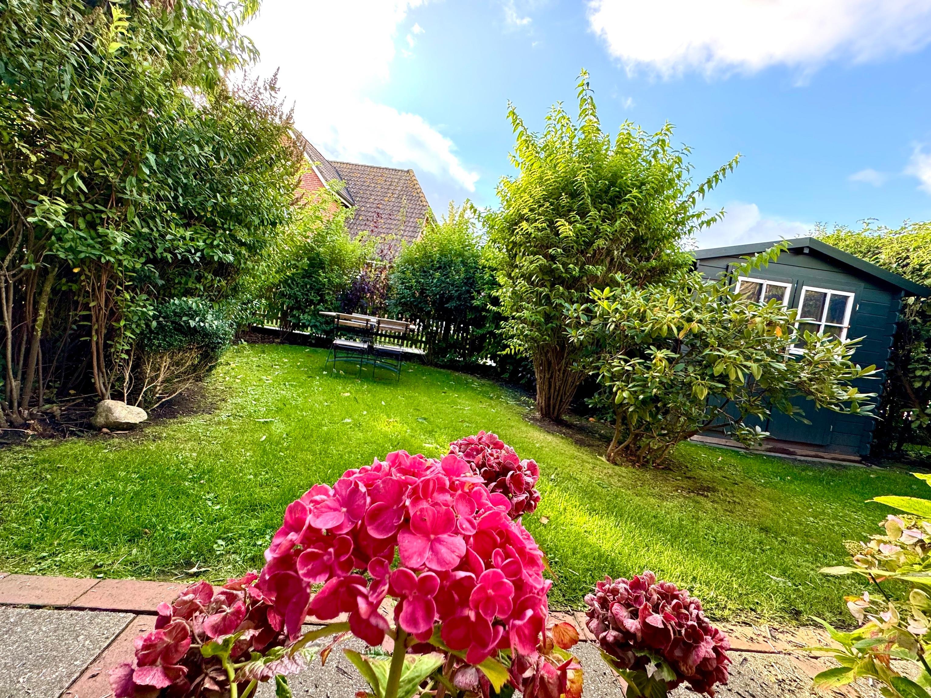 Unser Haus mit seinem schön eingewachsenen Garten liegt zwischen zwei kleinen Stichstraßen. Nebenan ist ein Bauernhof, dahinter liegt direkt die Marsch, welche sich über ca. 1-2 km bis zum Deich hinzieht.