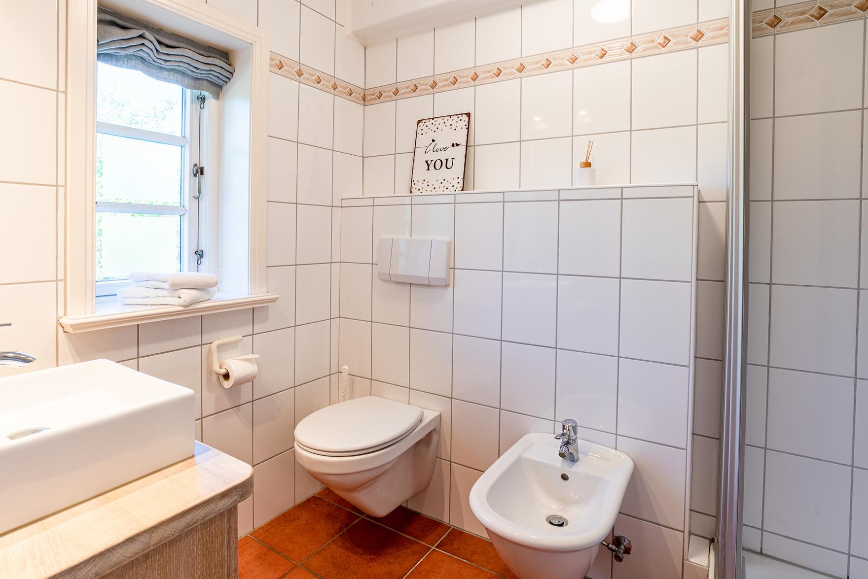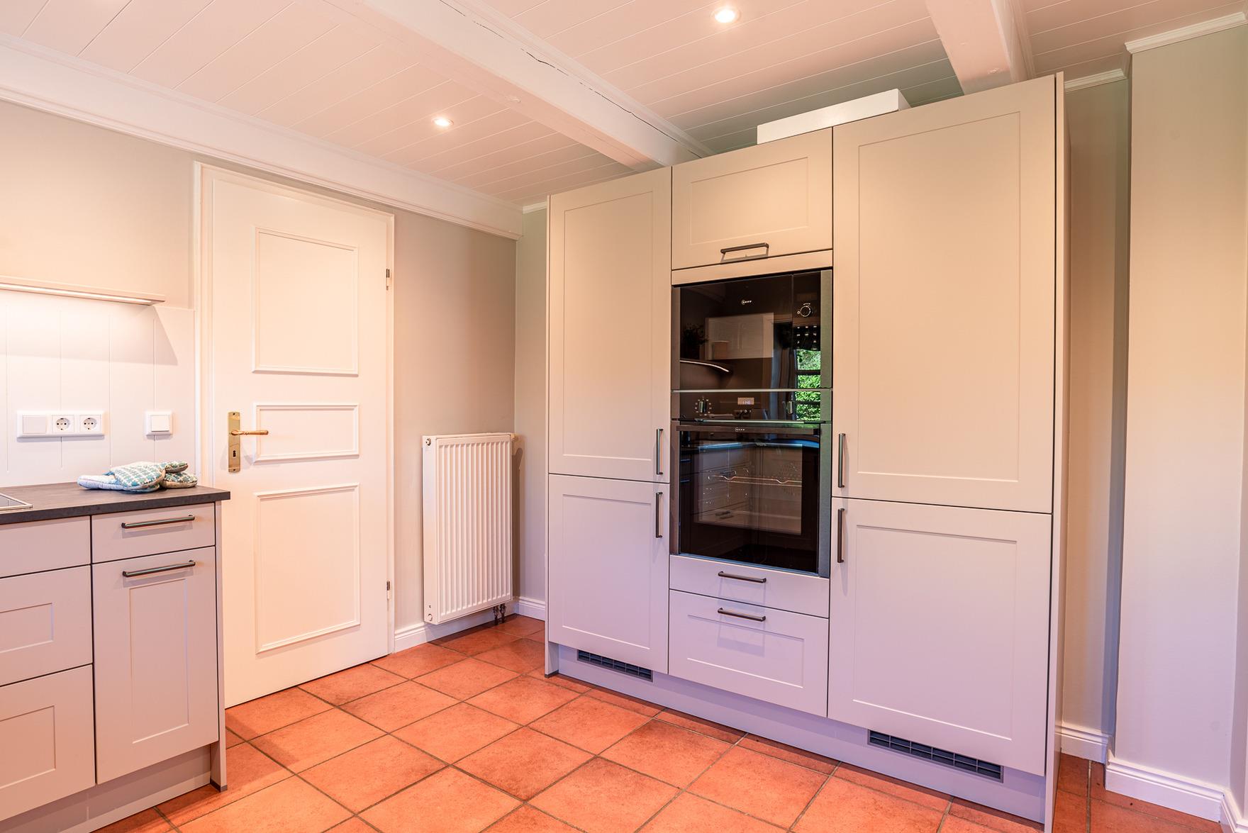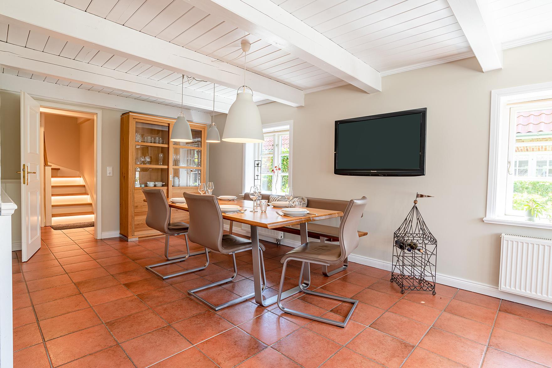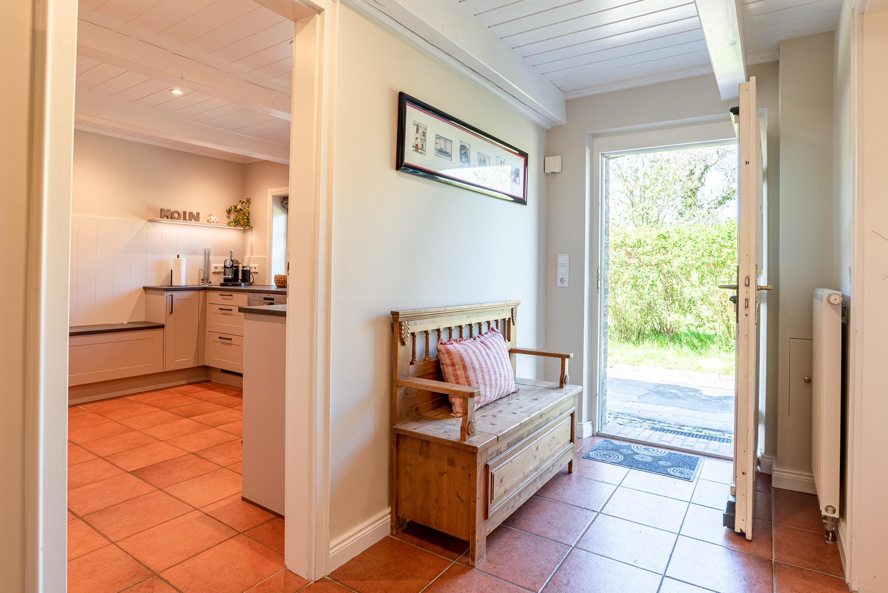 Alle Räume im Erdgeschoss sind mit Bodenfliesen ausgestattet. Diele und Schlafräume