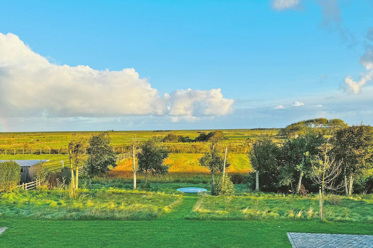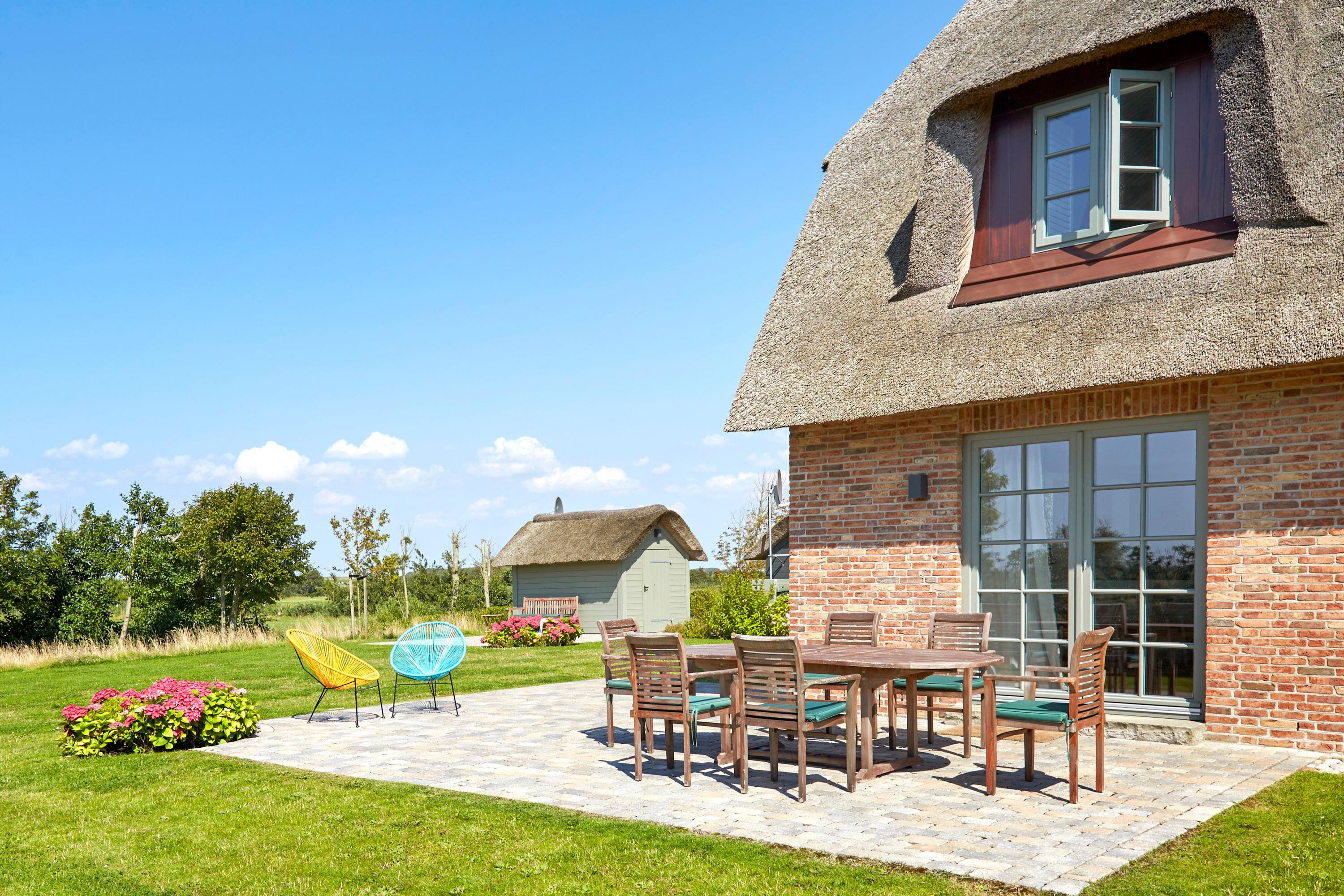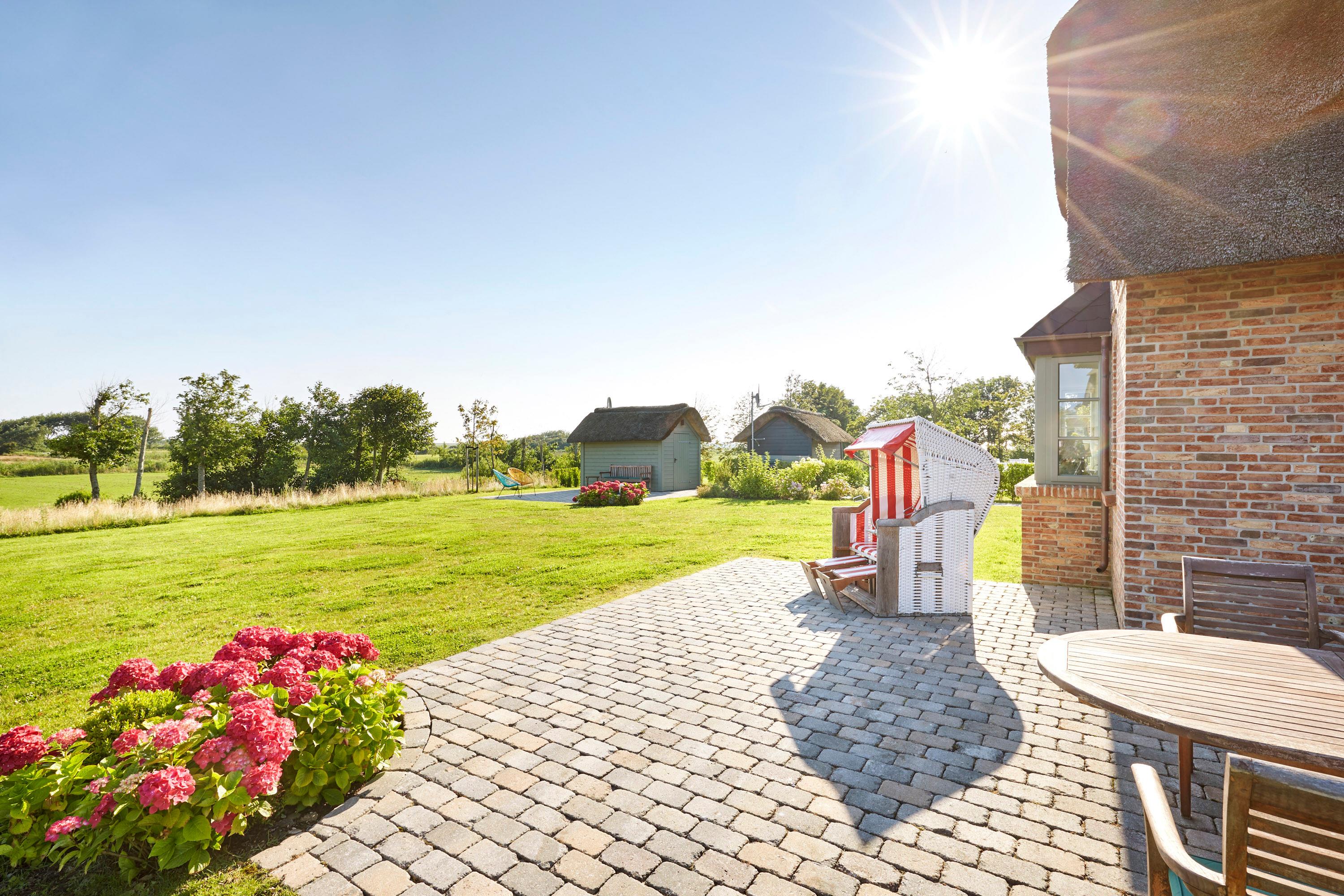 Das am „westlichen Deich“[nbsp] liegende Reetdachdoppelhaus befindet sich am Ortsrand von Oldsum. Dieses beschauliche und wunderschöne Inseldorf ist typisch für Föhr. Mit freiem Blick in die Föhrer Marsch genießen Sie die Natur direkt schon am Morgen beim Aufstehen und von der Terrasse beim Frühstück mit der Familie. Der riesige naturnahe Garten lädt ein zum gemütlichen Lesen oder Träumen ein. Für die Kinder ist draußen wie drinnen ausreichend Platz, um sich zu amüsieren und die Natur zu entdecken.