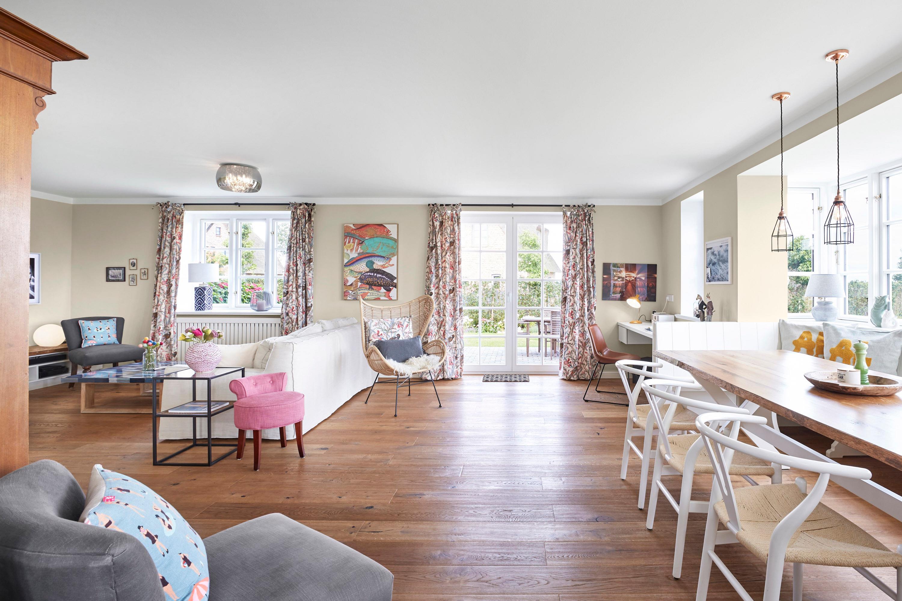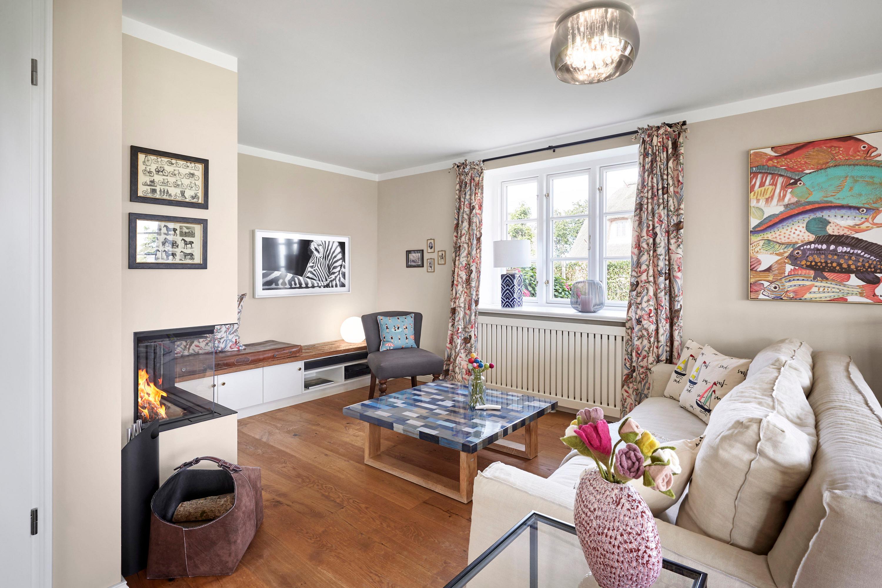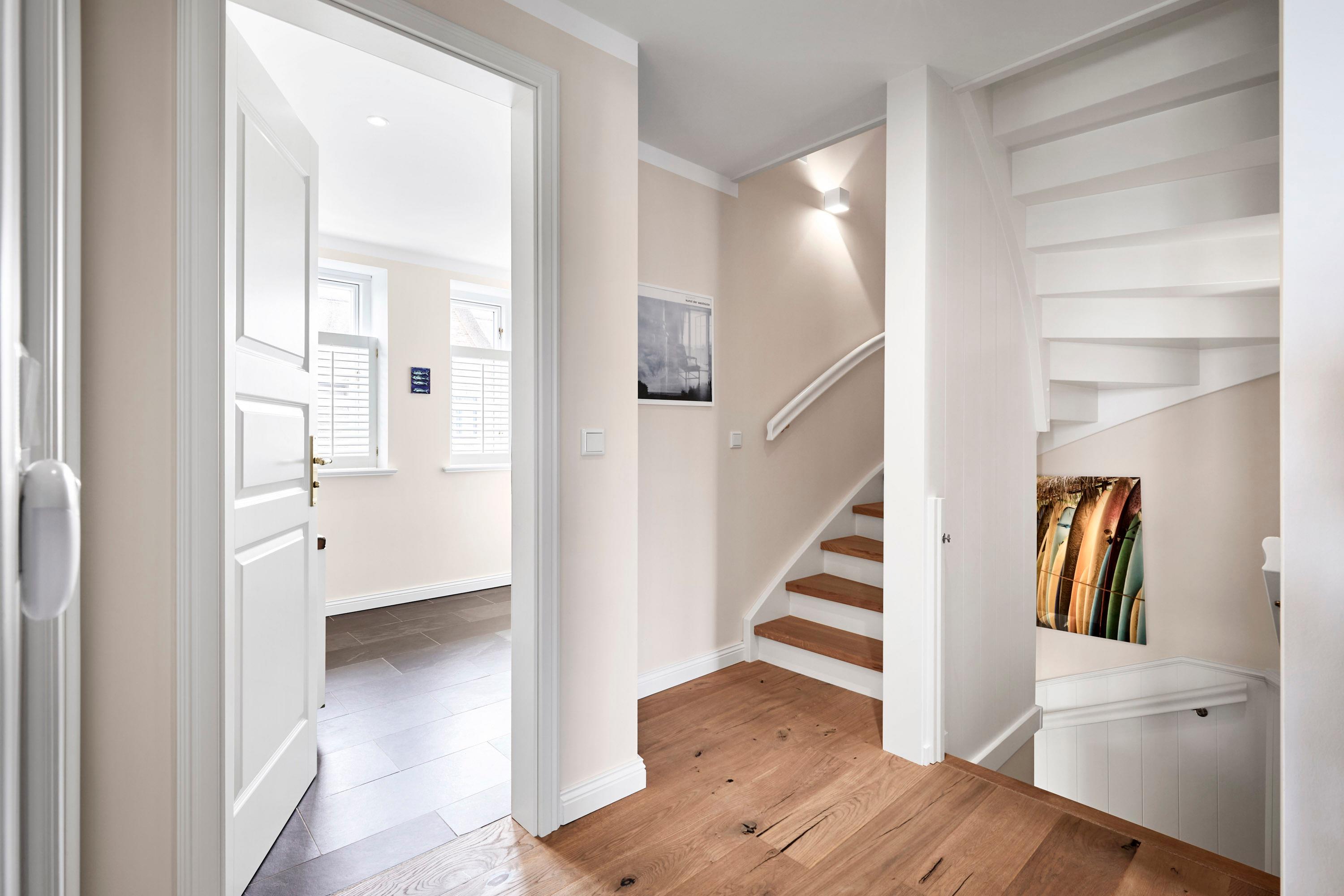 Das Haus bietet Platz für 6 Personen in drei Schlafzimmern. Der Kamin im Wohnzimmer lässt es zu jeder (Jahres-)Zeit gemütlich werden. Die Utlucht mit großem Esstisch und die offene Küche sind perfekt für die große Runde mit Familie und Freunden. Im Dachgeschoss können Sie den Tag in Ruhe bei einem erholsamen Saunagang ausklingen lassen und ungestört relaxen.