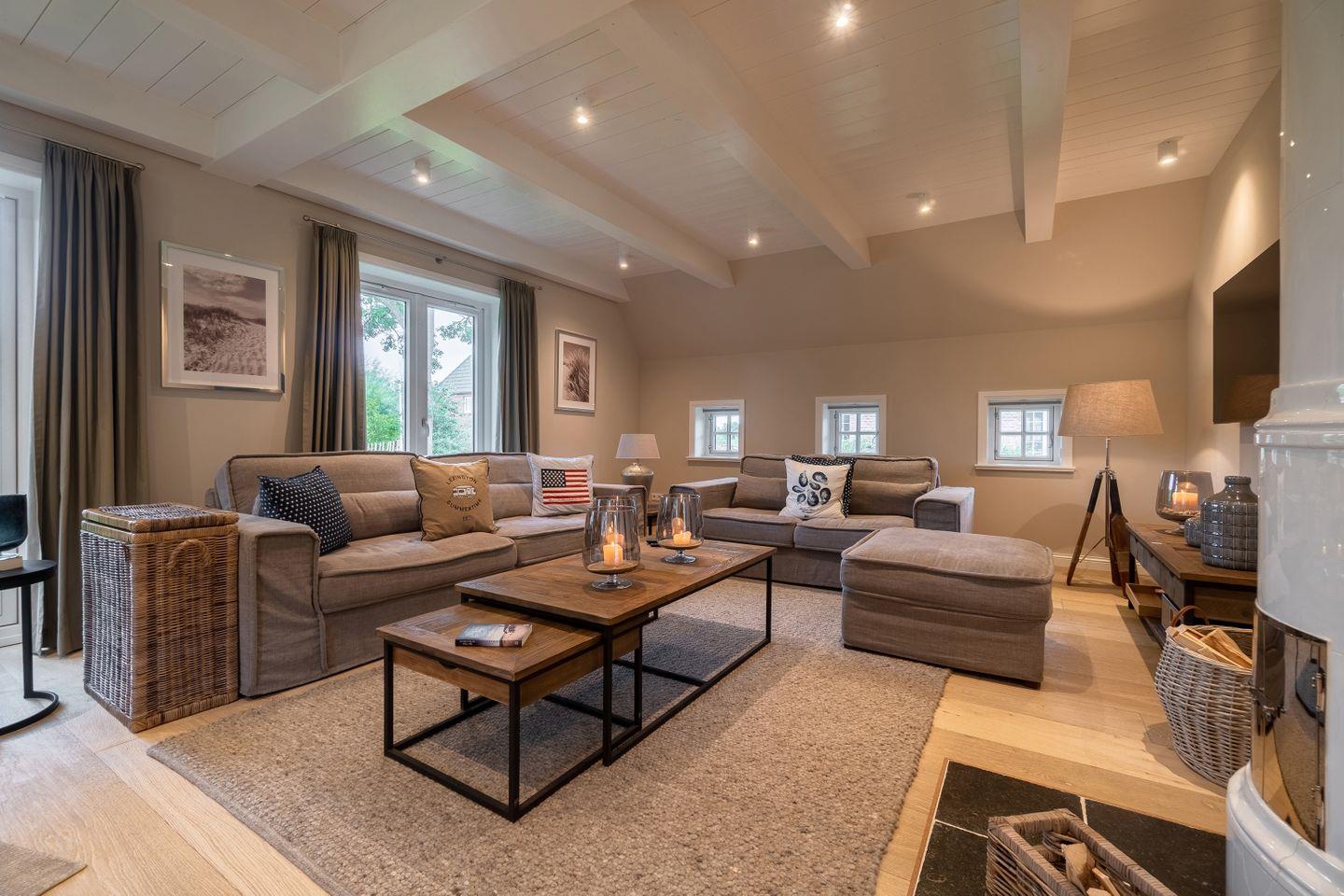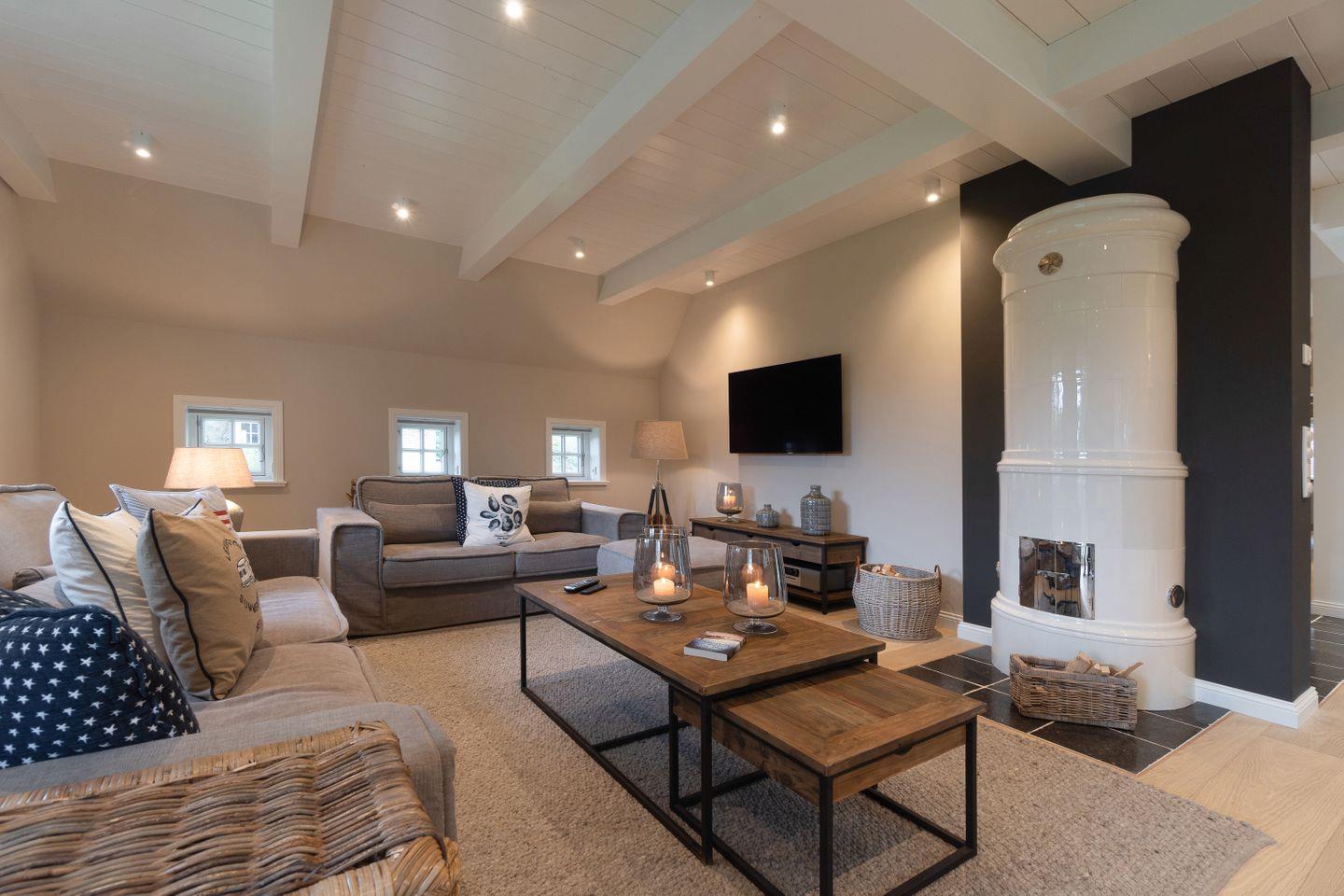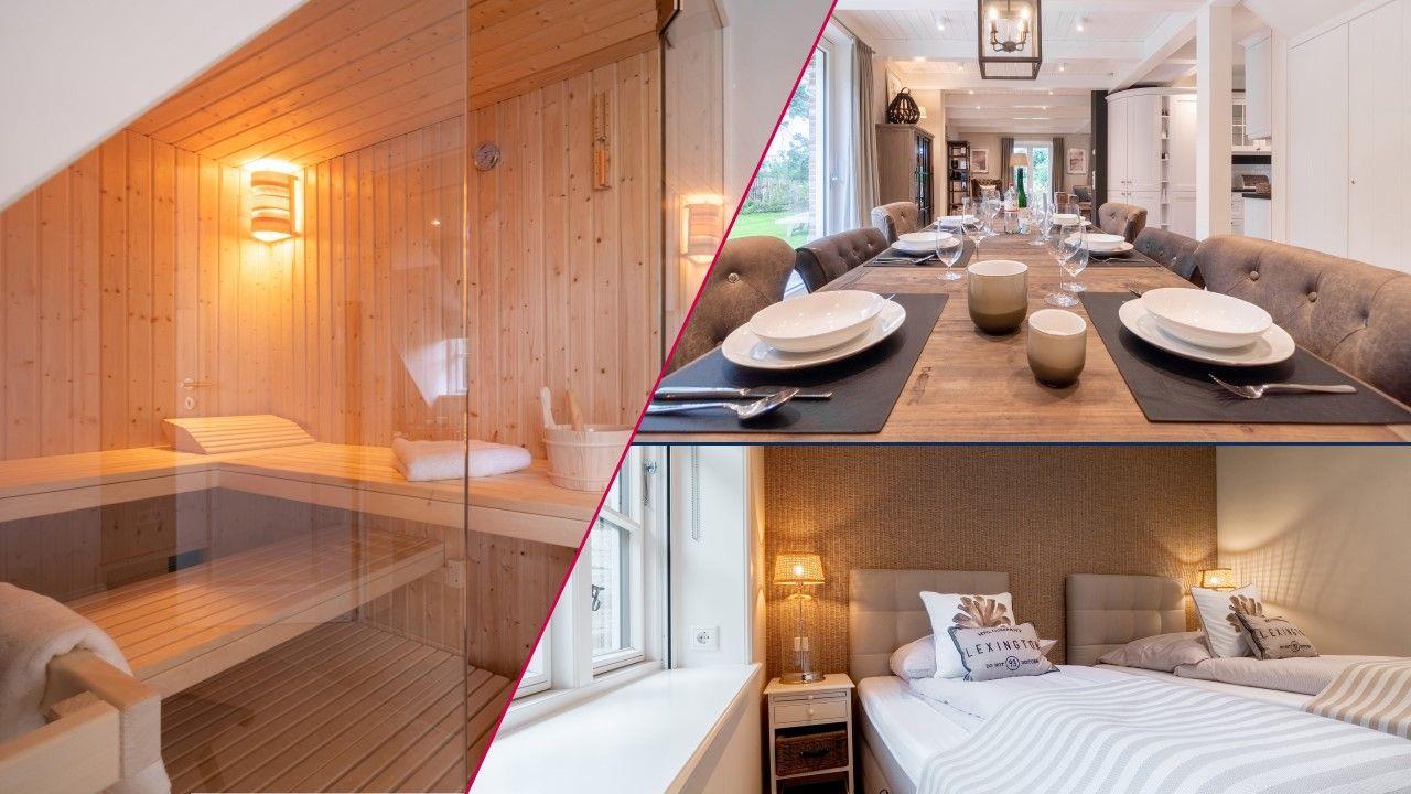 Zu den Highlights des exklusiv ausgestatteten Ferienhauses unter Reet zählen wir u. a. die hauseigene Sauna mit Ruheraum, den Original Mylin-Kachelofen sowie die exzellent ausgestattete Küche.