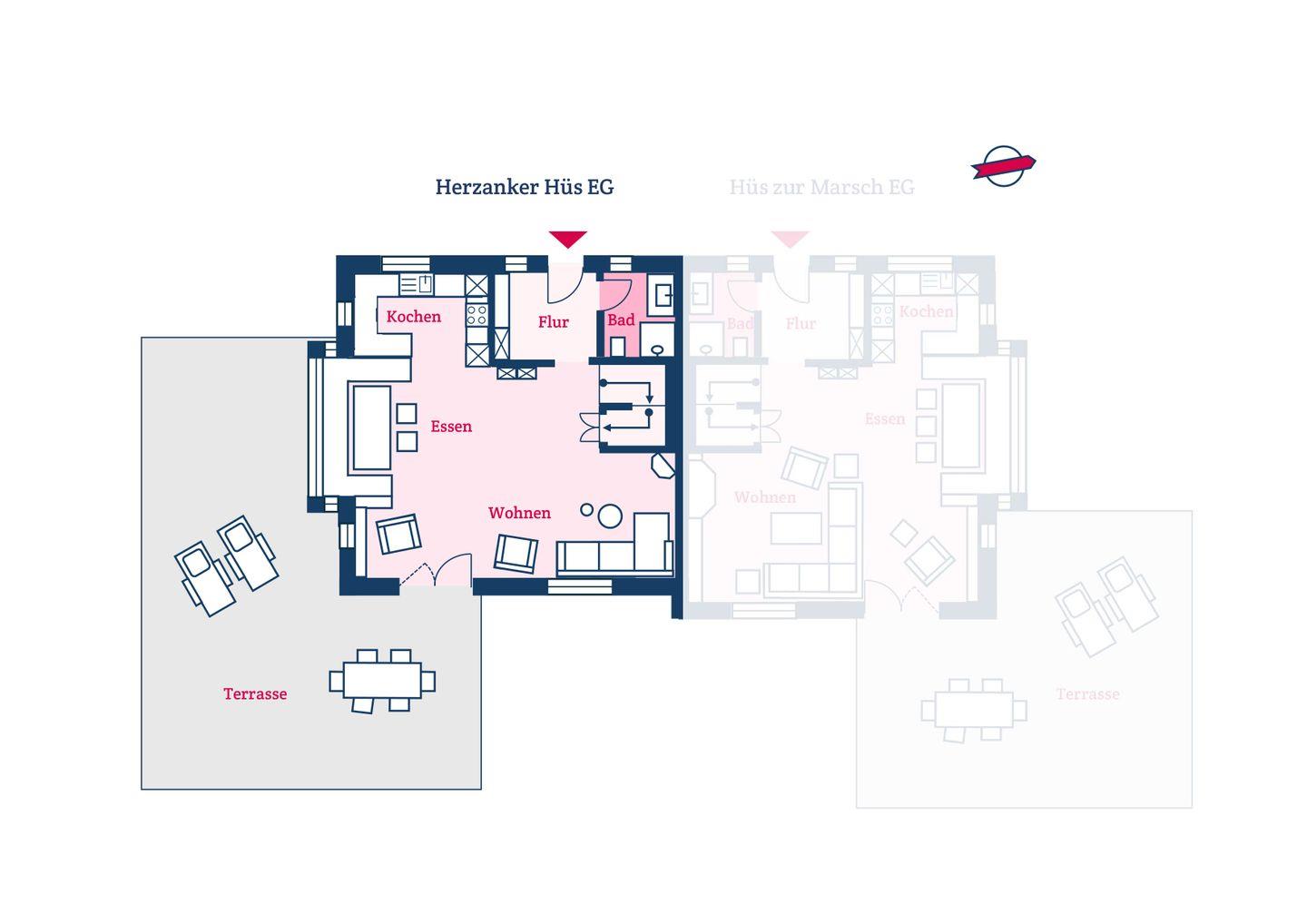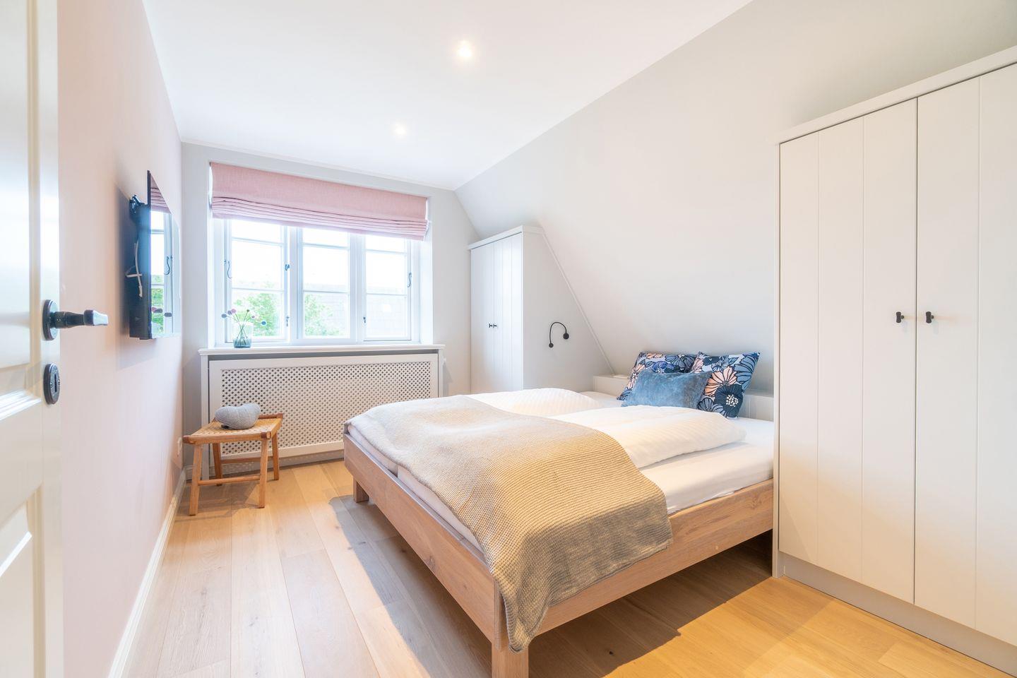 Die reetgedeckte Doppelhaushälfte Herzanker Hüs wurde im Jahr 2021 fertiggestellt und verfügt über 3 Schlafzimmer (eines mit begehbarem Kleiderschrank) und 2 Bäder und bietet somit komfortabel Platz für bis zu 6 Personen (ein Schlafzimmer mit ausziehbarem Bett) zuzüglich einer Kleinkinderaufbettung.