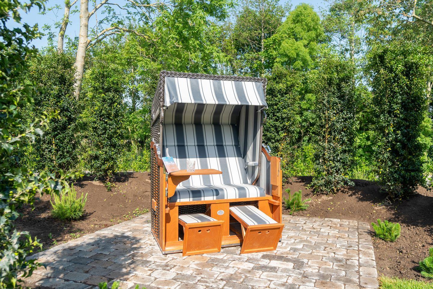 Das großzügige Grundstück, welches nach Süden ausgerichtet ist, bietet eine große Terrasse nach Süd und idyllischer Frühstückterrasse sowie eine separate Strandkorbterrasse im traditionellen Stil angelegten Garten, auch Sonnenliegen stehen Ihnen im Außenbereich der Immobilie zur Verfügung. Ihren Kindern wird viel Platz zum Spielen geboten.