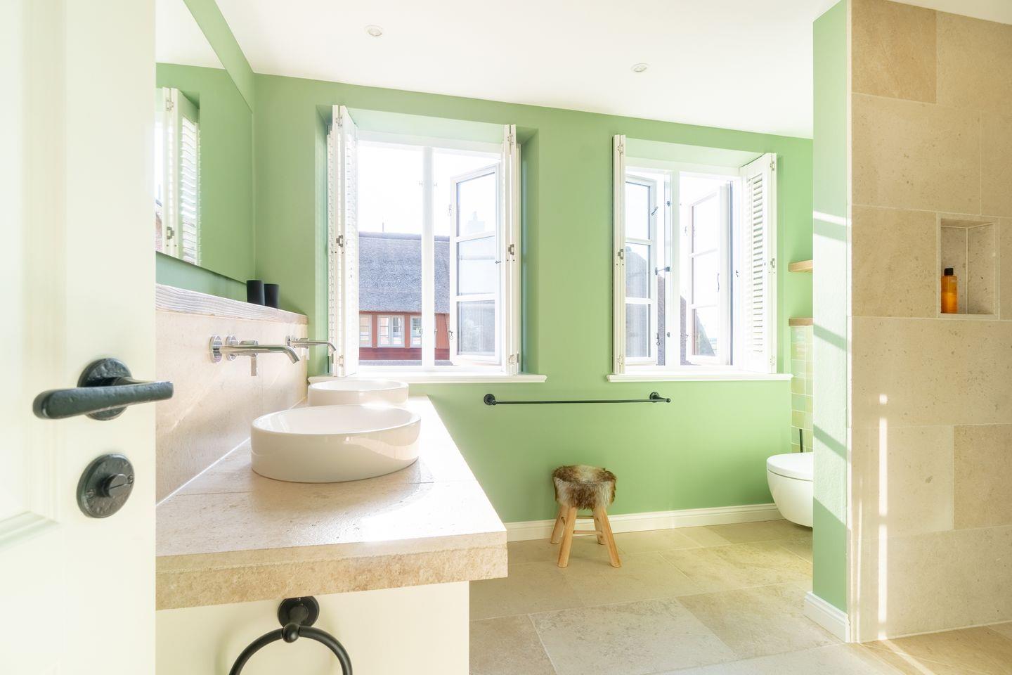 Die Details sind besonders: Marokkanische handgefertigte Fliesen in den Bädern überzeugen, wunderschönes Altholz findet sich in verschiedenen Bereichen wieder. Sehr schöne Badkeramiken und Armaturen mit Regenduschen lassen keine Wünsche offen. Das Kaminfeuer des Mylin-Kachelofen bereitet auch in der kalten Jahreszeit kuschelige Stunden im lässigen Wohnbereich mit inseltypischen unikaten Bildern.