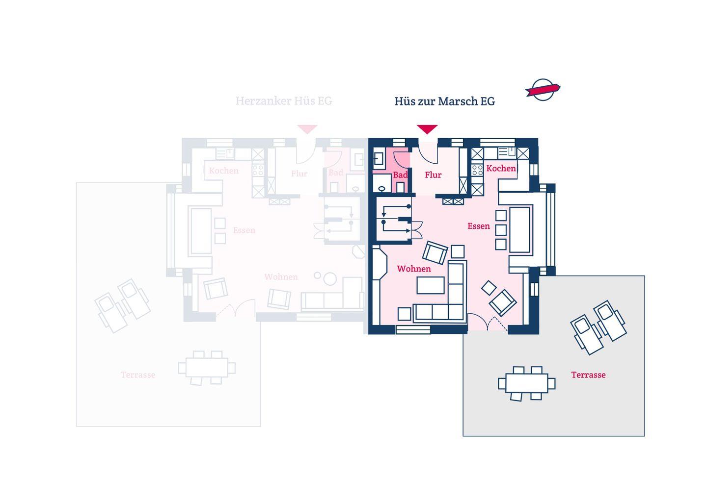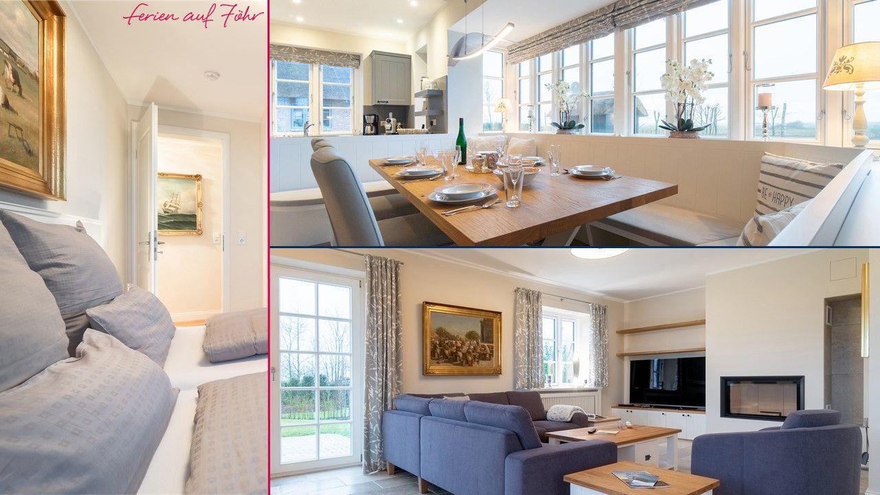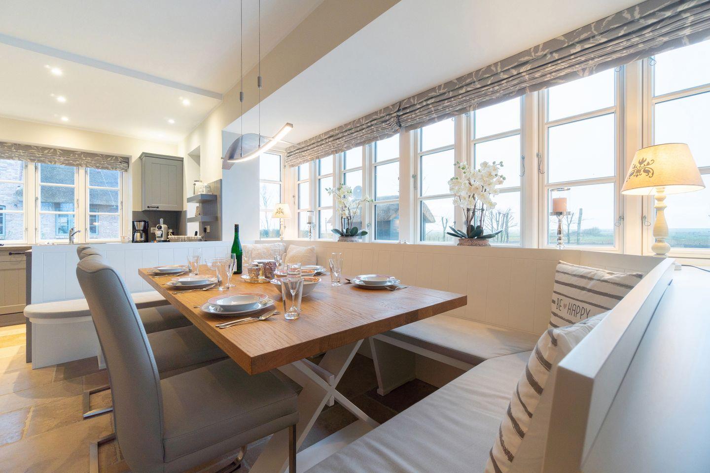 Die reetgedeckte Doppelhaushälfte Hüs zur Marsch verfügt über 3 Schlafzimmer und 2 Bäder und bietet somit komfortabel Platz für bis zu 6 Personen zuzüglich einer Kleinkinderaufbettung. Auch bis zu 2 Hunde sind hier herzlich willkommen.